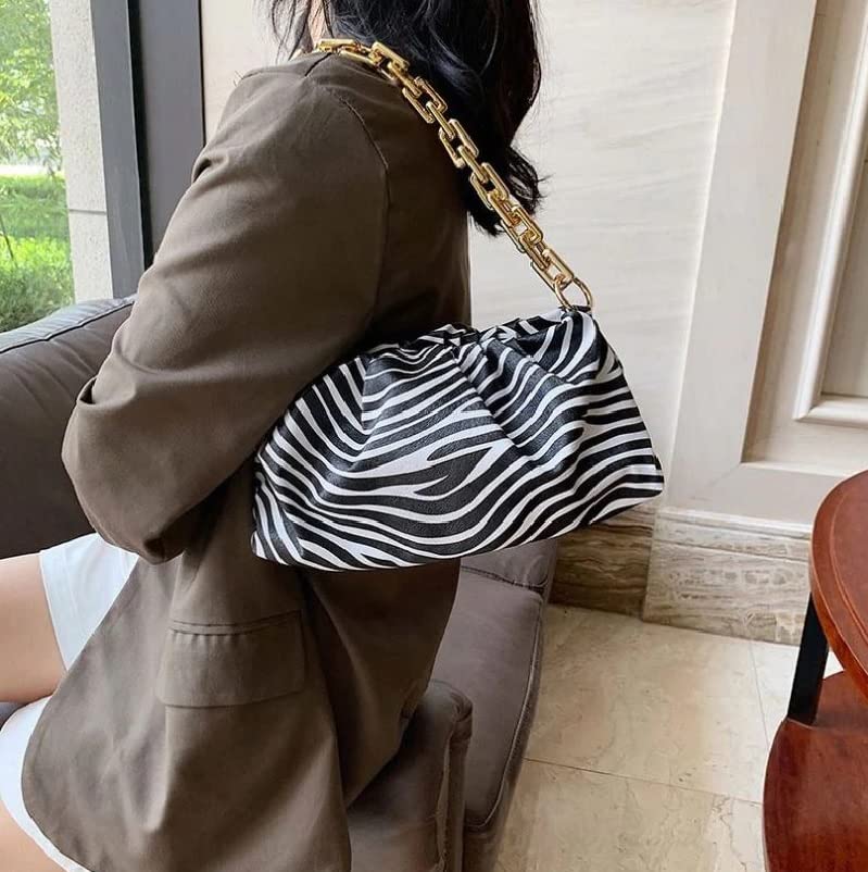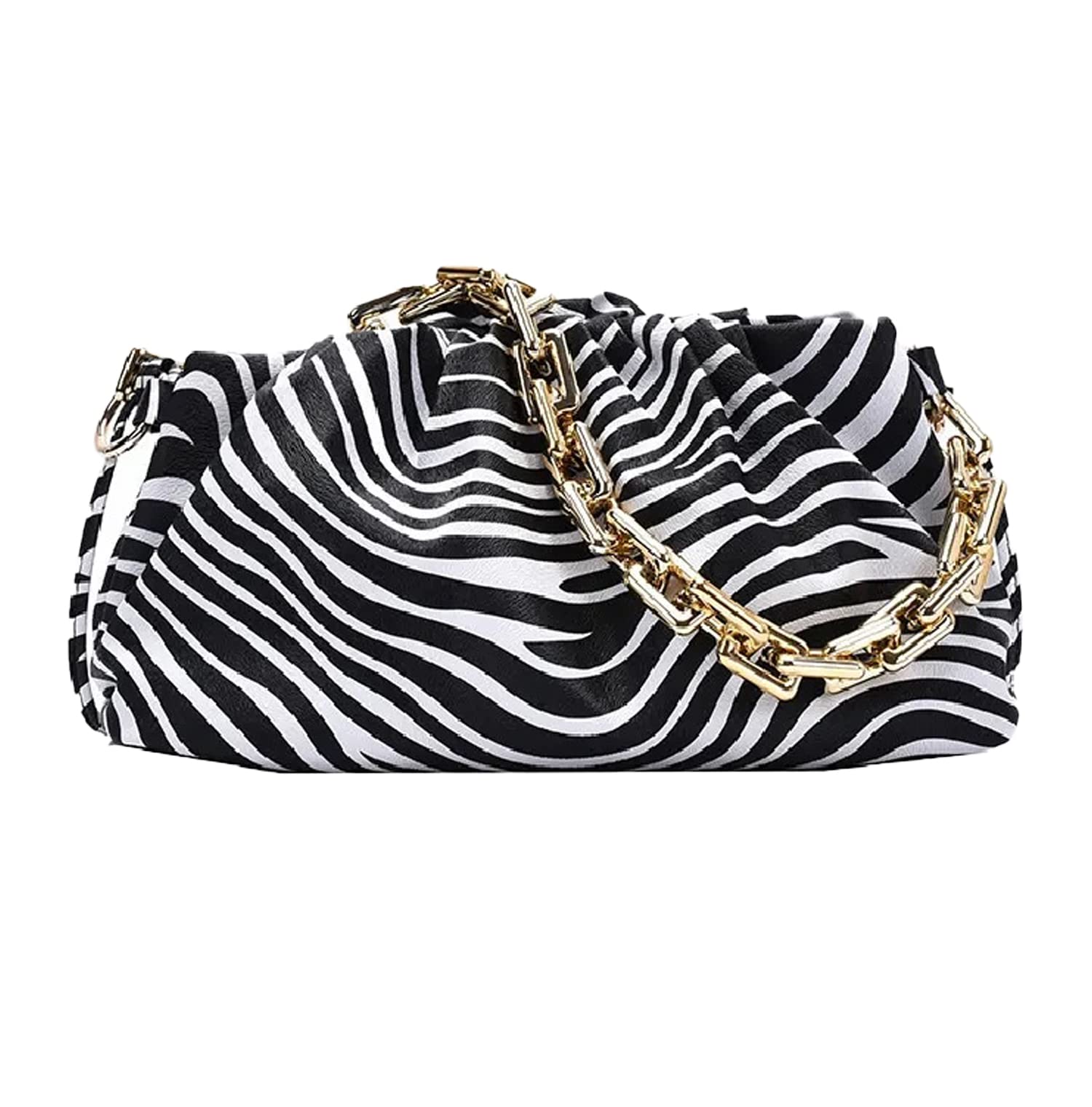 HomeFashionBagsTEESTA Zebra Print Dumpling Cloud Shape Stylish and Premium Women Sling Bags with Golden Chrome Chain Strap and with Very Fabric Party Purpose For Women (1-Pcs)