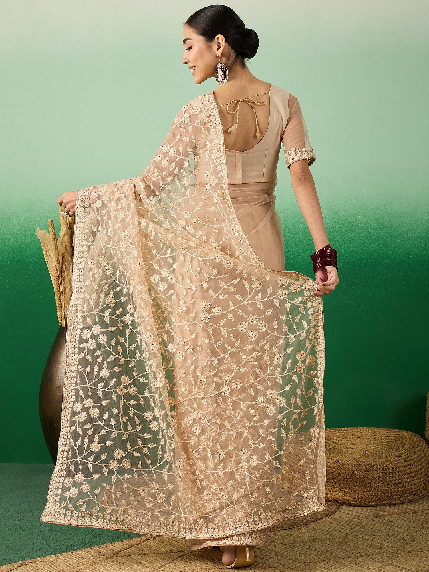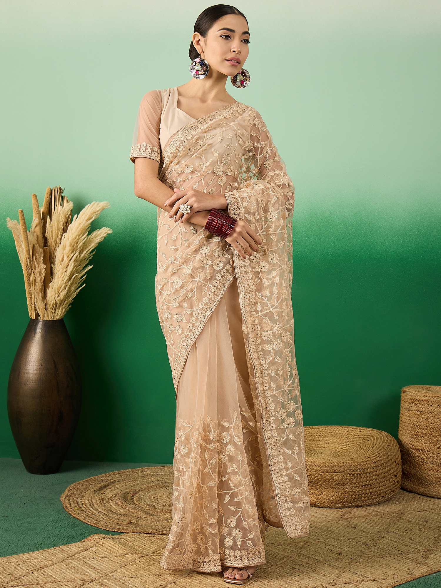 AASTHA FASHION Fashion Dream Womens Beige Net Saree | Soft & Elegant Traditional Wear