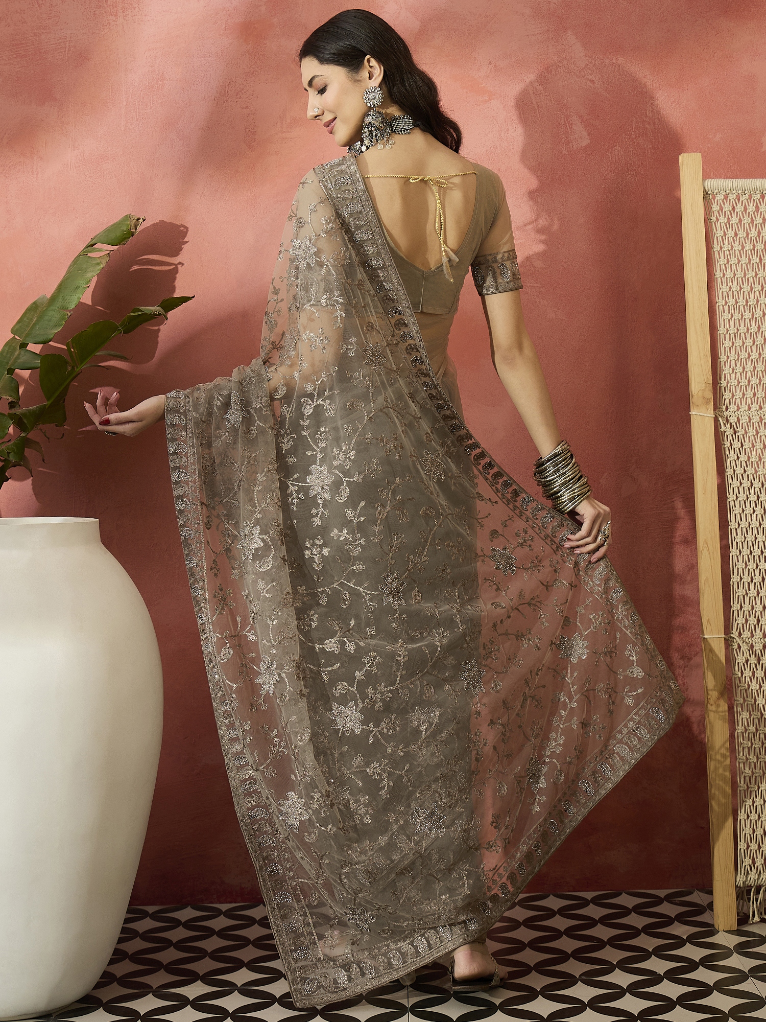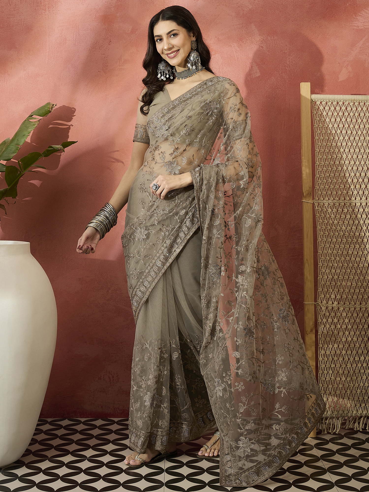 AASTHA FASHION Fashion Dream Womens Beige Net Saree | Soft & Elegant Traditional Wear