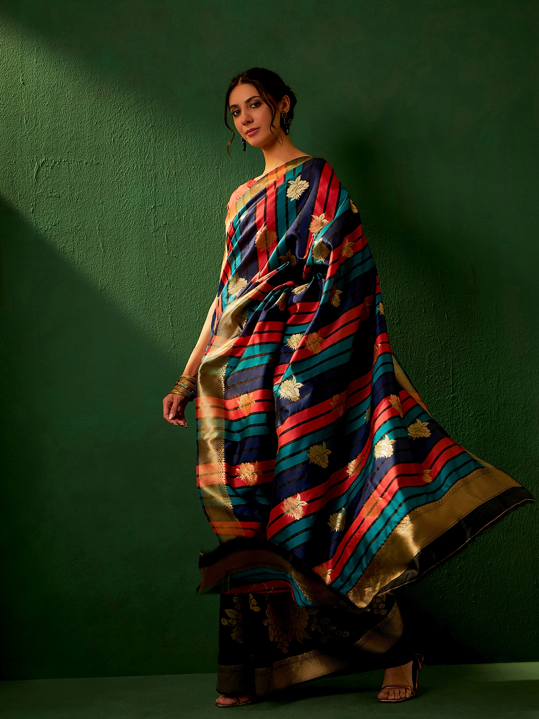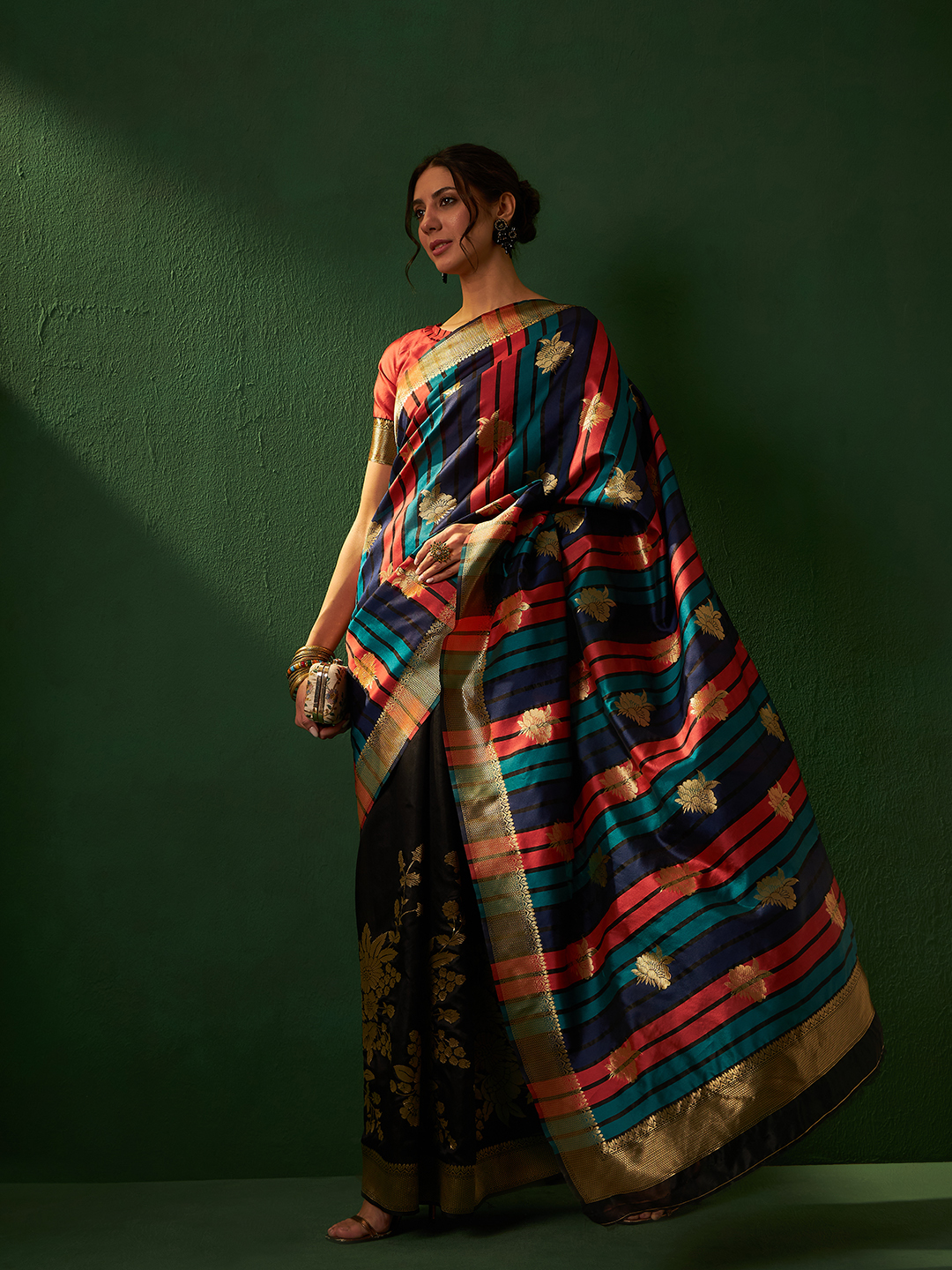 AASTHA FASHION Fashion Dream Womens Black BANARASI SILK Saree | Soft & Elegant Traditional Wear