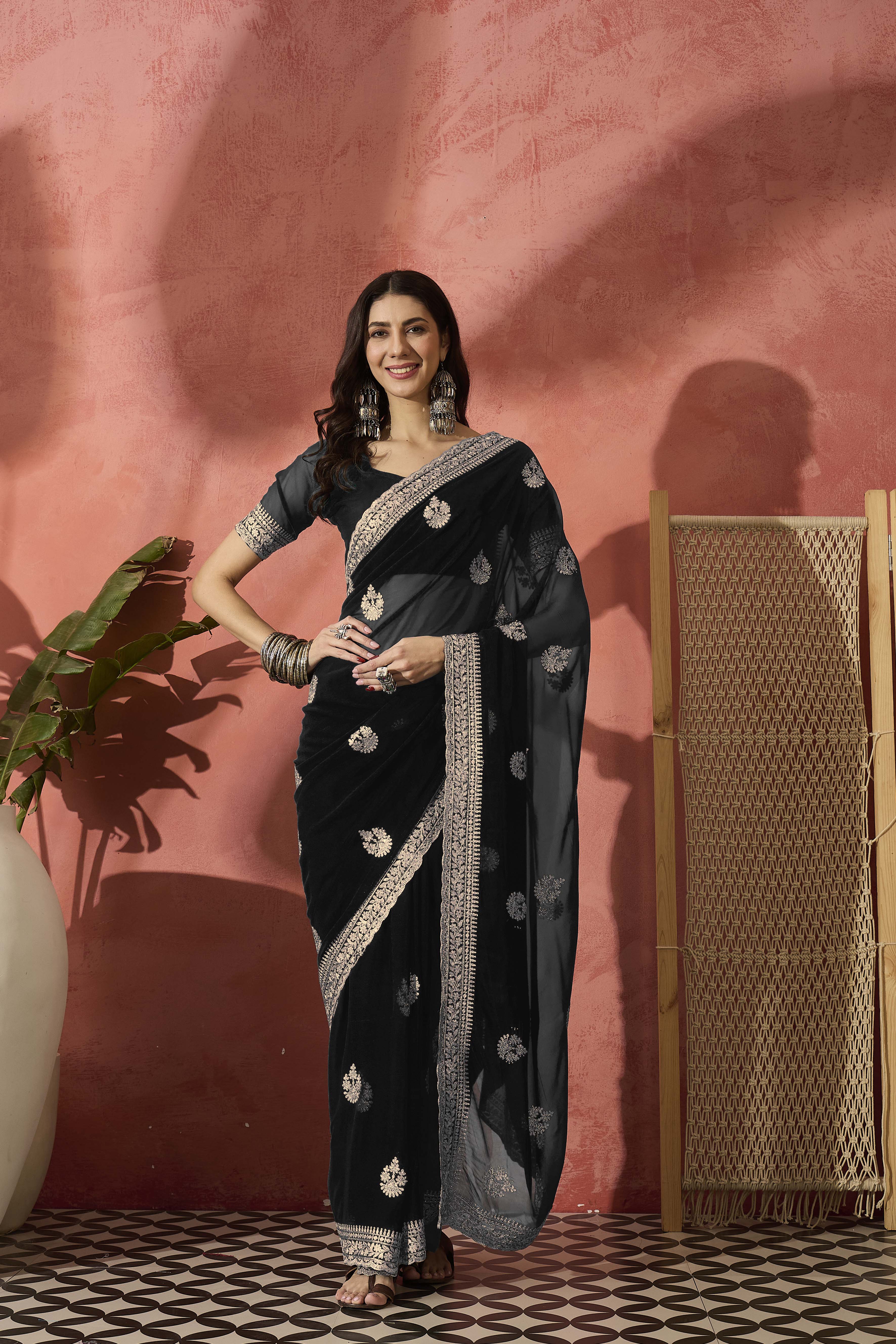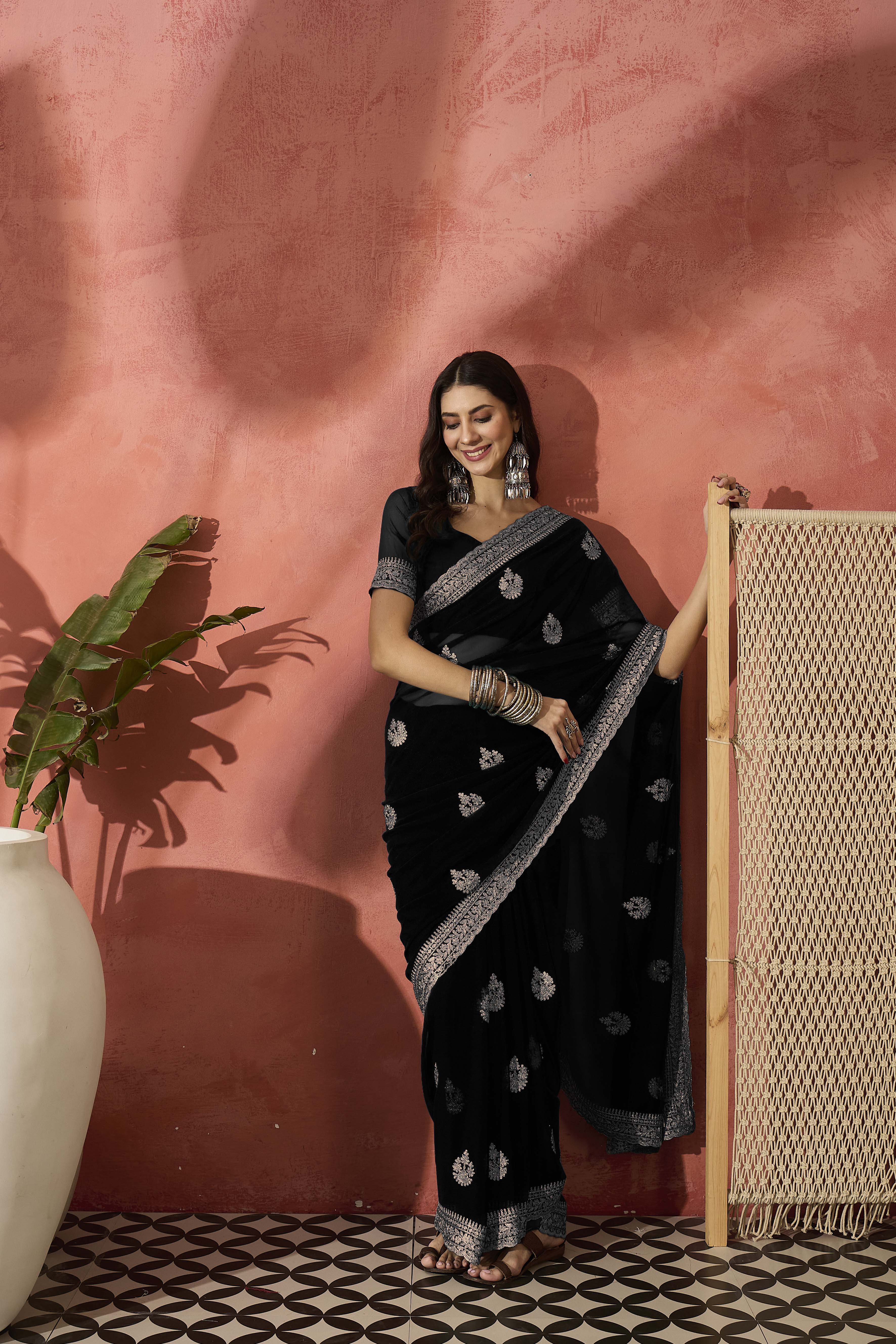 AASTHA FASHION Fashion Dream Womens Black Georgette Saree | Soft & Elegant Traditional Wear