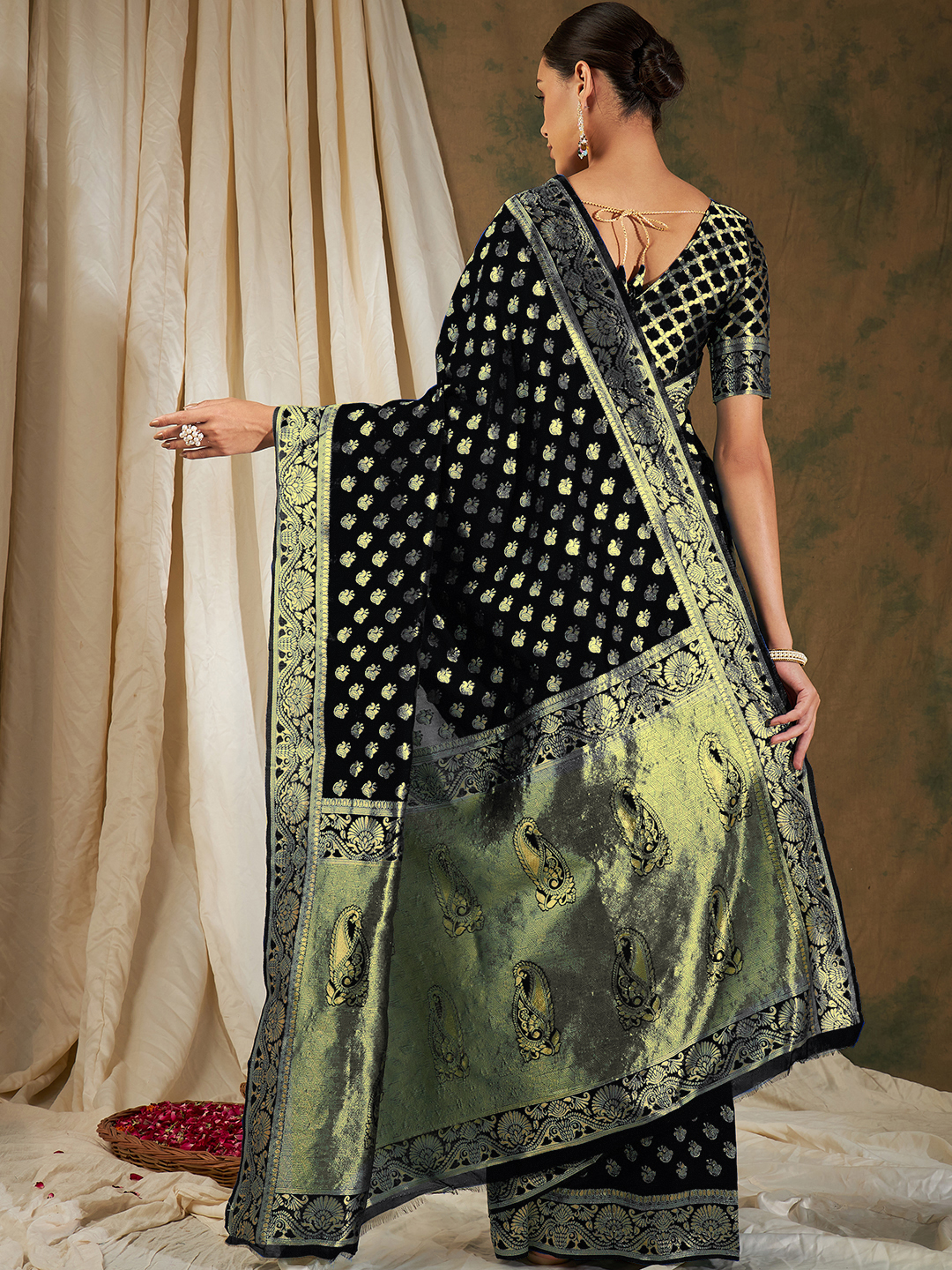 AASTHA FASHION Fashion Dream Womens Black Kanjivaram Silk Saree | Soft & Elegant Traditional Wear