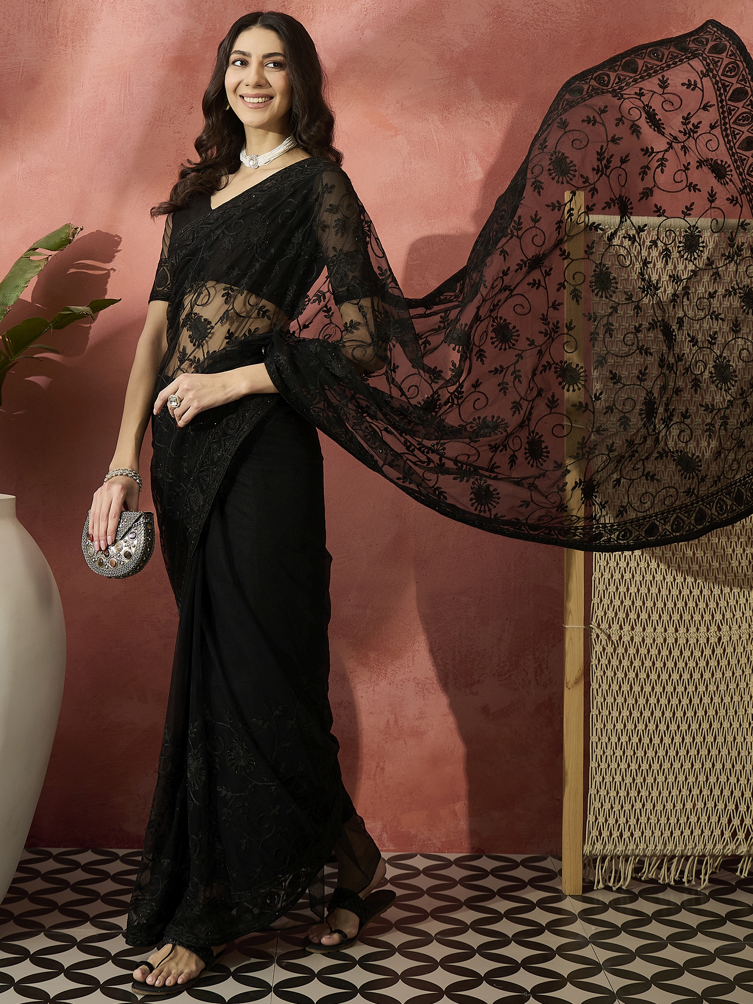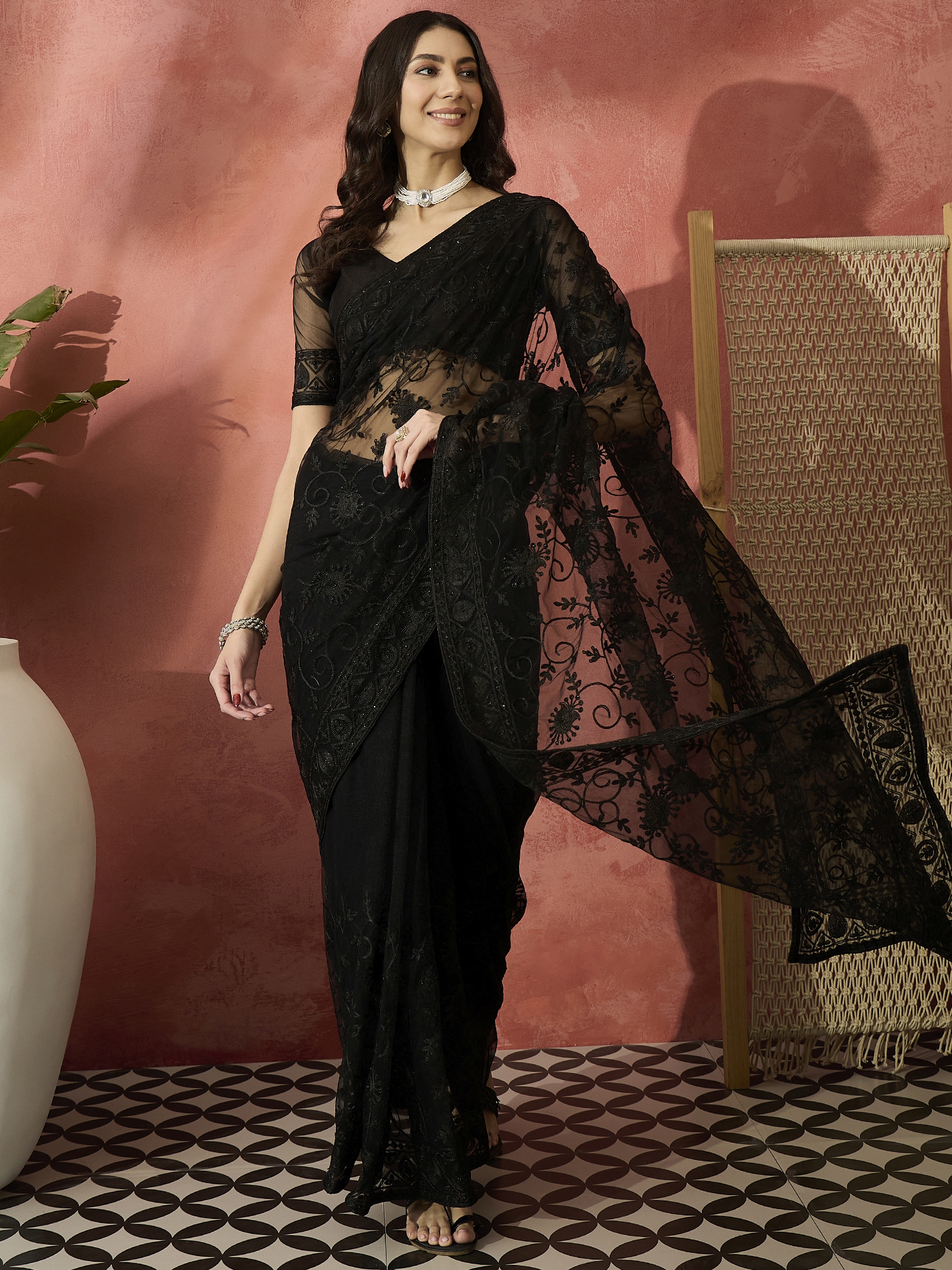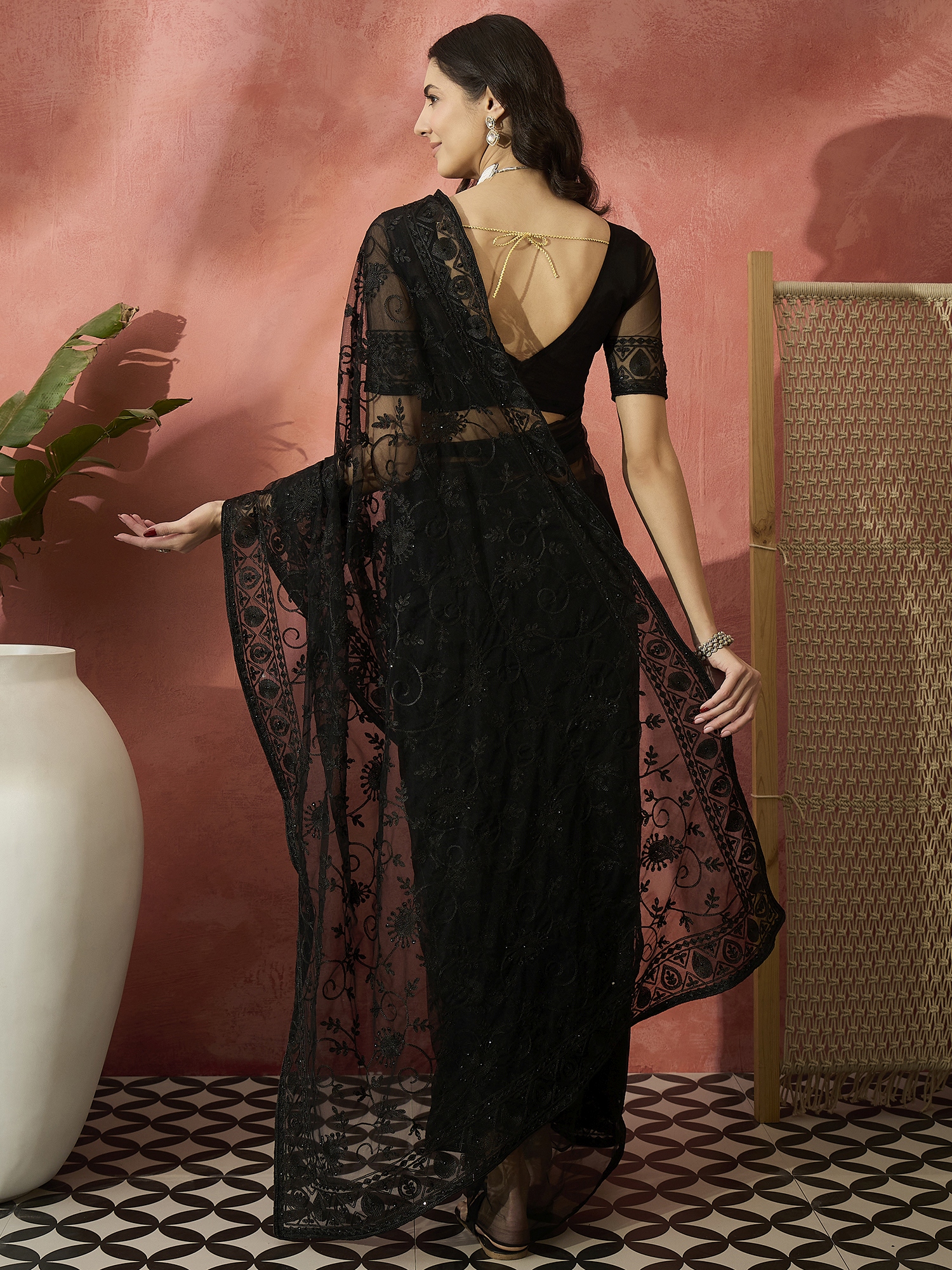 AASTHA FASHION Fashion Dream Womens Black Net Saree | Soft & Elegant Traditional Wear