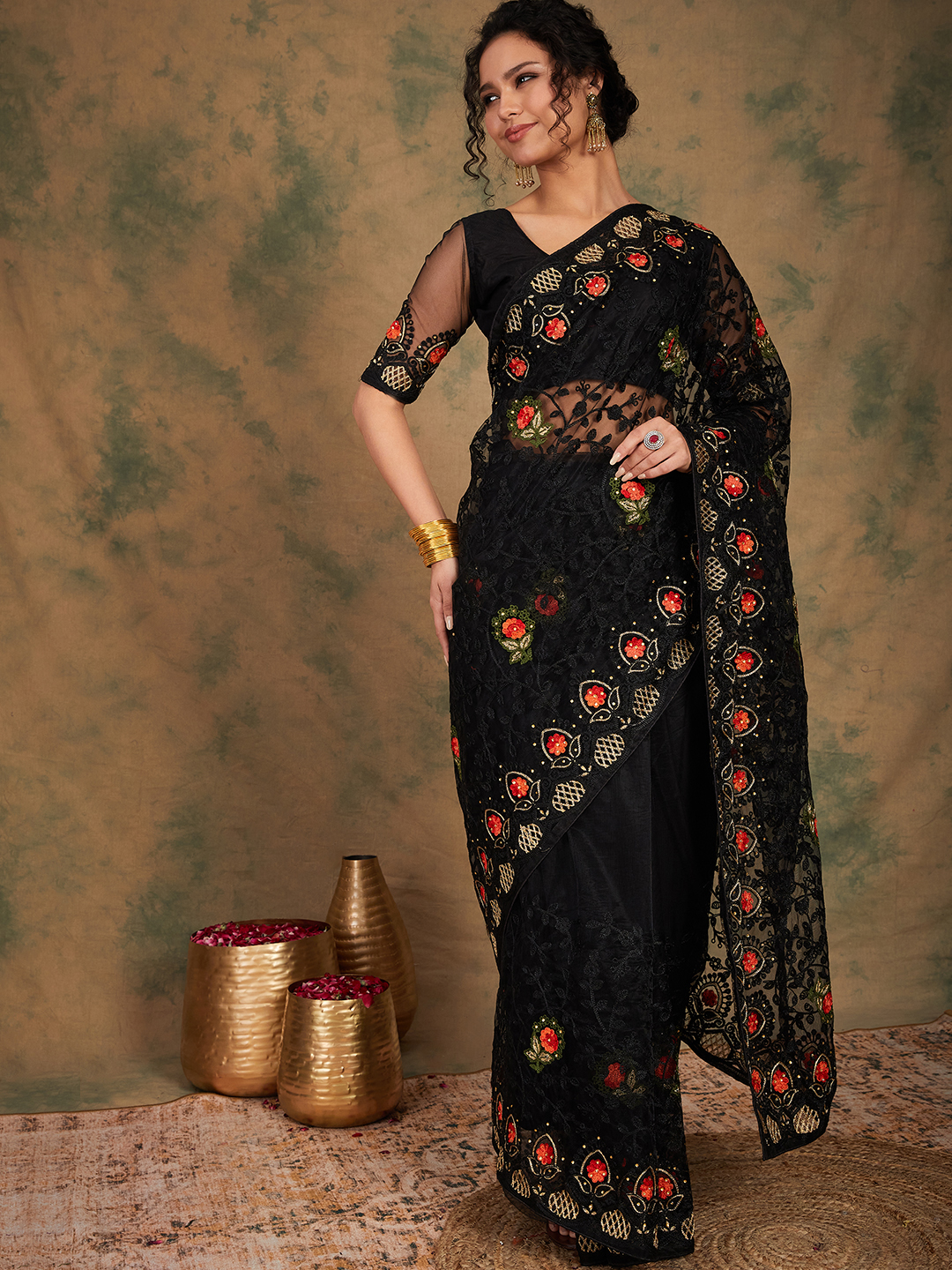 AASTHA FASHION Fashion Dream Womens Black Net Saree | Soft & Elegant Traditional Wear