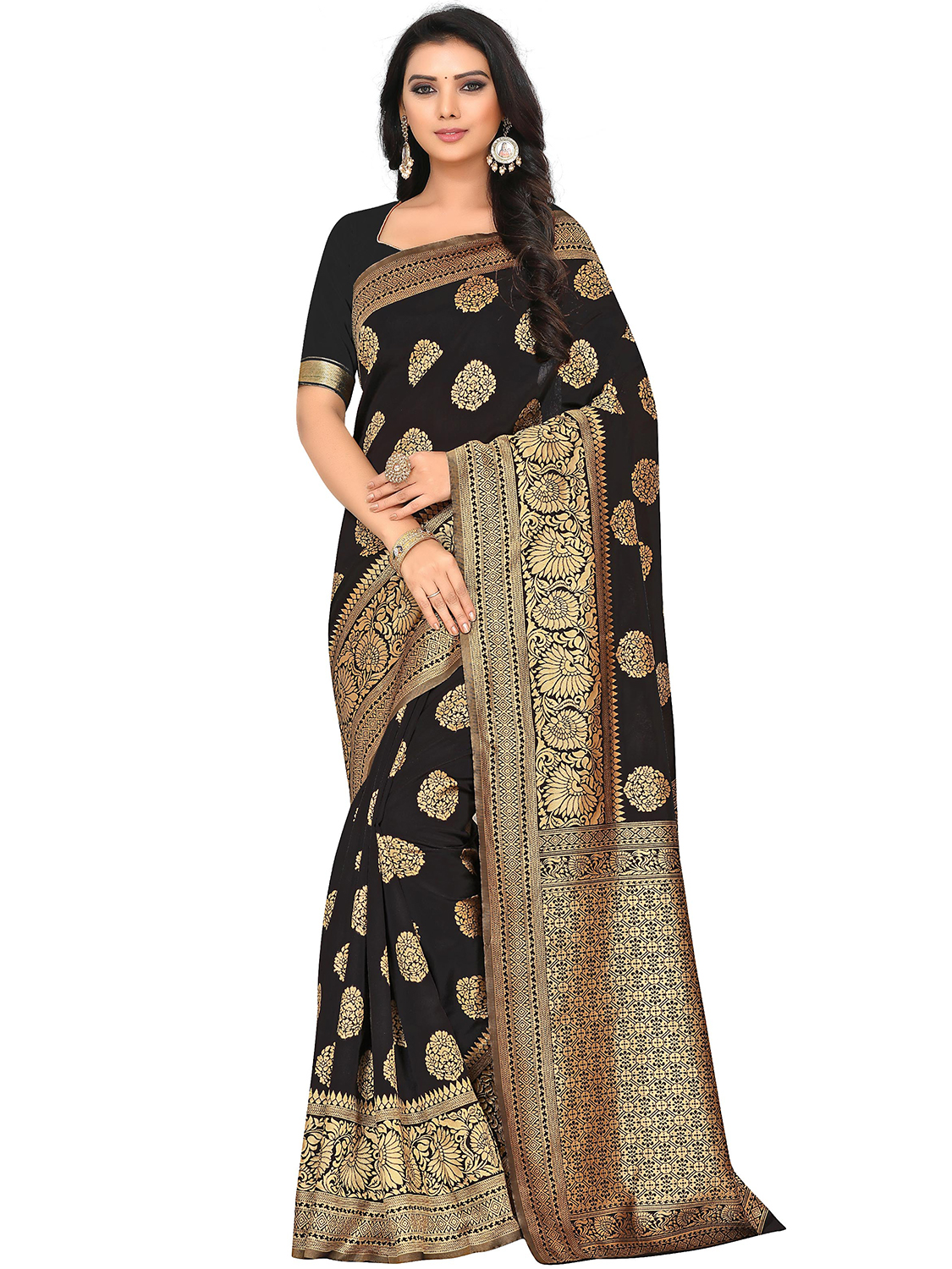 AASTHA FASHION Fashion Dream Womens Black Silk Blend Saree | Soft & Elegant Traditional Wear