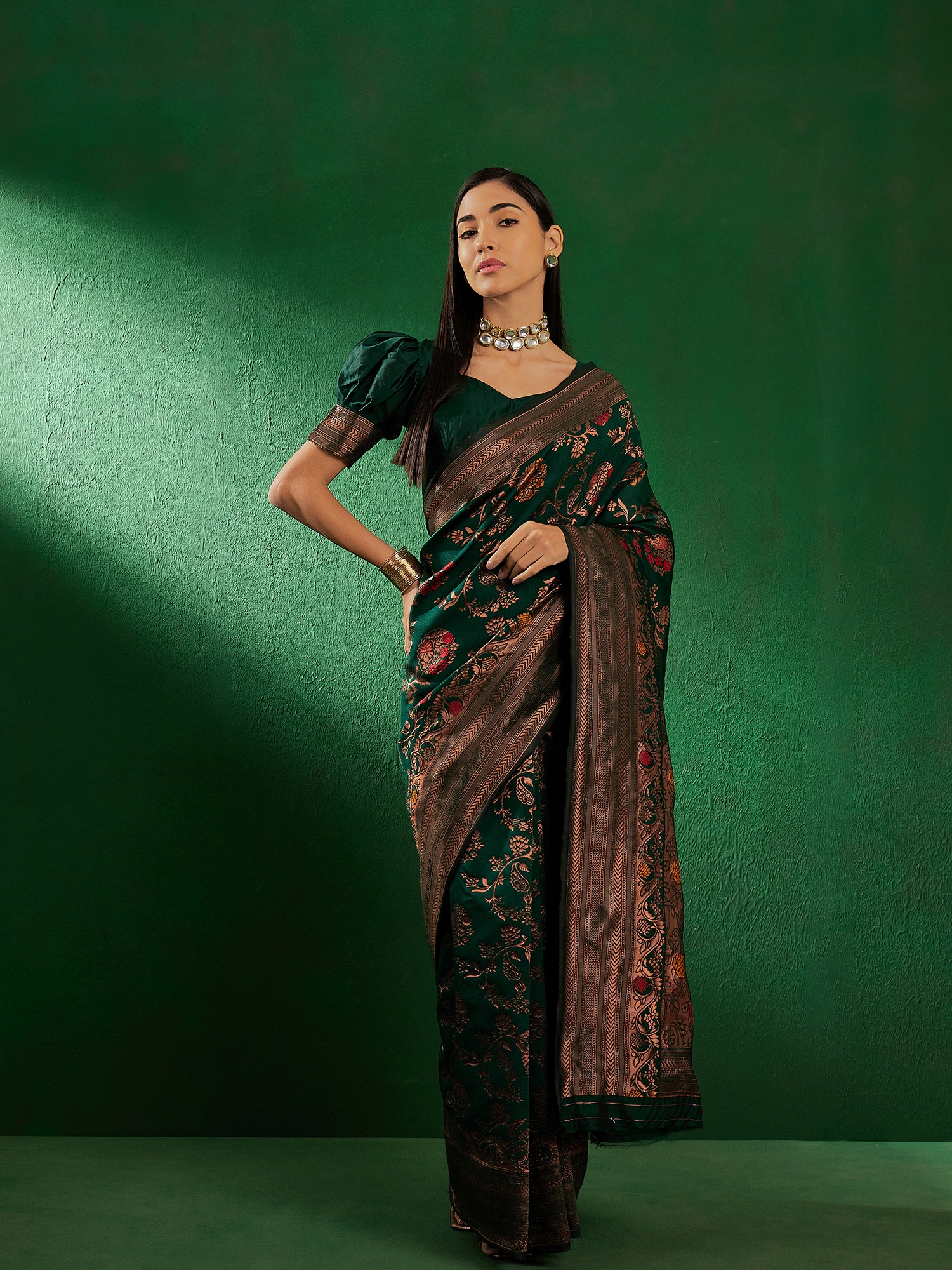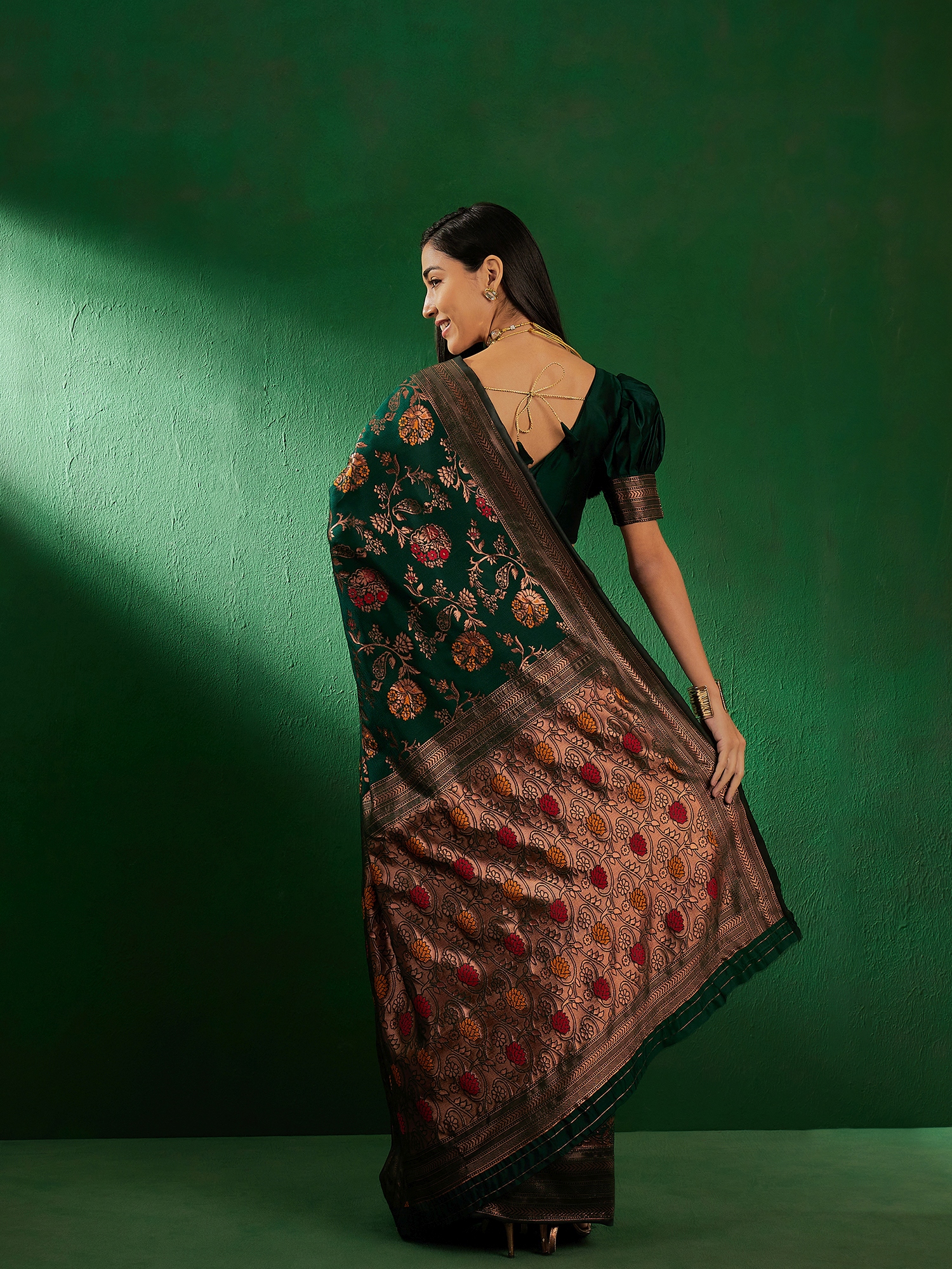 AASTHA FASHION Fashion Dream Womens Bottle Green Banarasi Silk Saree | Soft & Elegant Traditional Wear