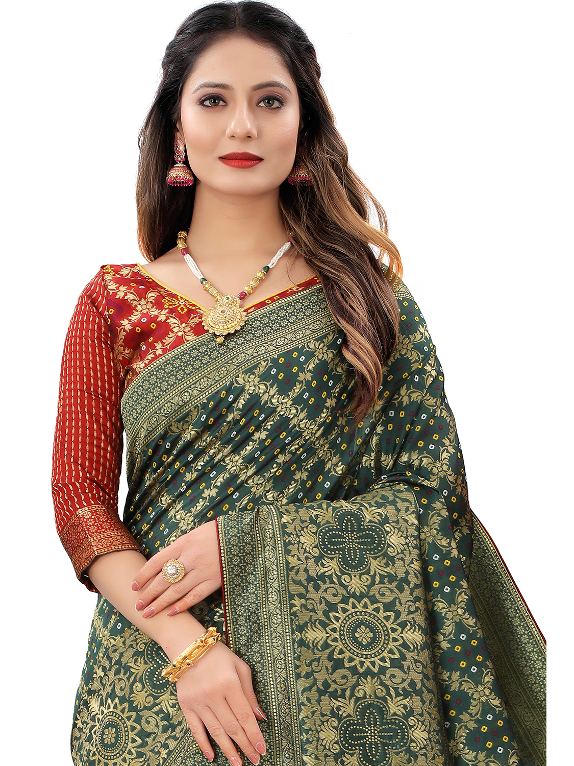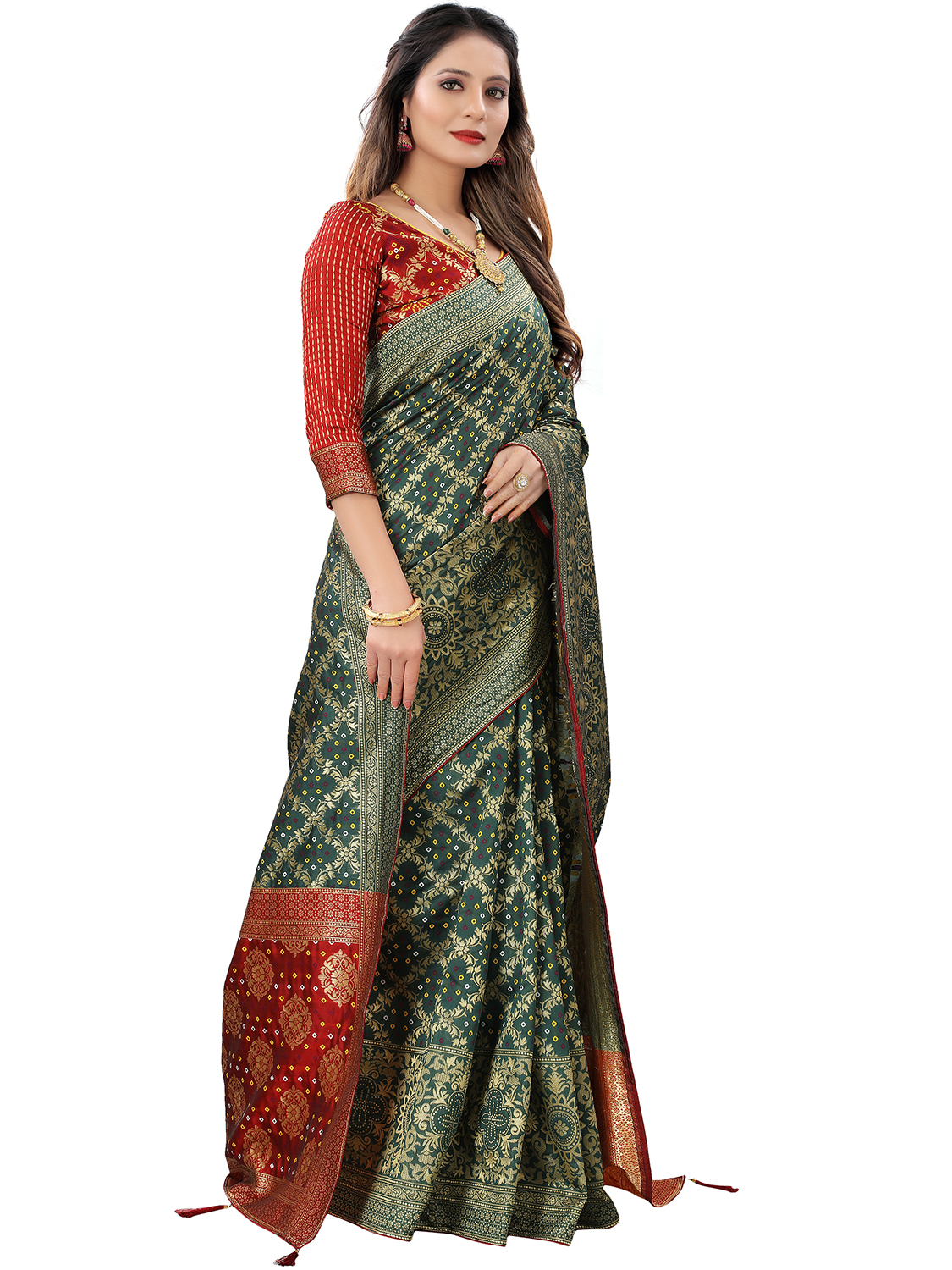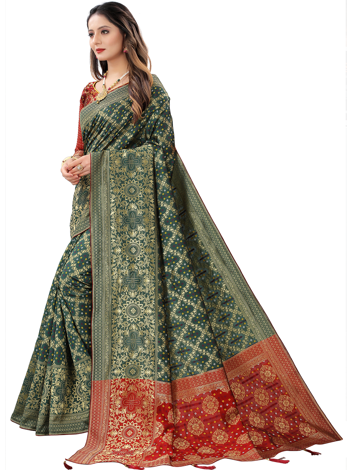 AASTHA FASHION Fashion Dream Womens Bottle Green Cotton Silk Blend Saree | Soft & Elegant Traditional Wear