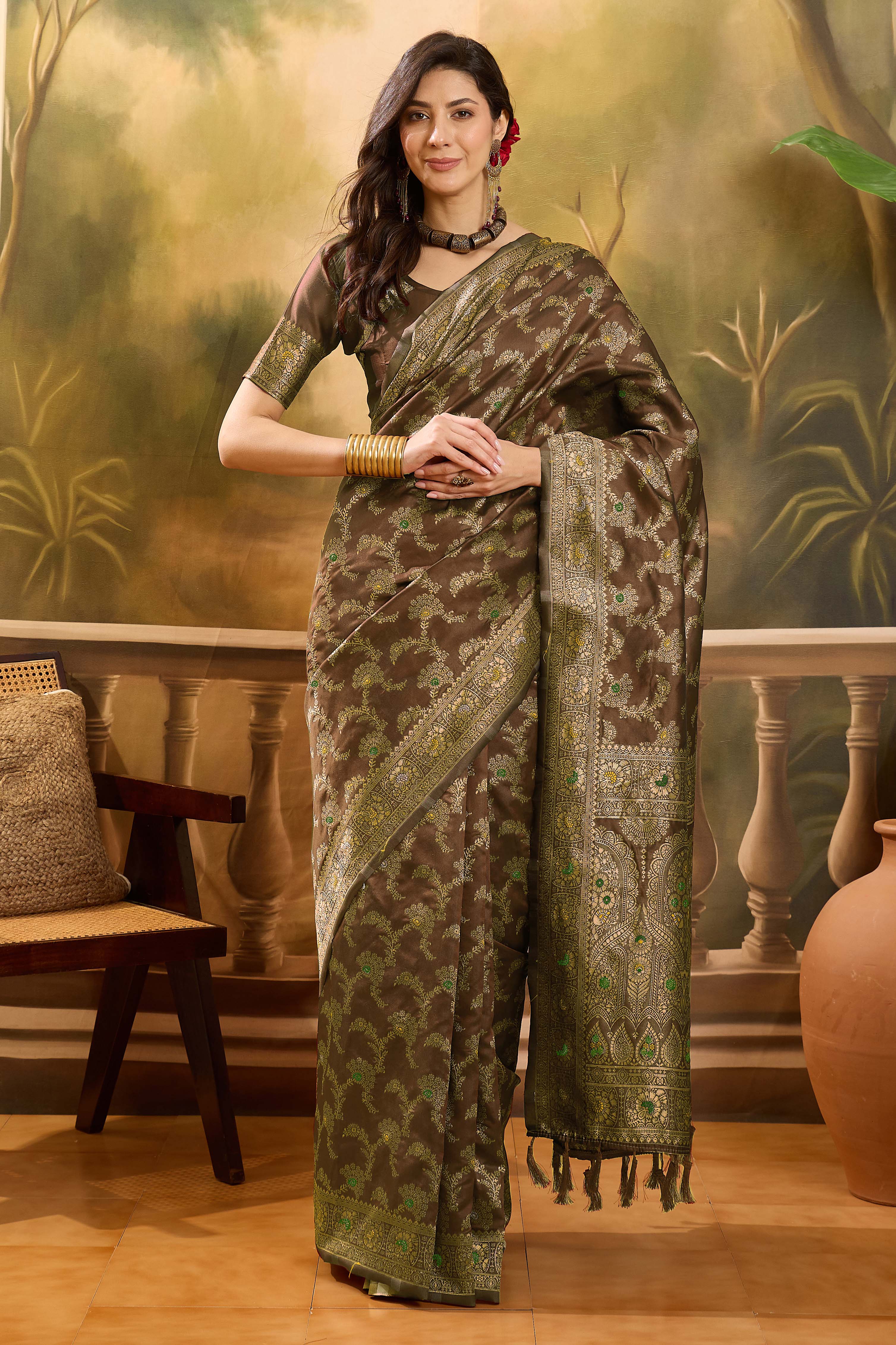 AASTHA FASHION Fashion Dream Womens Coffee Brown Banarasi Jacquard Saree | Soft & Elegant Traditional Wear