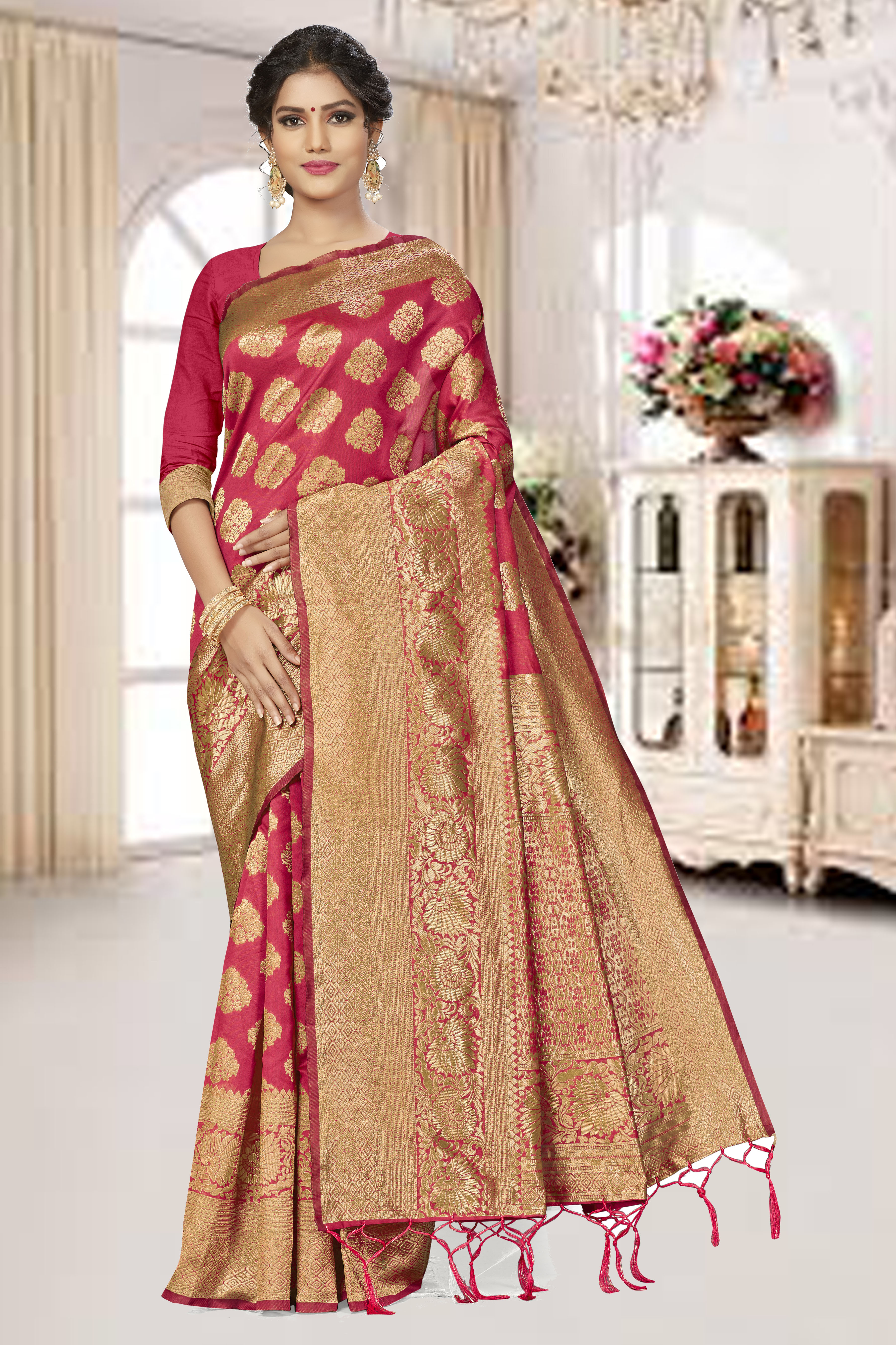 Saree Fabric-Banarasi Silk ,Blouse Fabric-Banarasi Silk