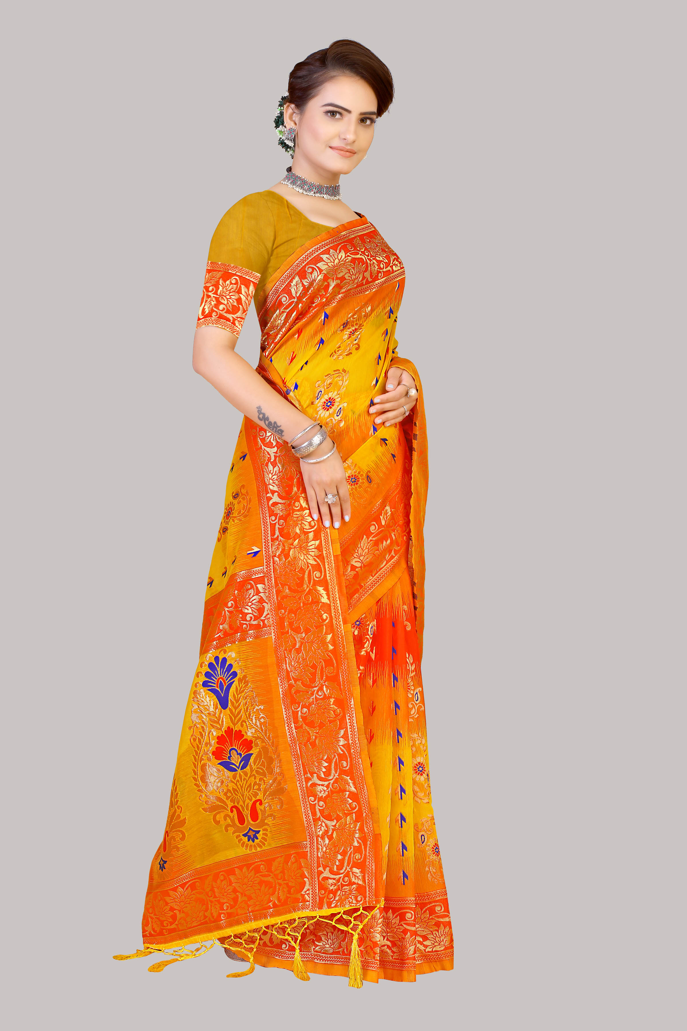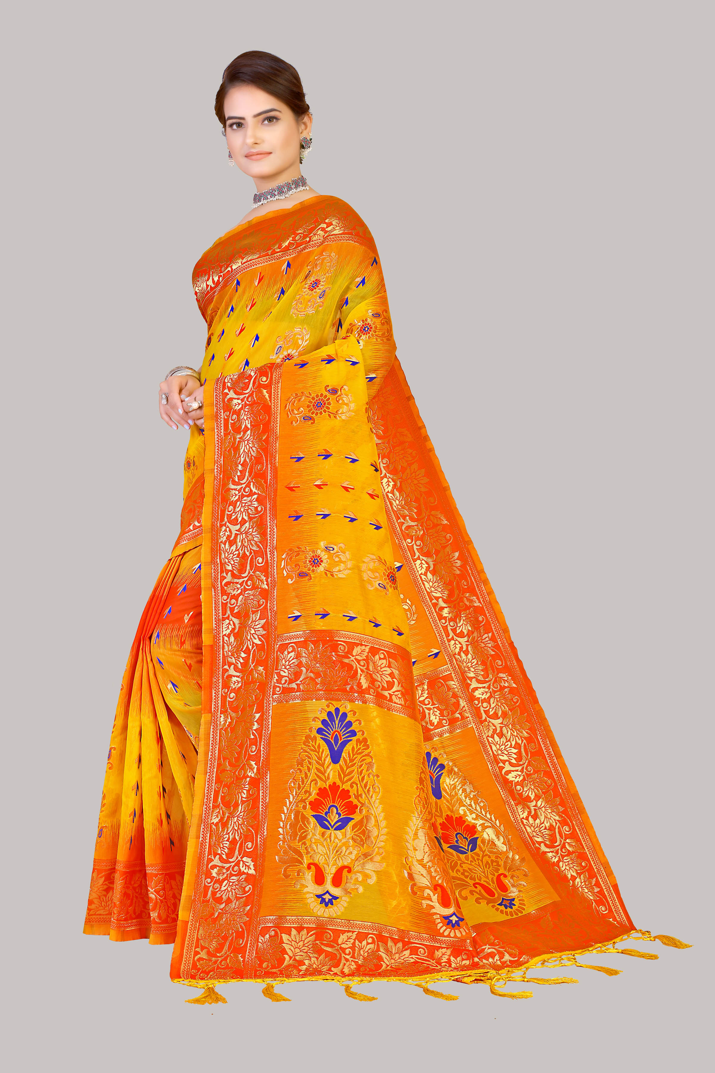 AASTHA FASHION Fashion Dream Womens Gold,Orange Banarasi Silk Saree | Soft & Elegant Traditional Wear