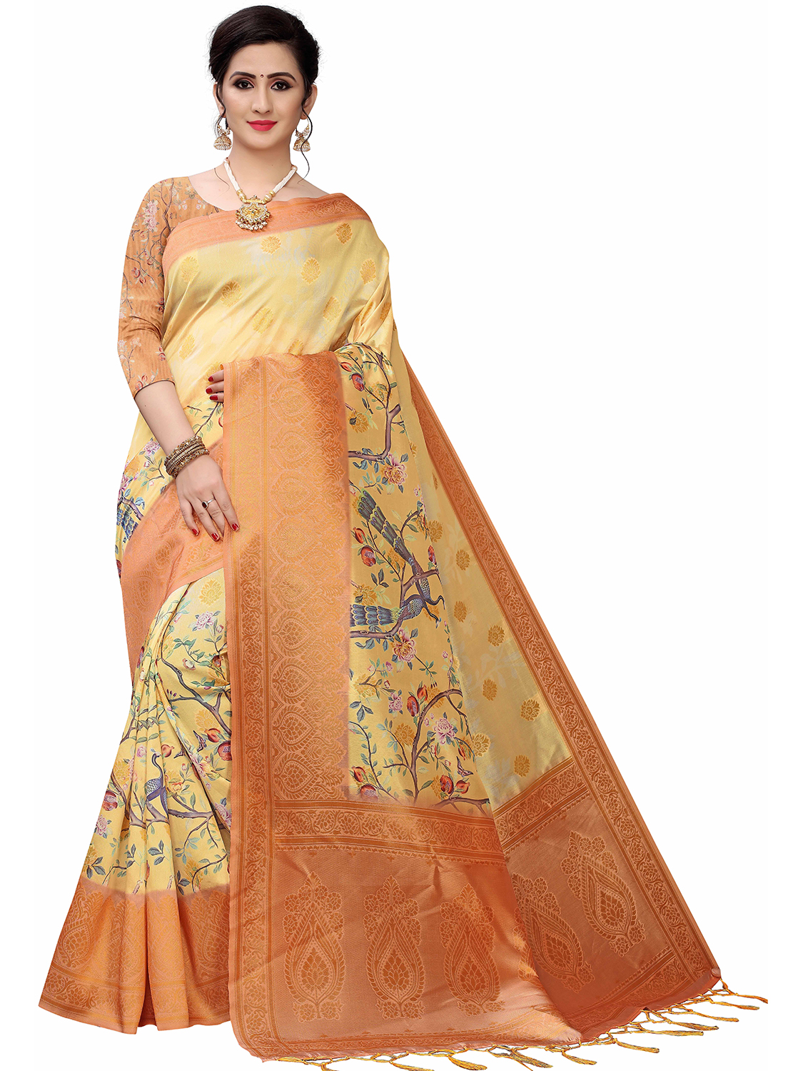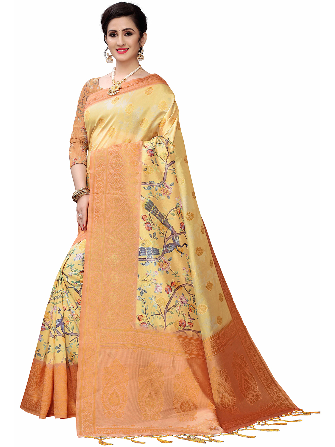 AASTHA FASHION Fashion Dream Womens Golden Multicolour Cotton Silk Blend Saree | Soft & Elegant Traditional Wear