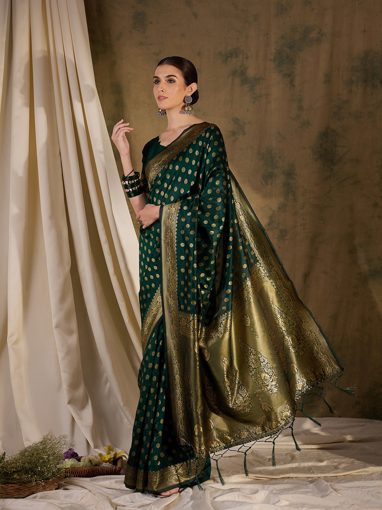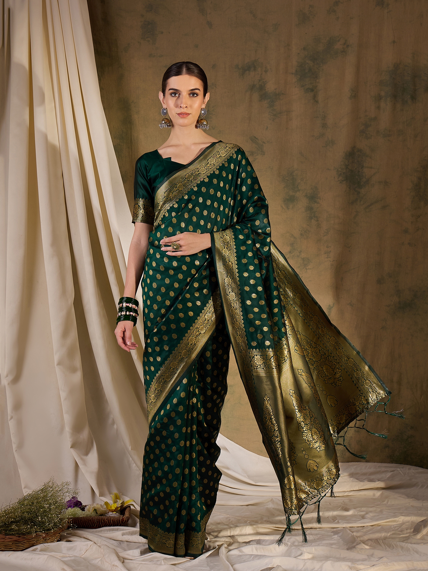 AASTHA FASHION Fashion Dream Womens Green Banarasi Silk Saree | Soft & Elegant Traditional Wear