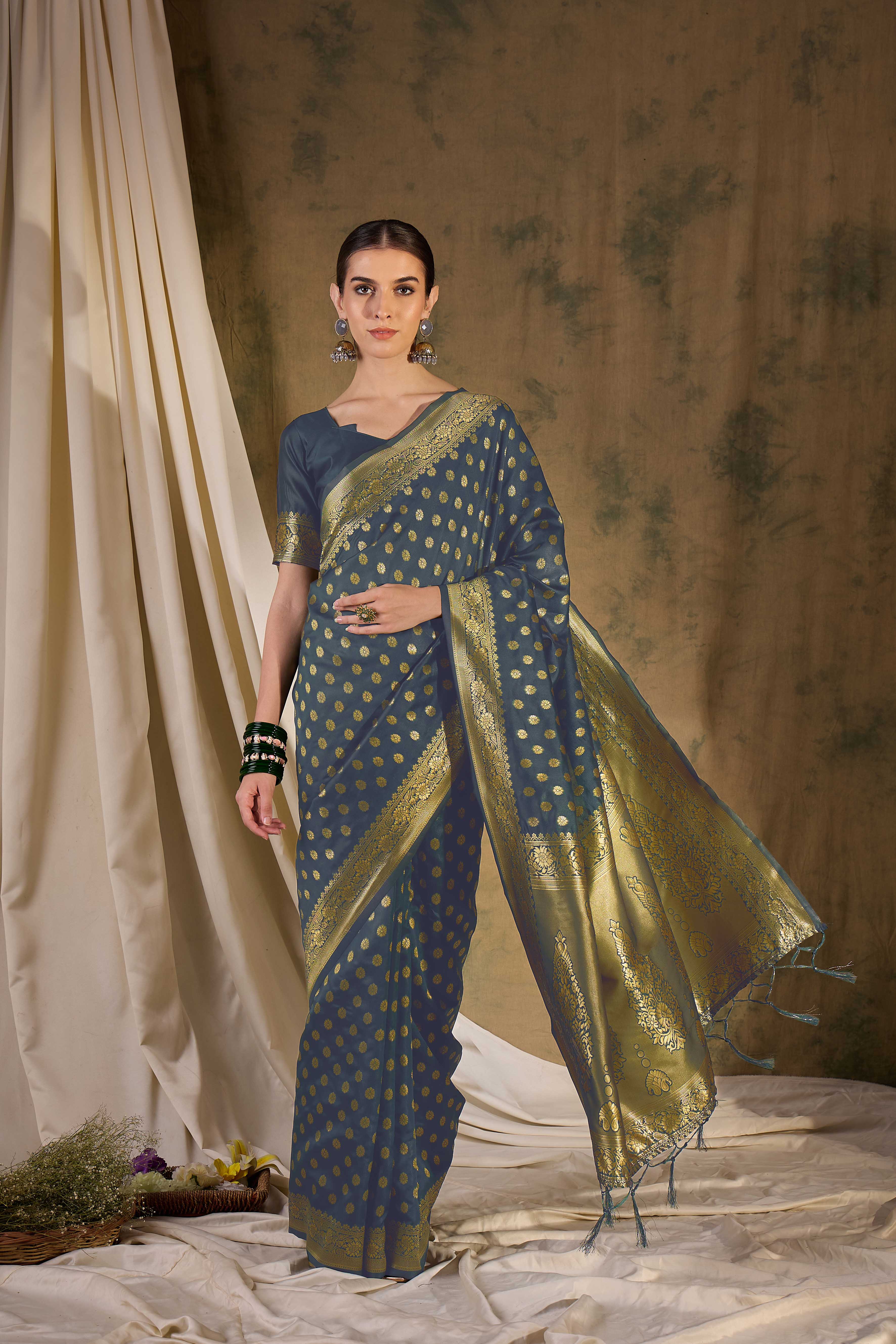 AASTHA FASHION Fashion Dream Womens Grey Banarasi Silk Saree | Soft & Elegant Traditional Wear