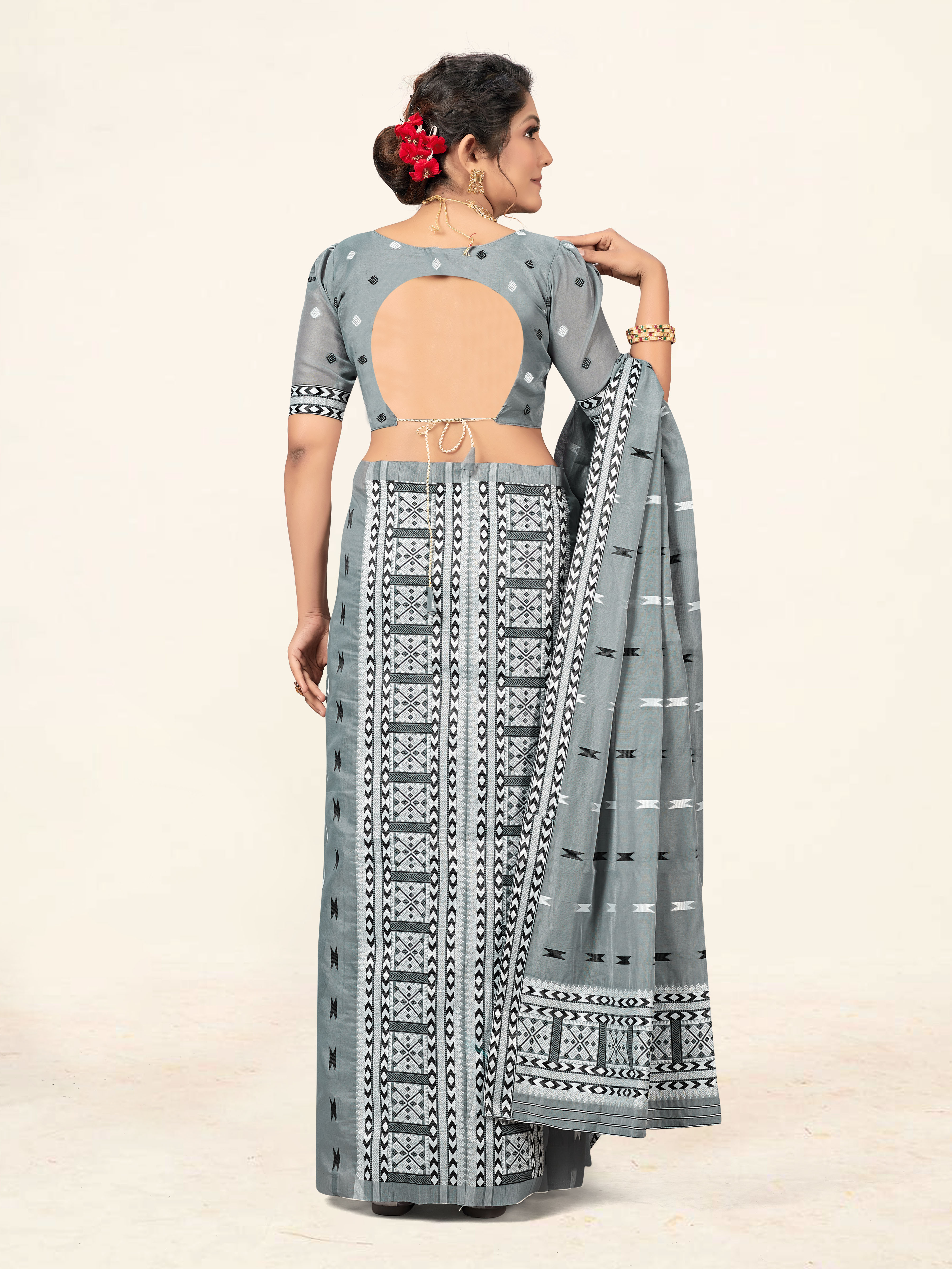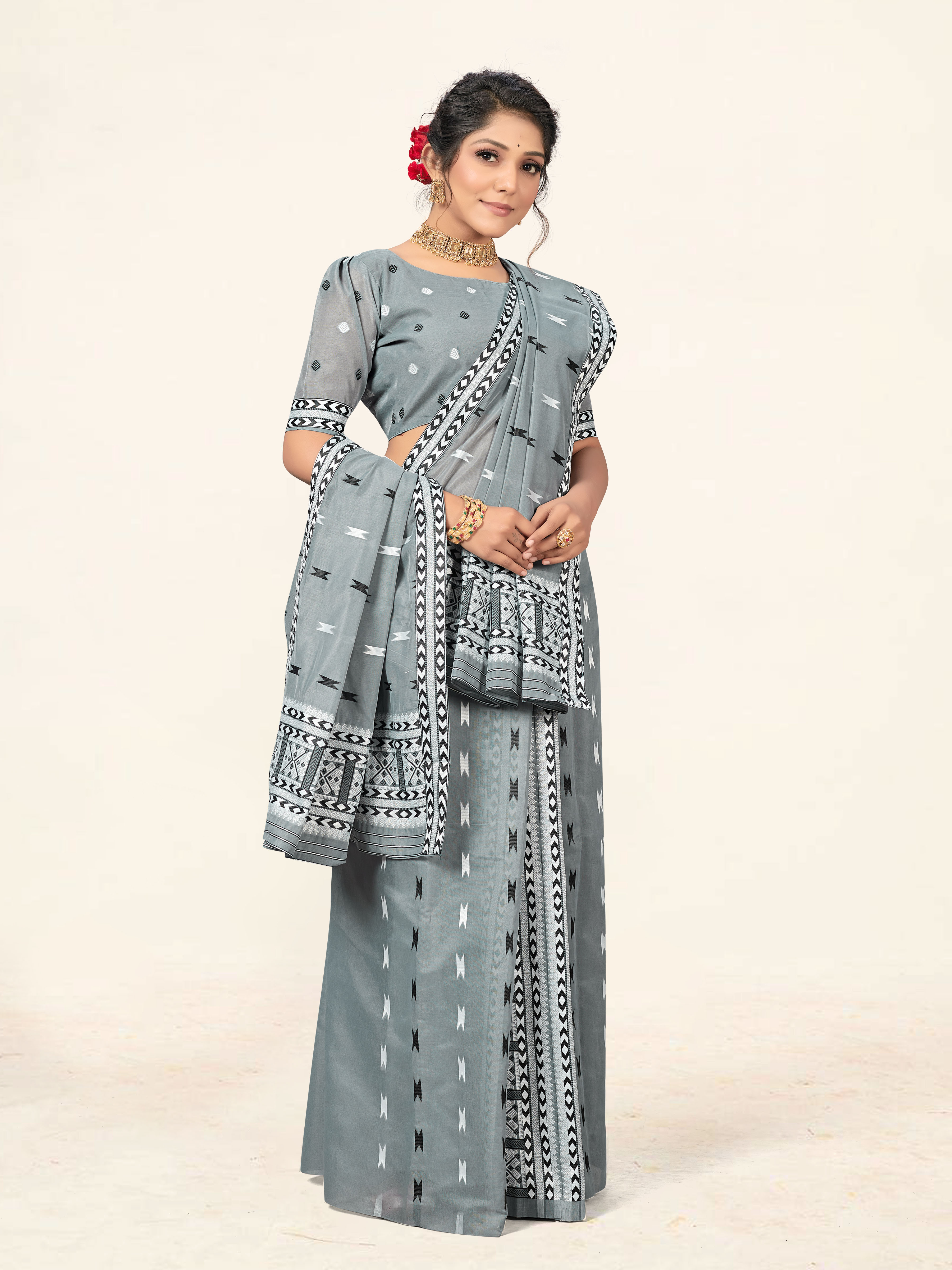 AASTHA FASHION Fashion Dream Womens Grey (Black,White) Cotton Saree | Soft & Elegant Traditional Wear