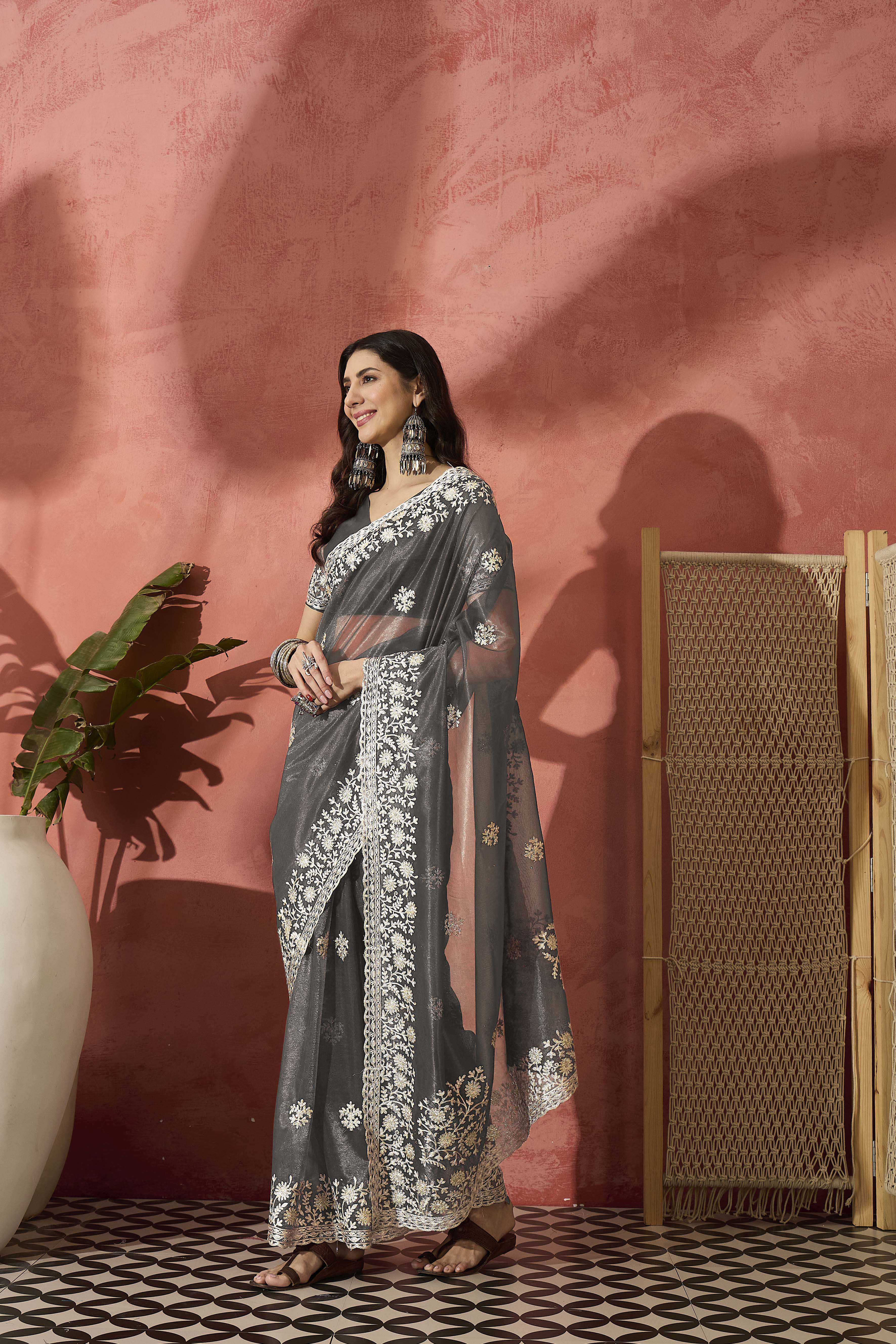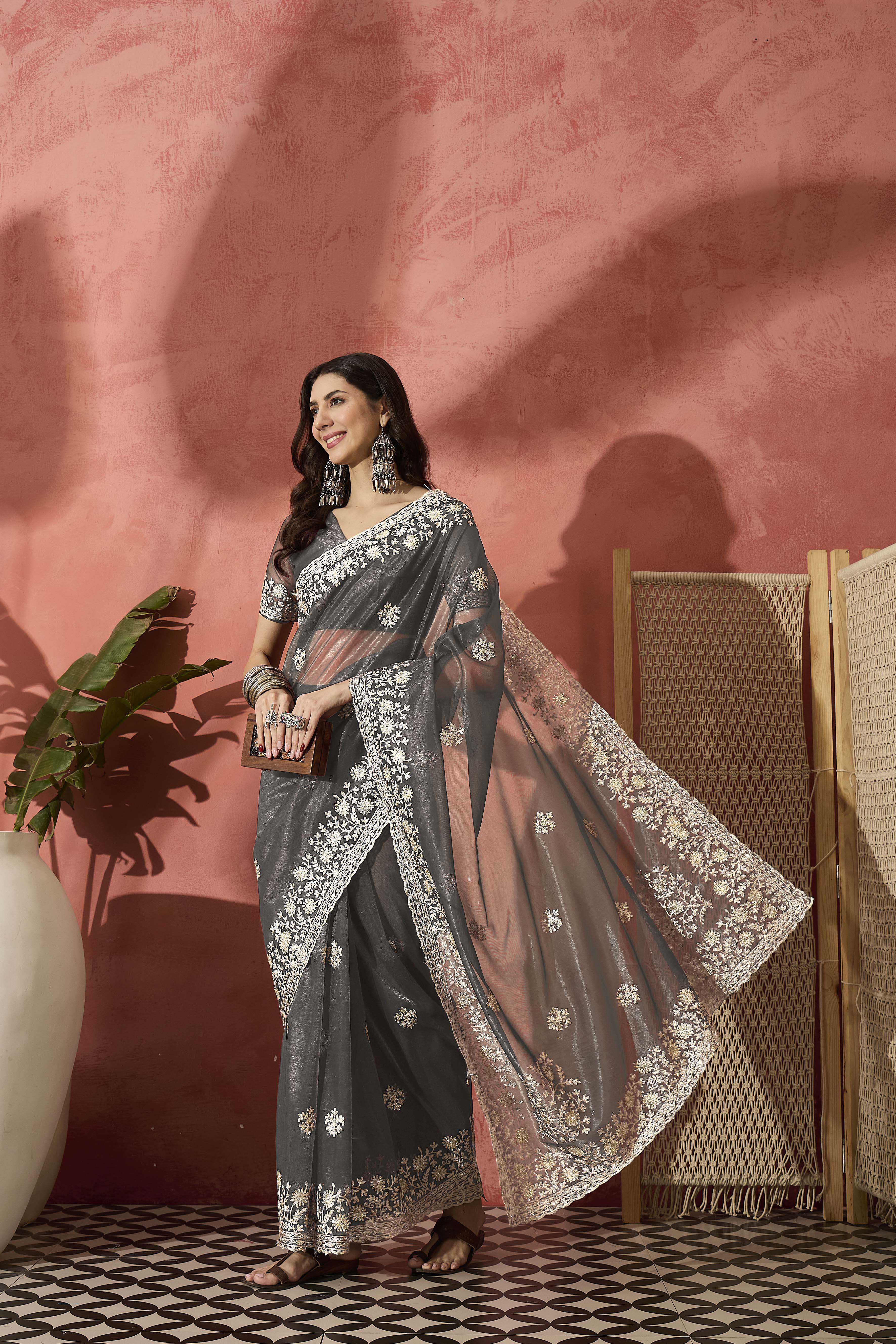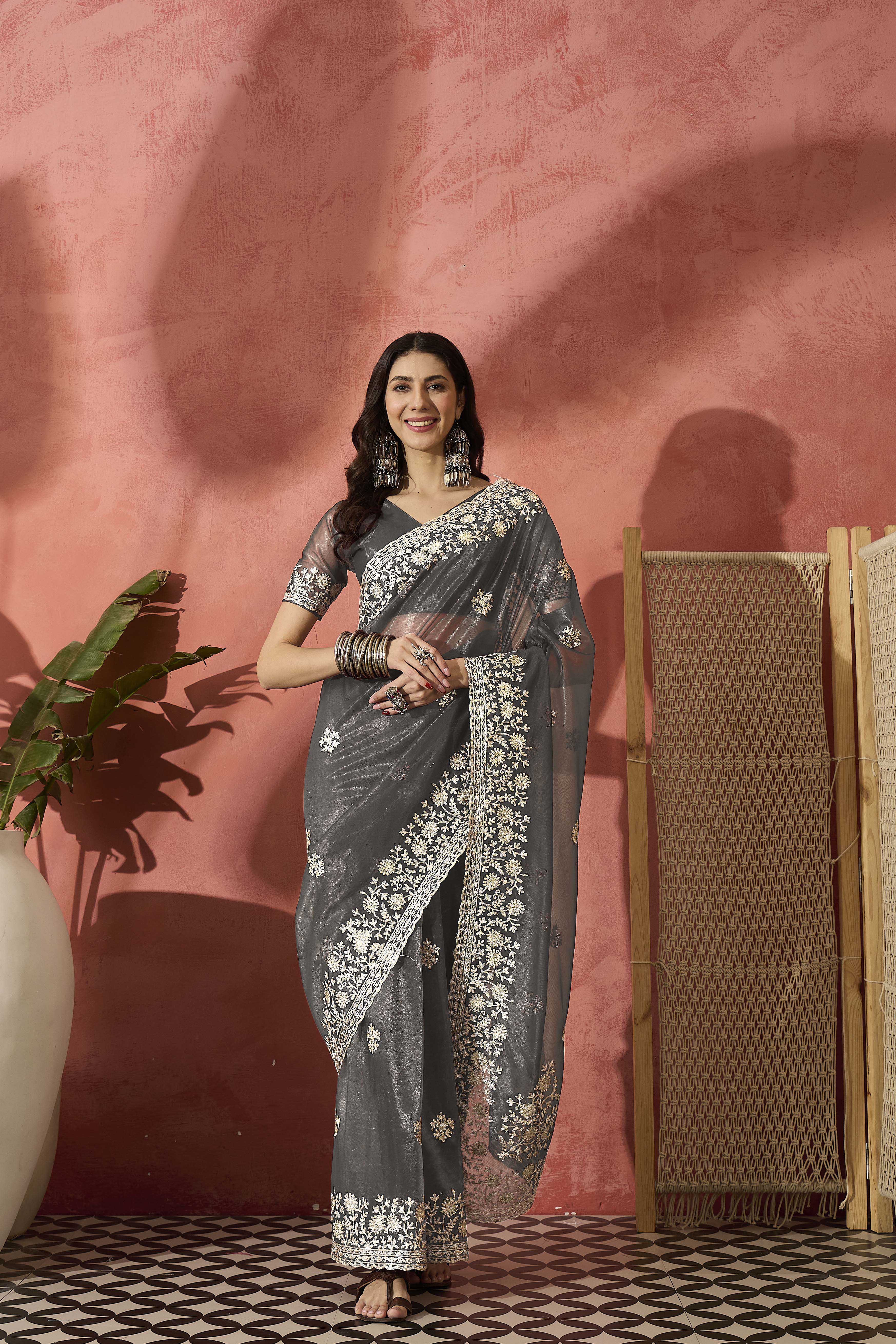 AASTHA FASHION Fashion Dream Womens Grey Twil Net Saree | Soft & Elegant Traditional Wear