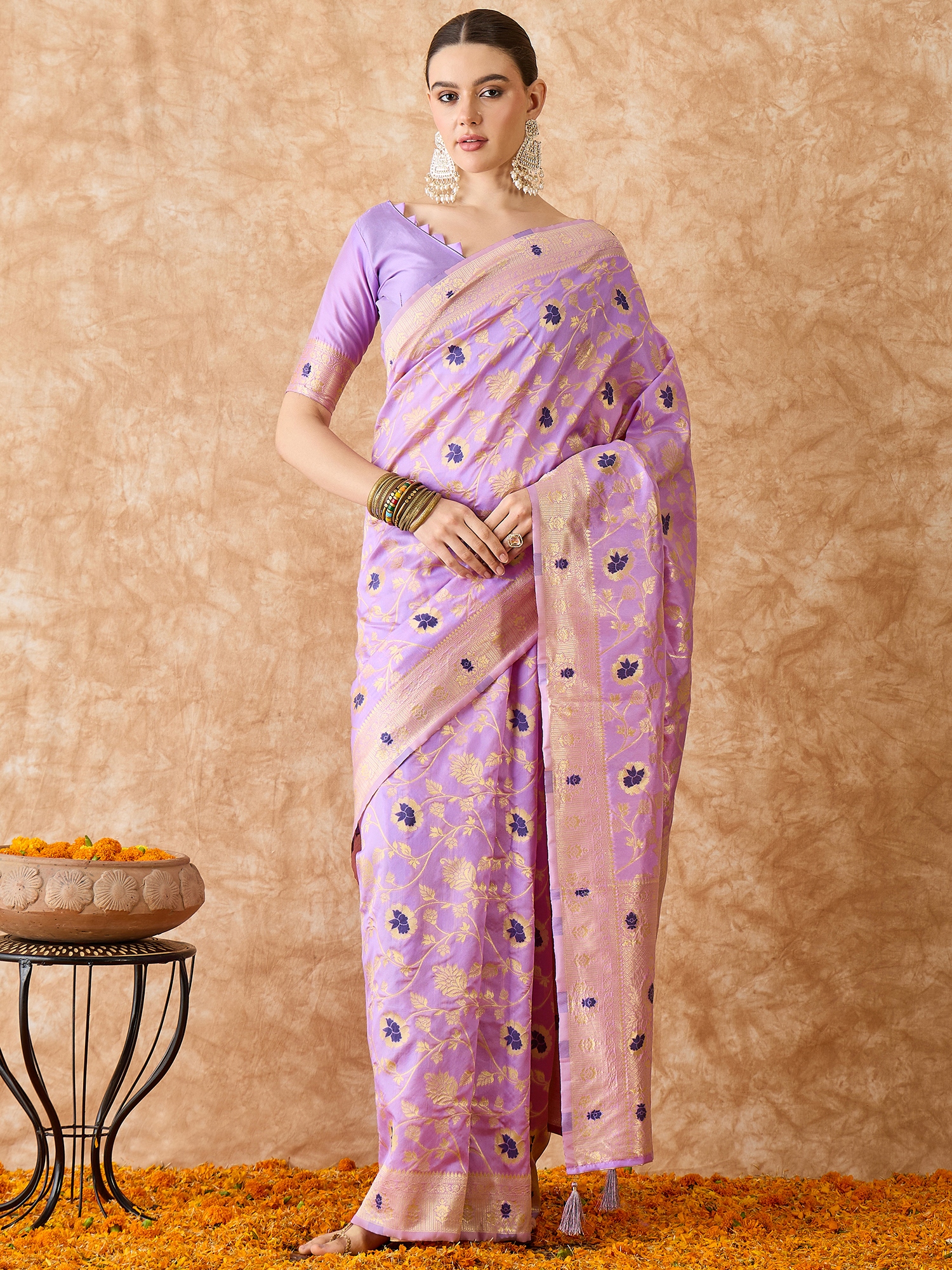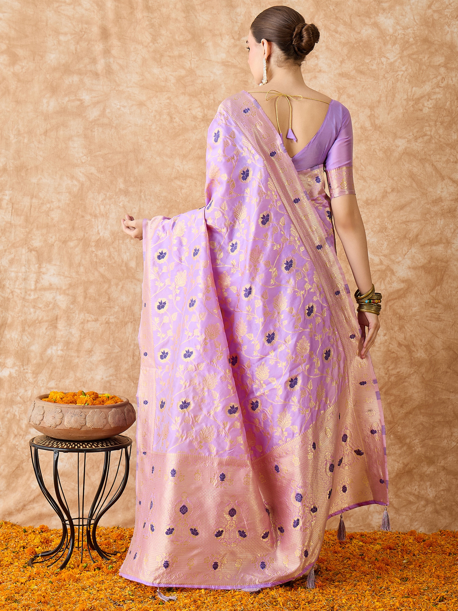AASTHA FASHION Fashion Dream Womens Lavender Banarasi Silk Saree | Soft & Elegant Traditional Wear