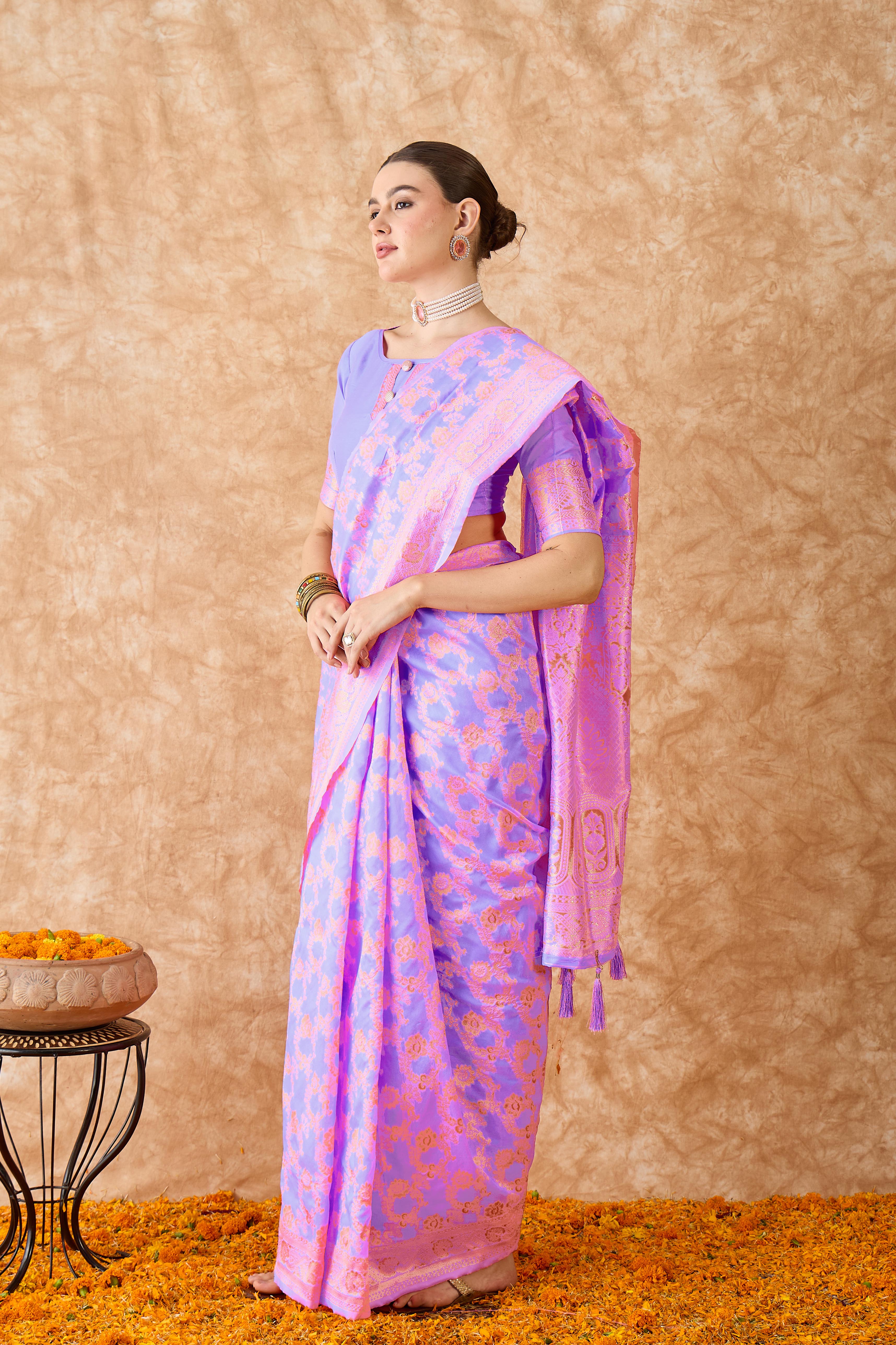 AASTHA FASHION Fashion Dream Womens Lavender Banarasi Silk Saree | Soft & Elegant Traditional Wear