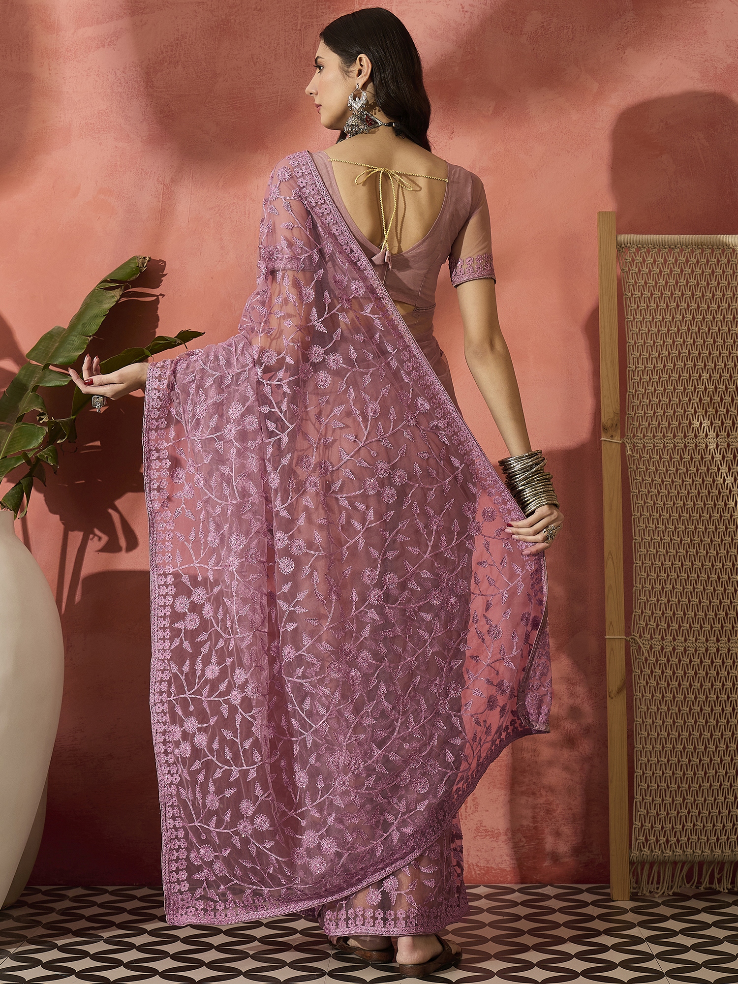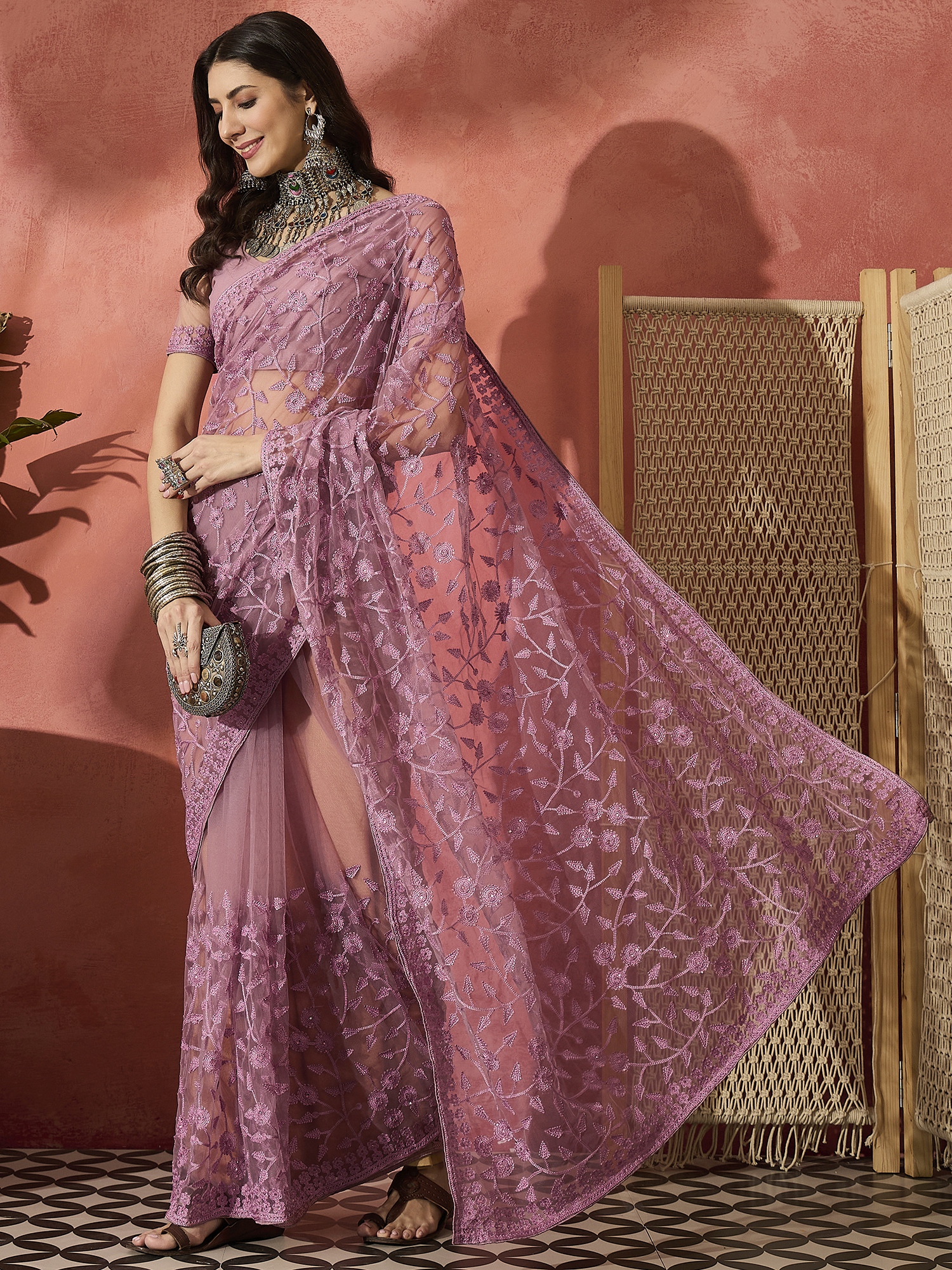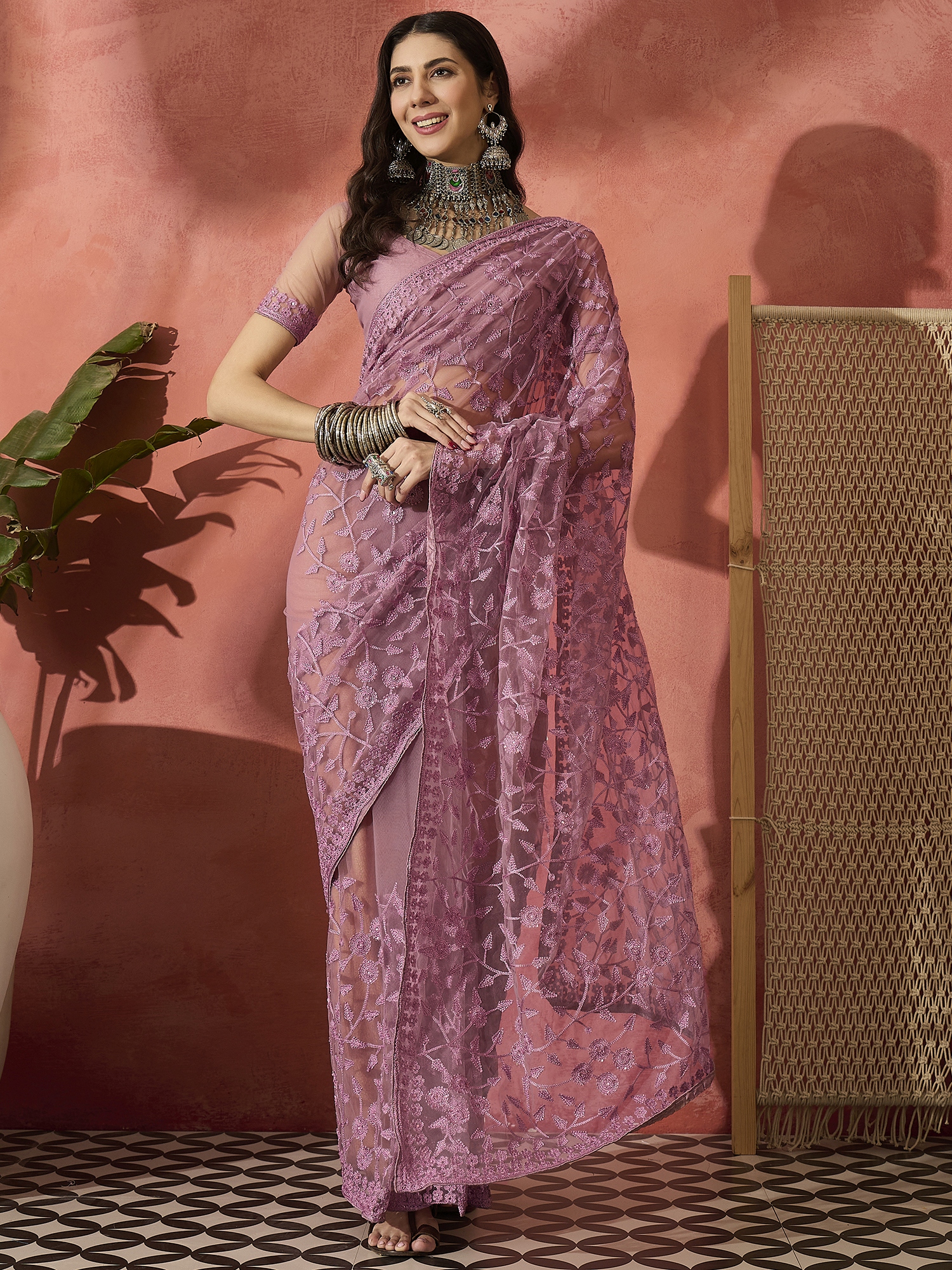 AASTHA FASHION Fashion Dream Womens Lavender Net Saree | Soft & Elegant Traditional Wear