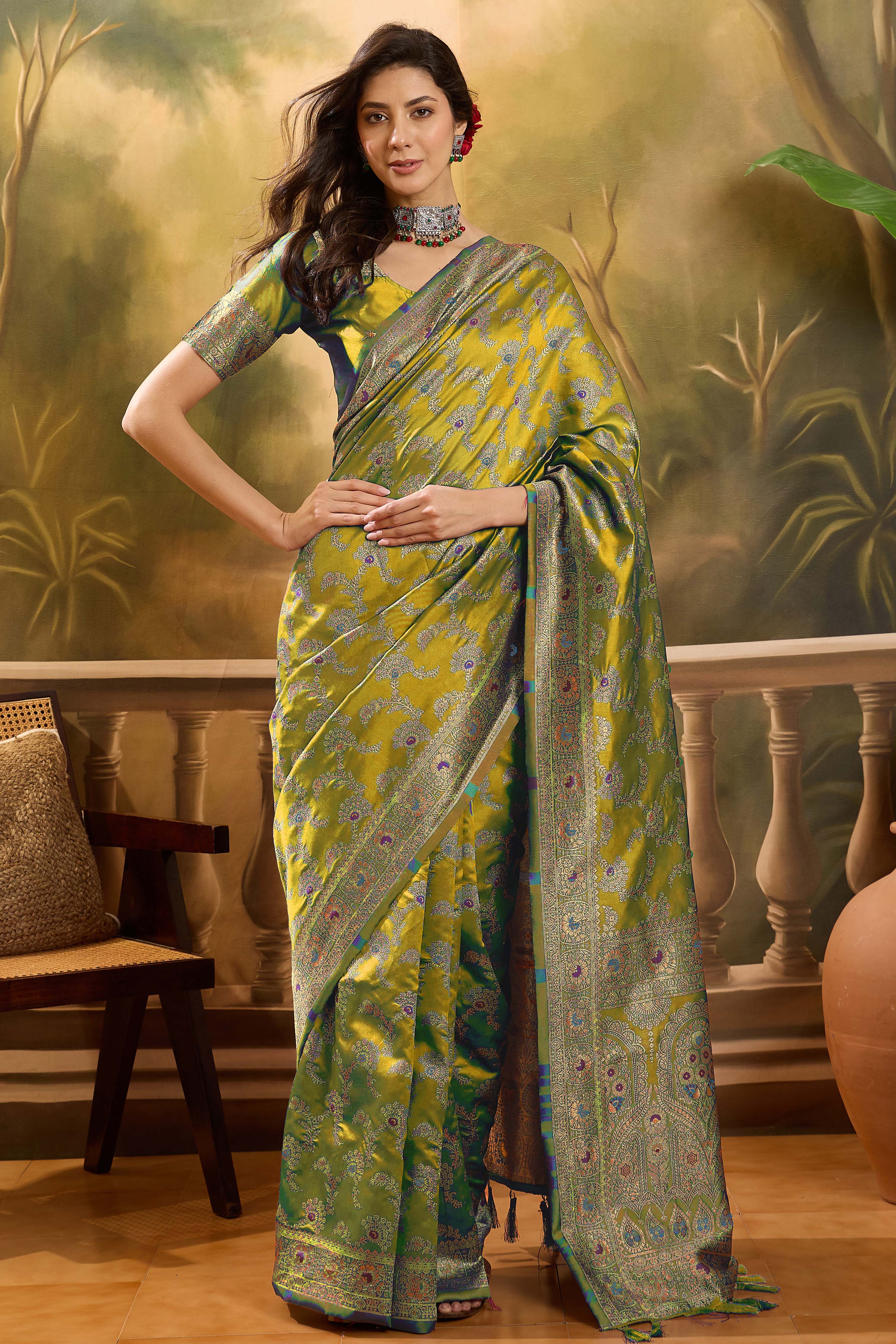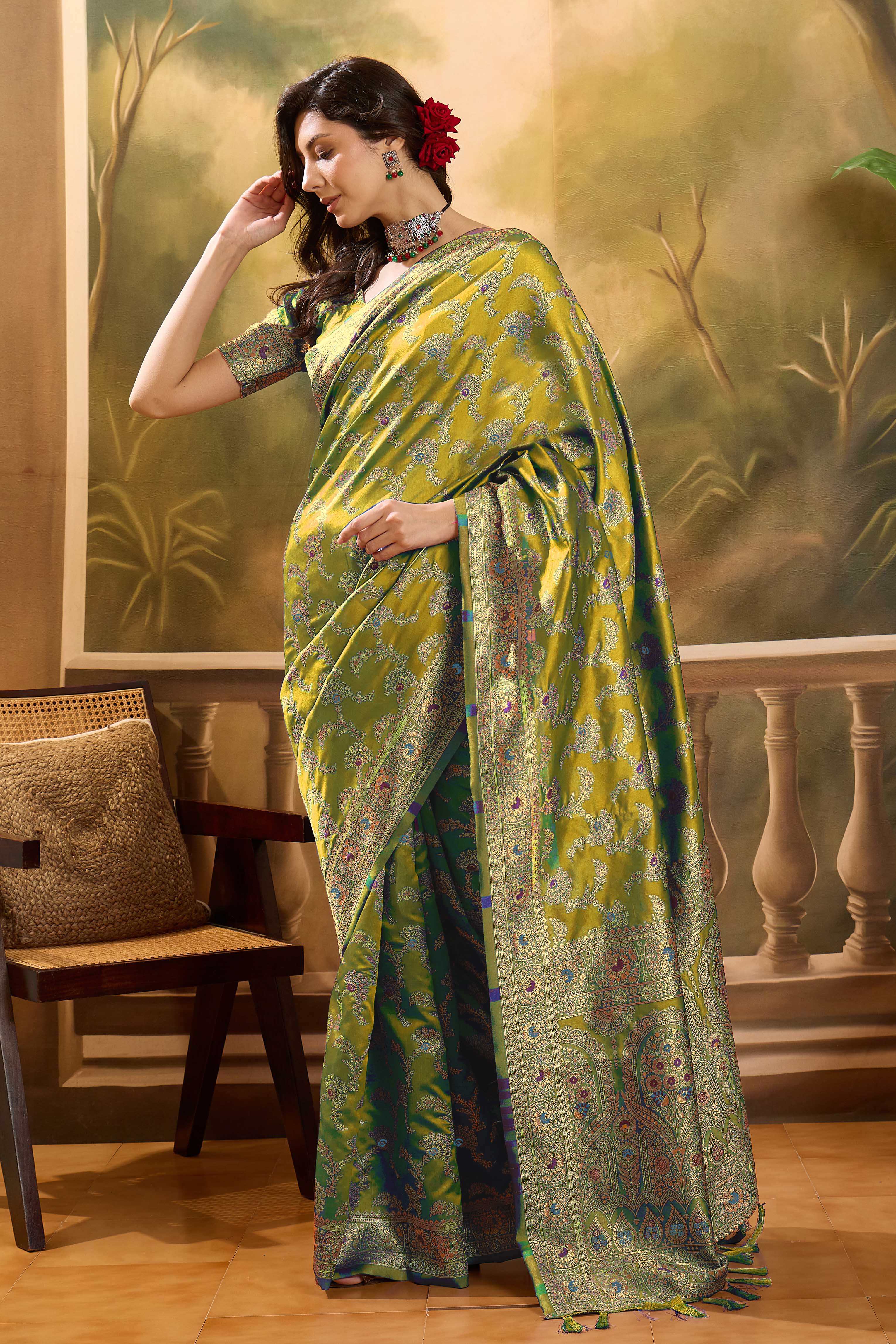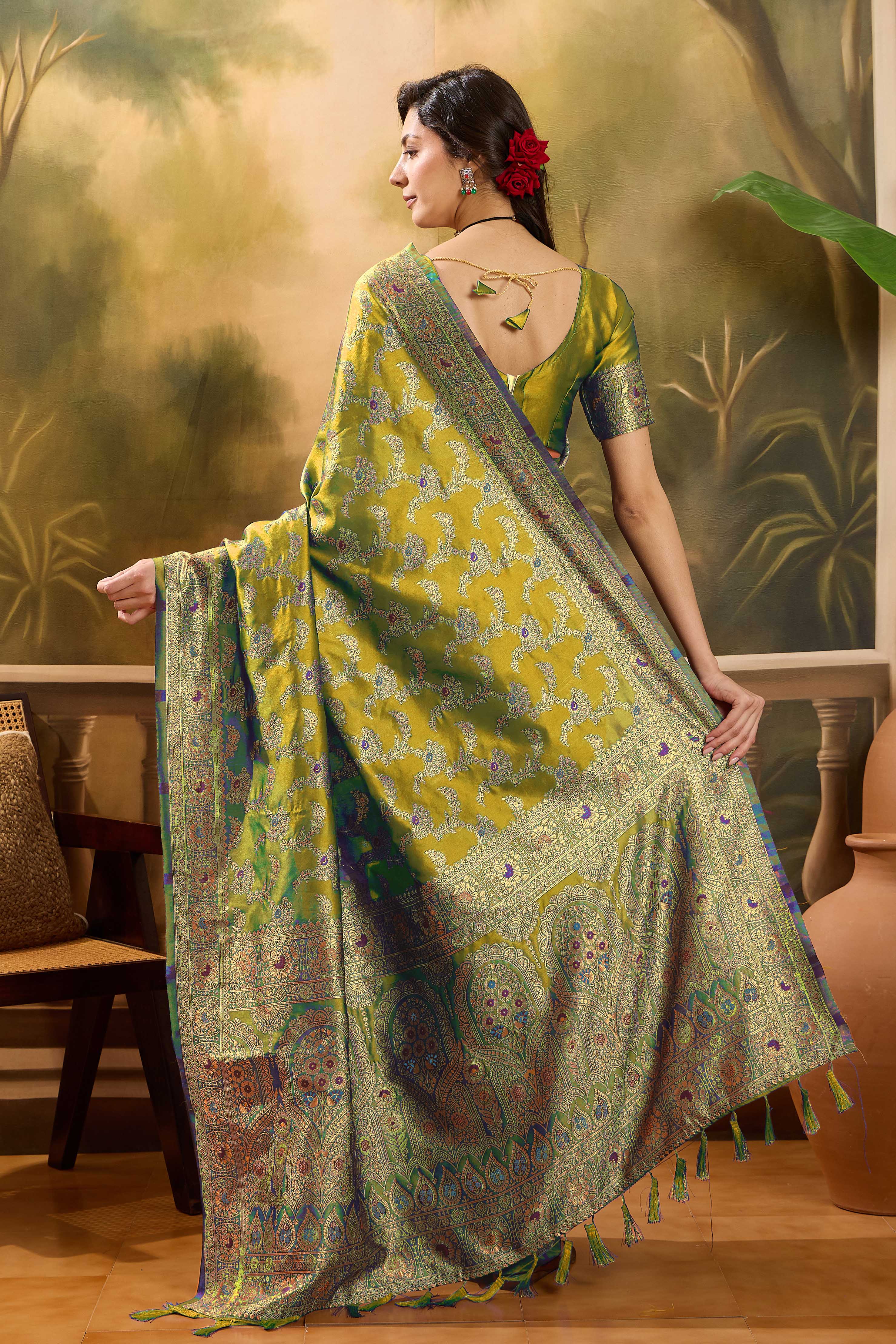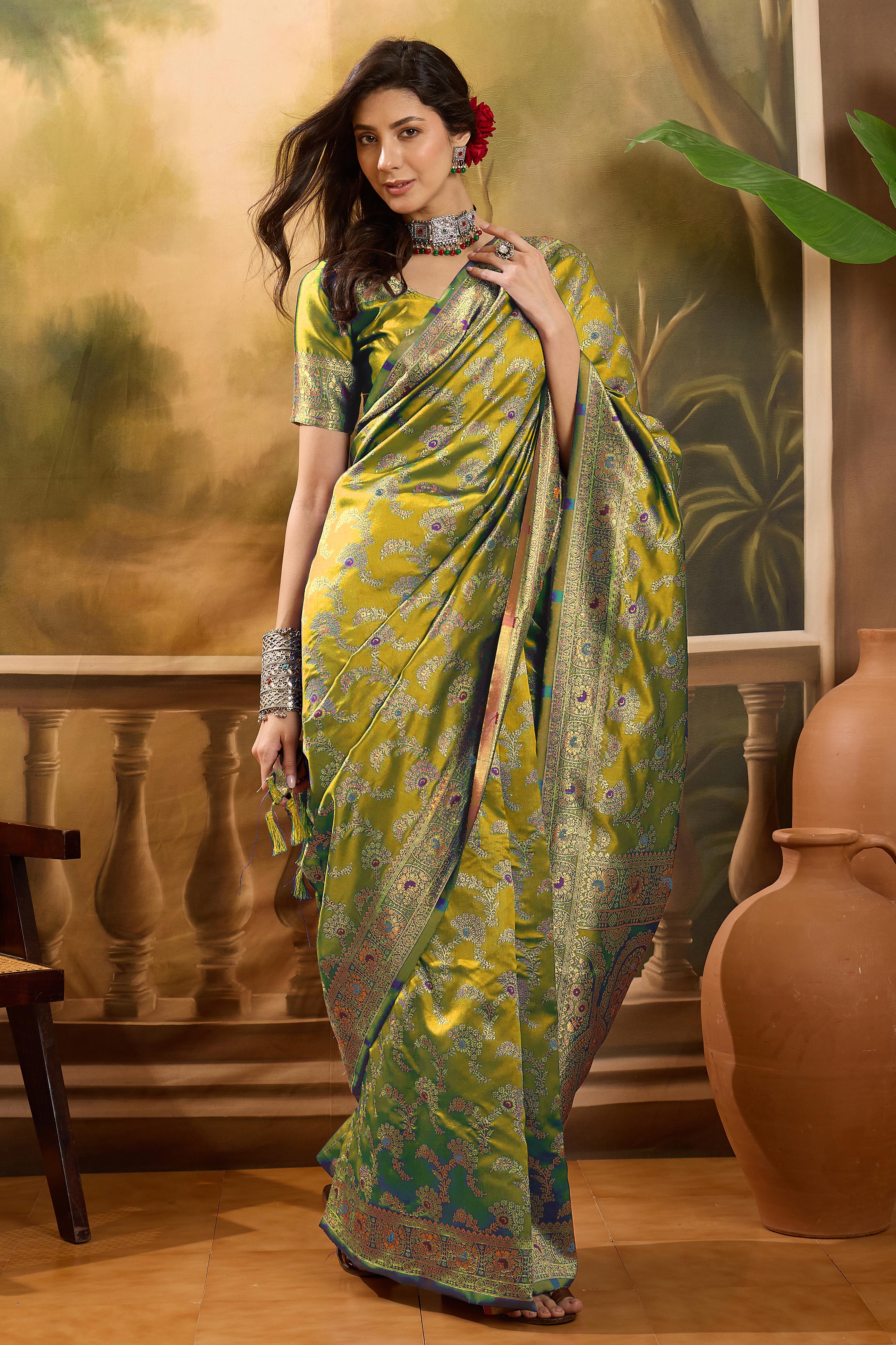 AASTHA FASHION Fashion Dream Womens Lime Green Banarasi Jacquard Saree | Soft & Elegant Traditional Wear