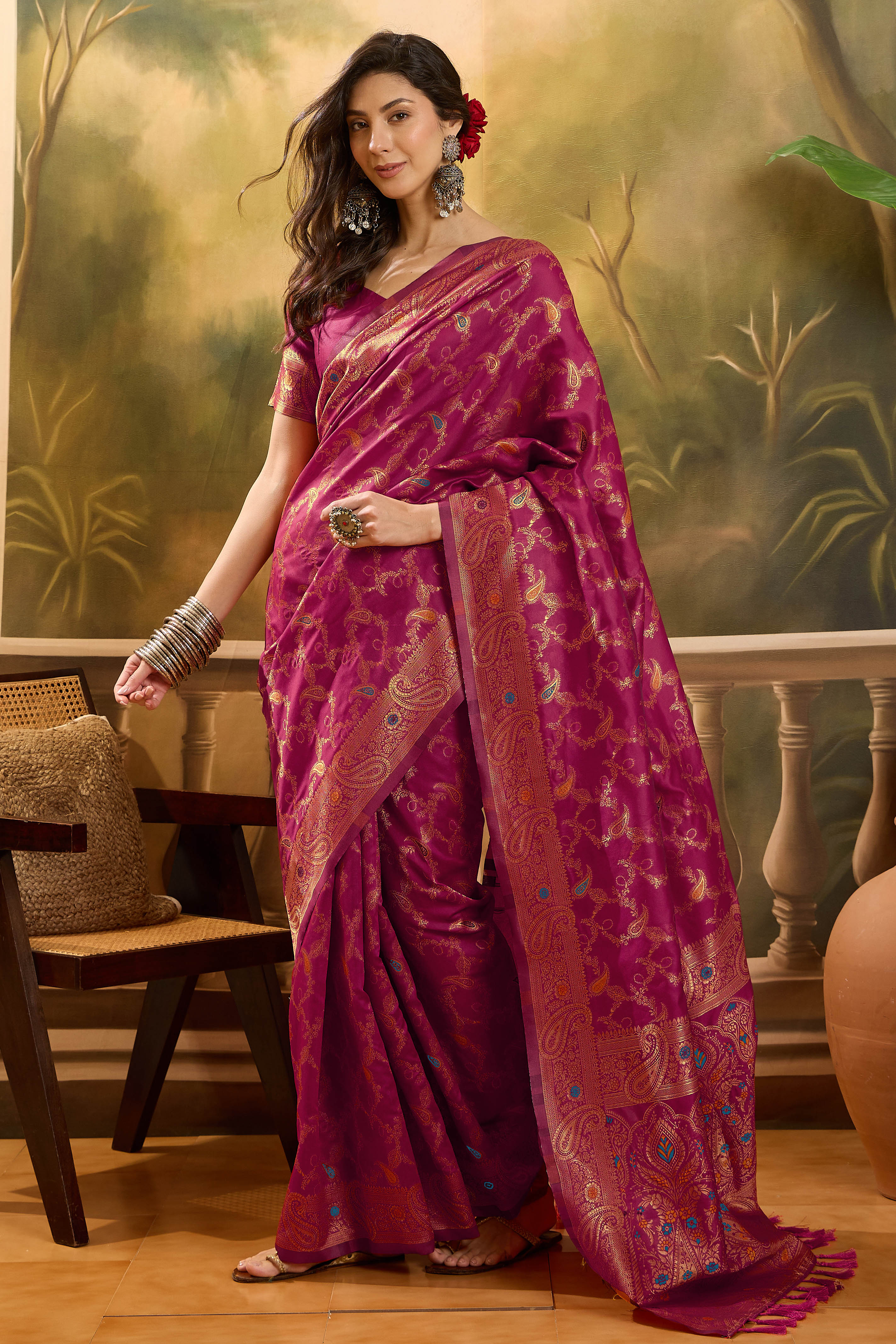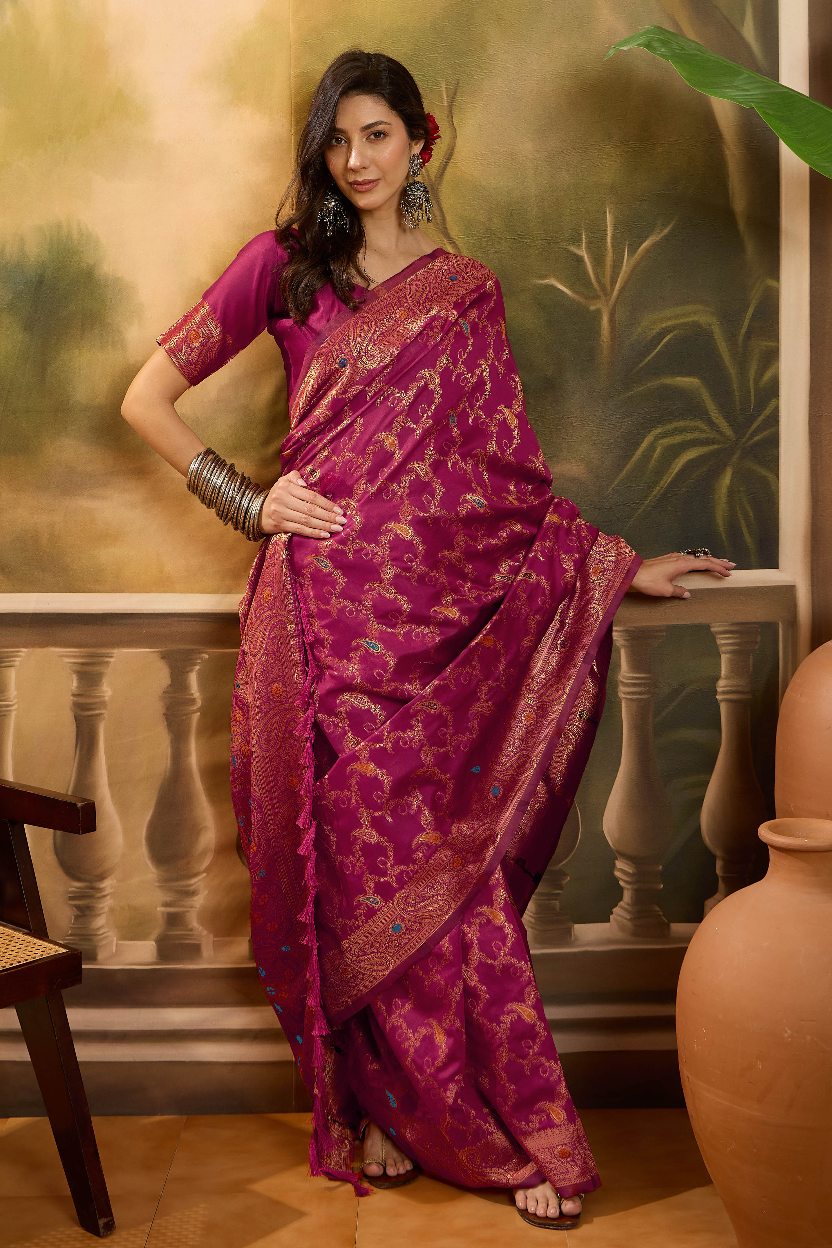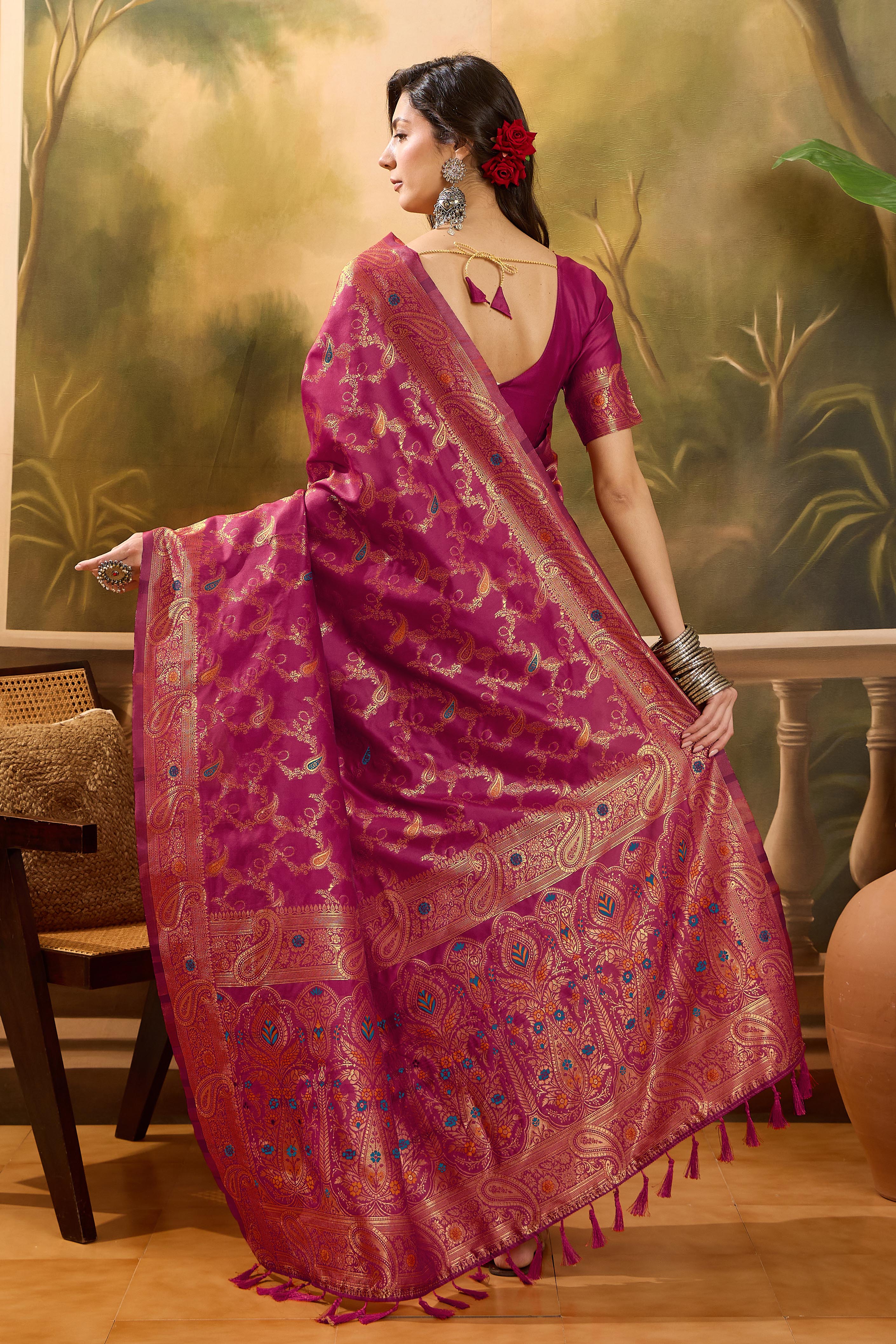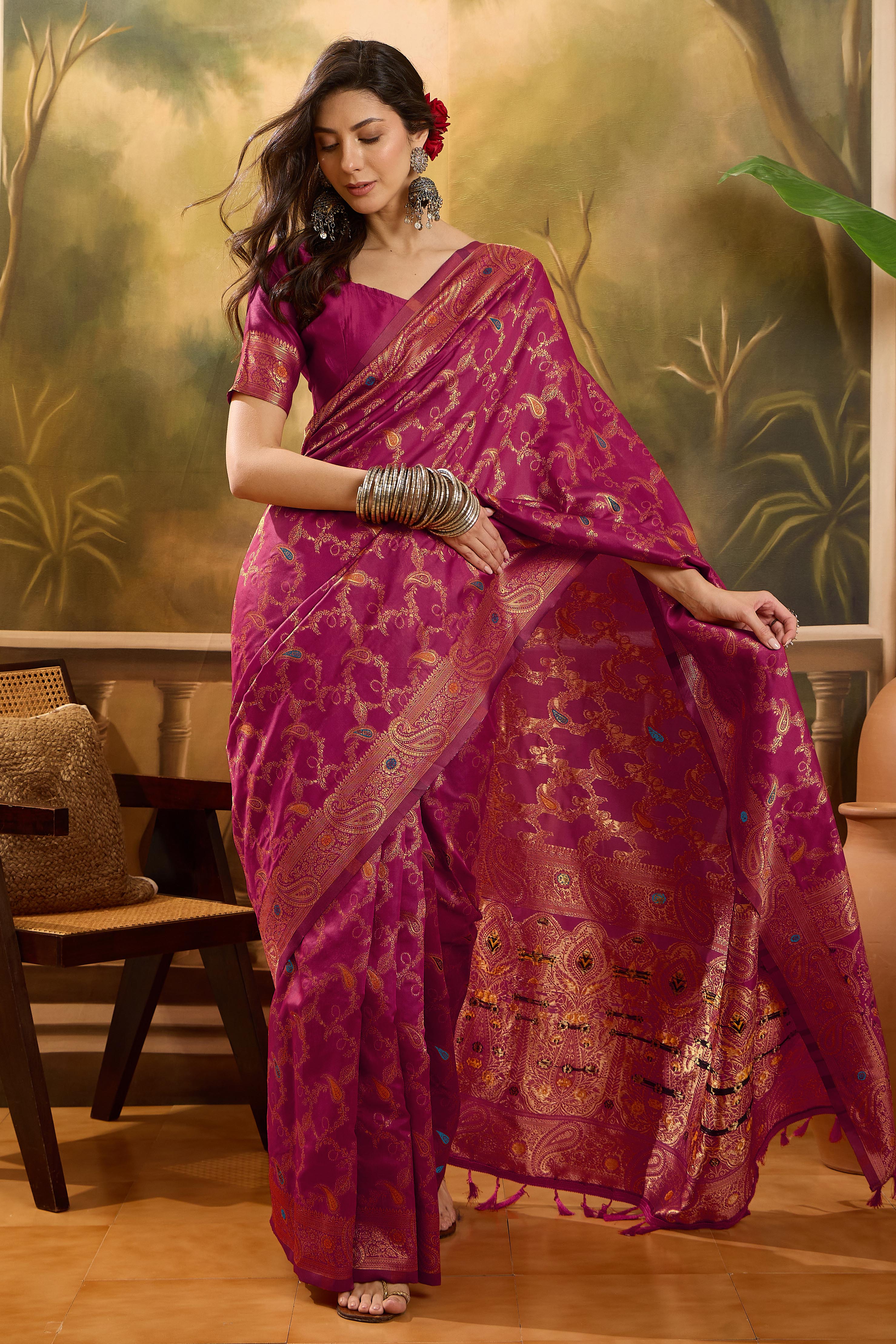 AASTHA FASHION Fashion Dream Womens Magenta Banarasi Jacquard Saree | Soft & Elegant Traditional Wear