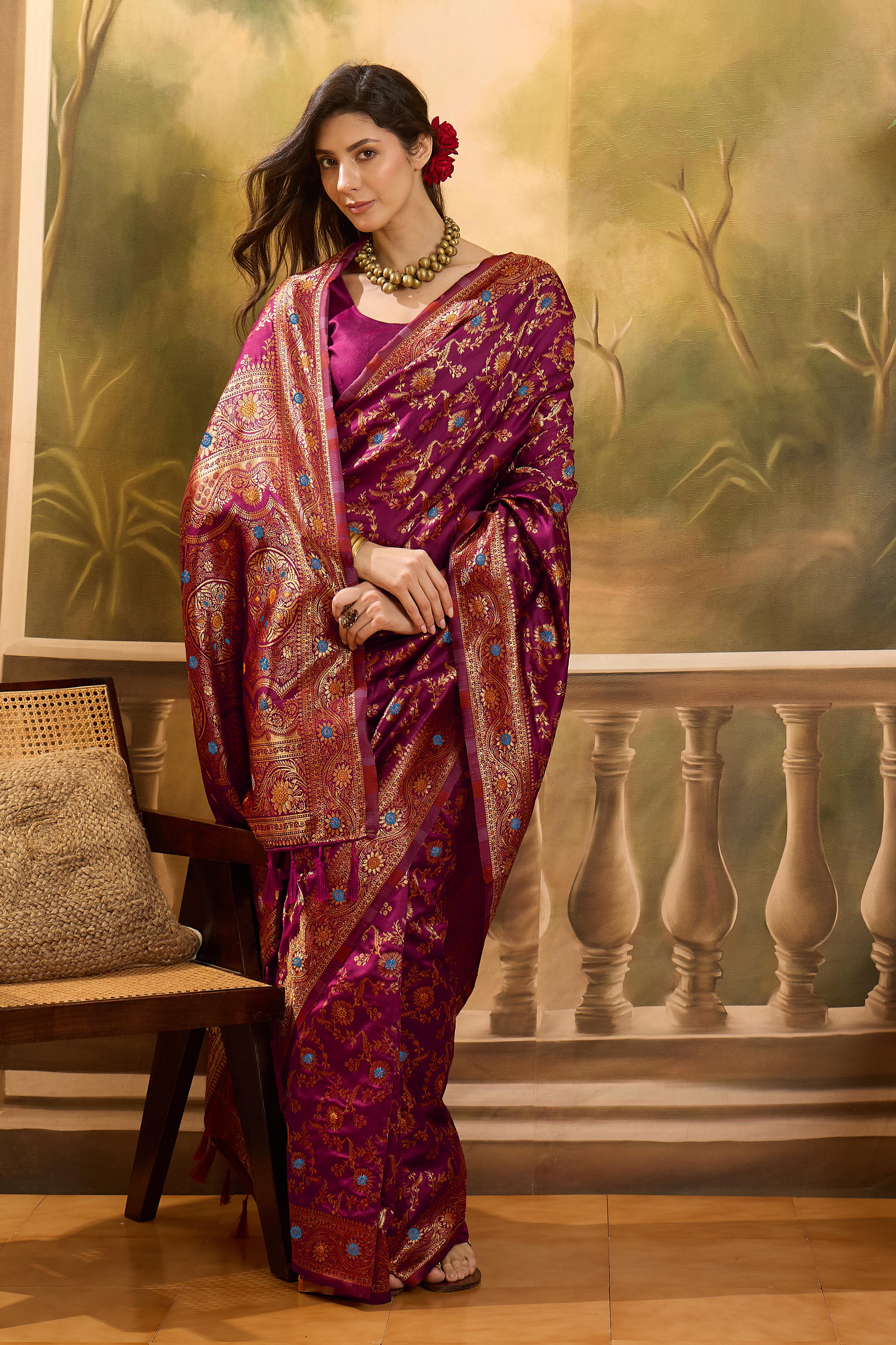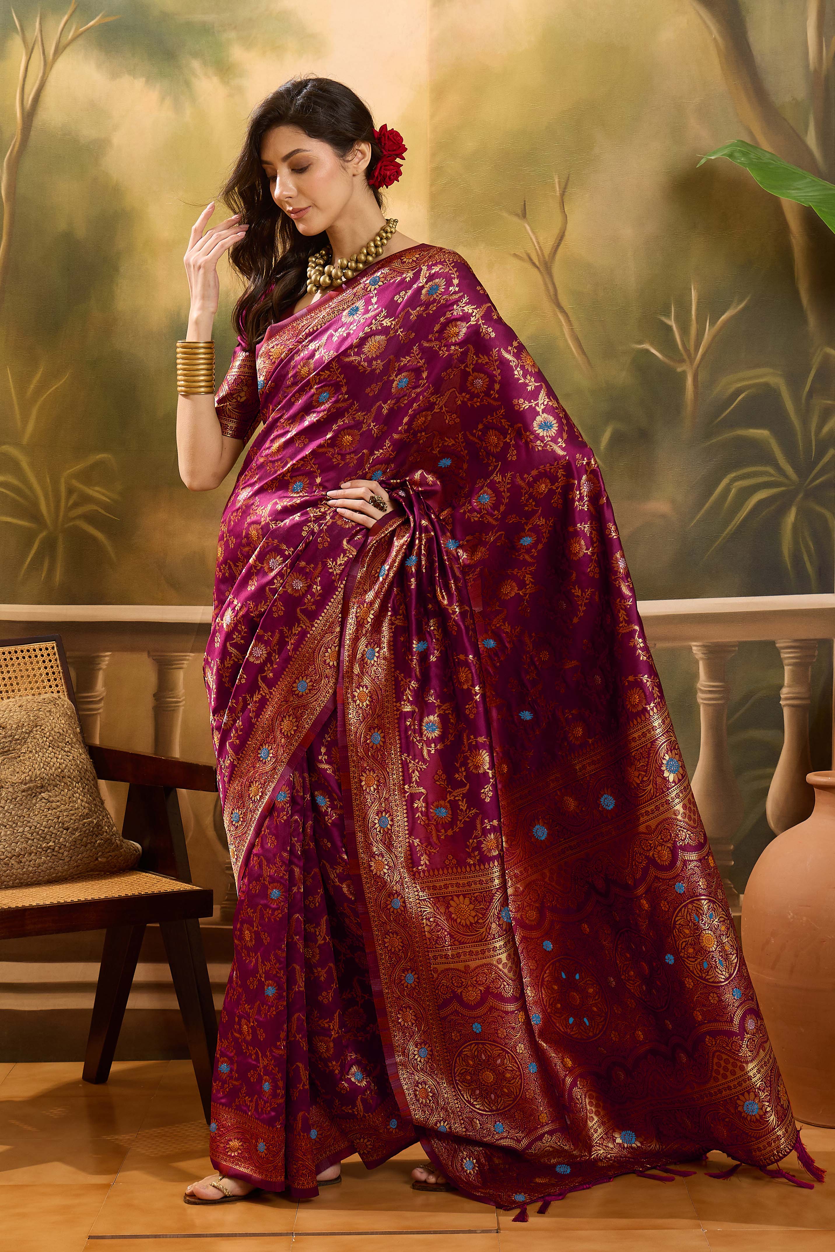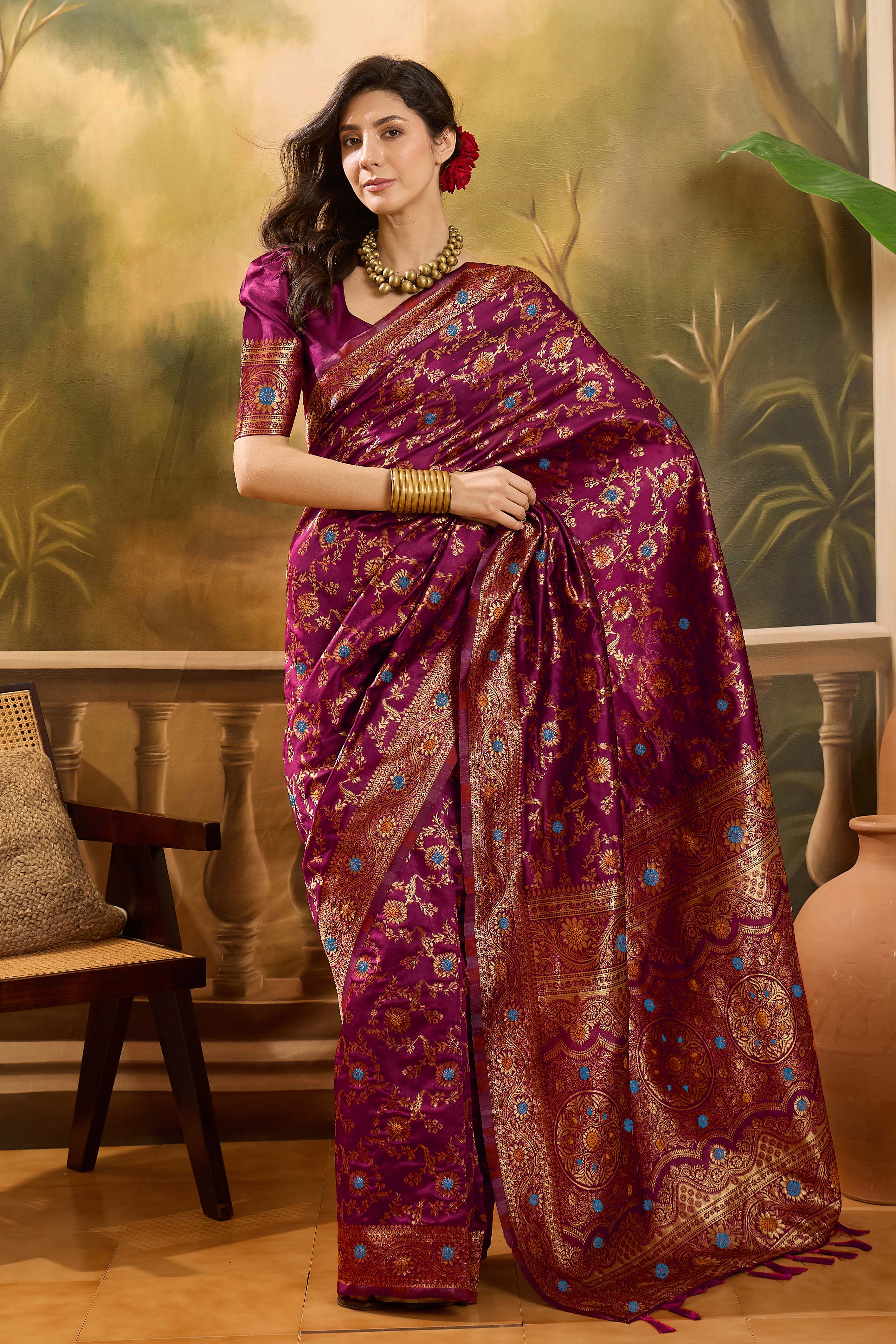 AASTHA FASHION Fashion Dream Womens Magenta Banarasi Jacquard Saree | Soft & Elegant Traditional Wear