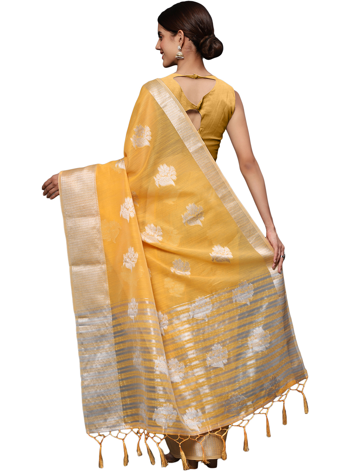 AASTHA FASHION Fashion Dream Womens Mango Yellow Tissue Silk Saree | Soft & Elegant Traditional Wear