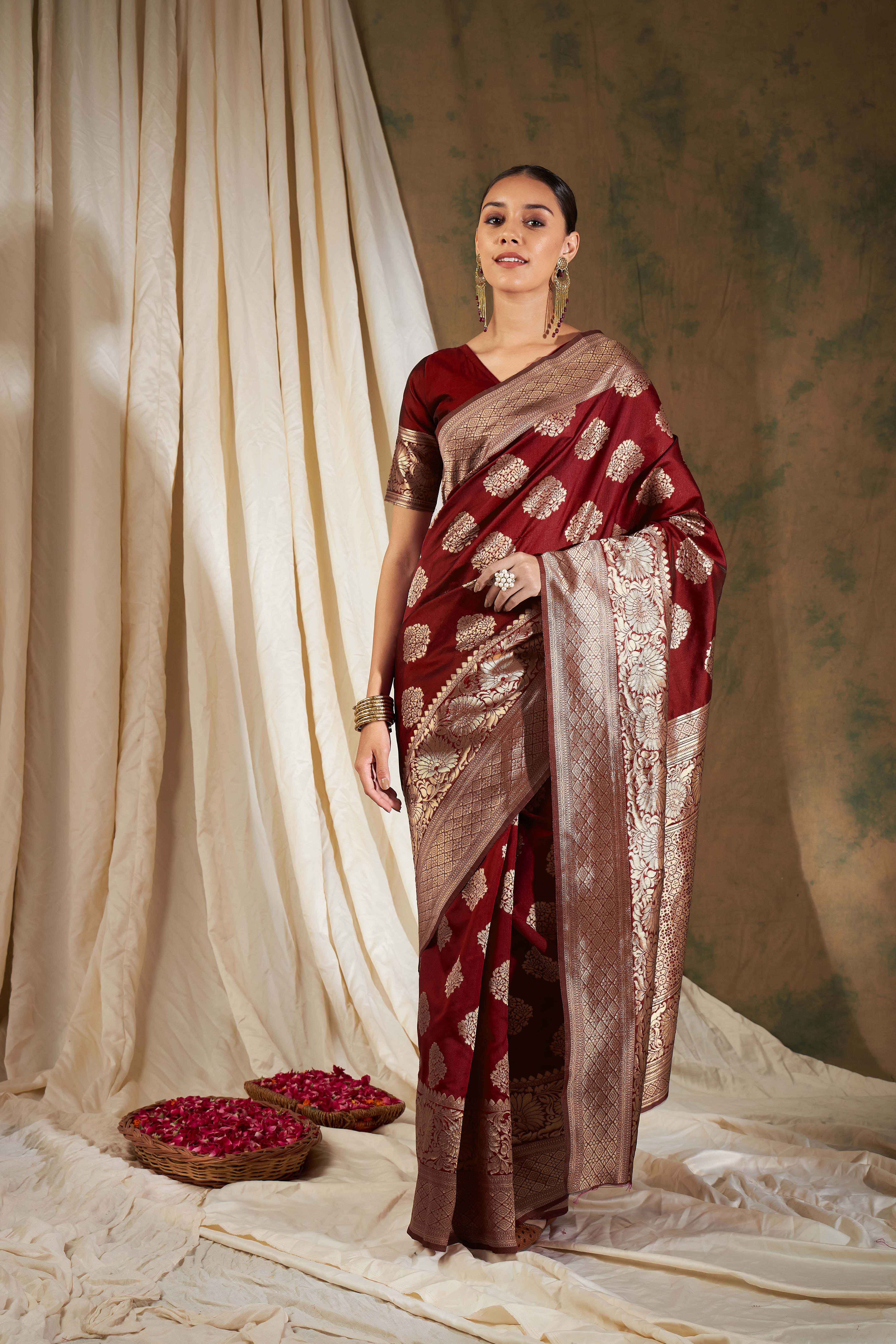 AASTHA FASHION Fashion Dream Womens MAROON Banarasi Silk Saree | Soft & Elegant Traditional Wear