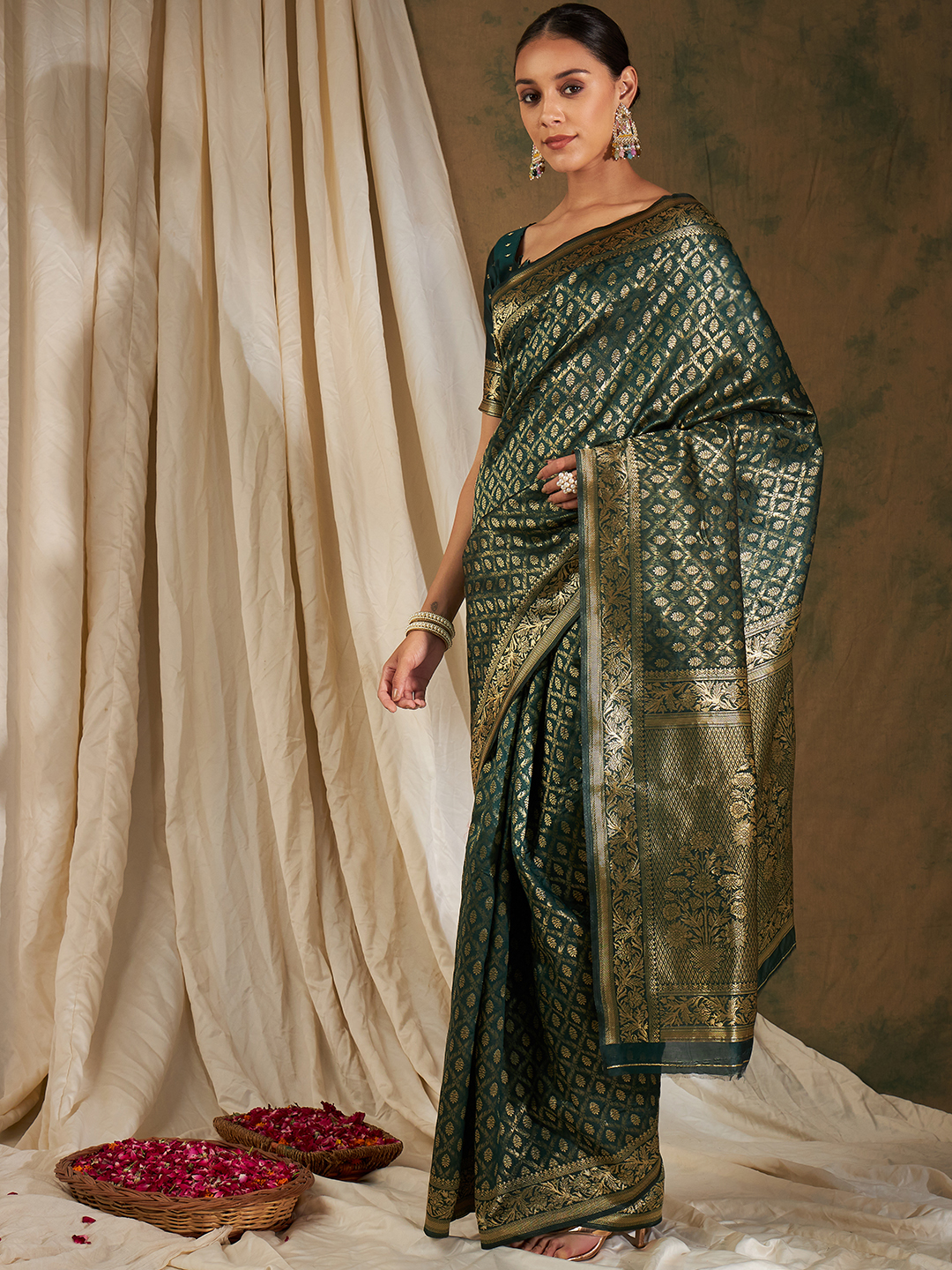 AASTHA FASHION Fashion Dream Womens Mehandi Banarasi Silk Saree | Soft & Elegant Traditional Wear