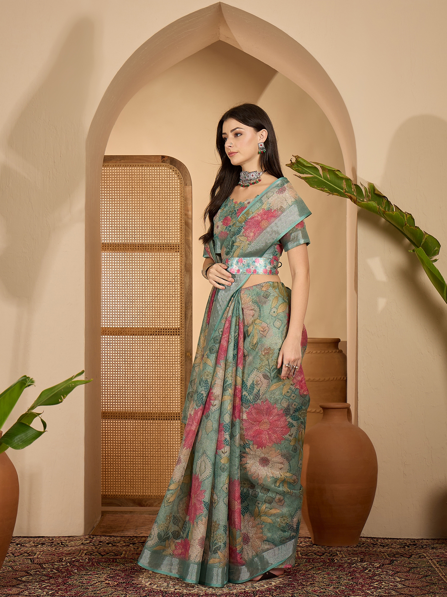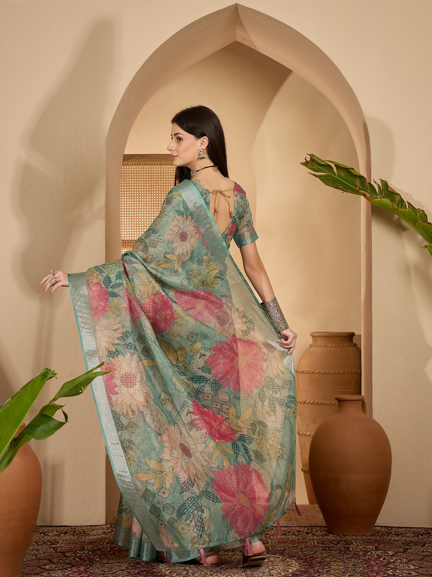 Saree Work-Digital Print ,Blouse Work- Linen Zari Gold