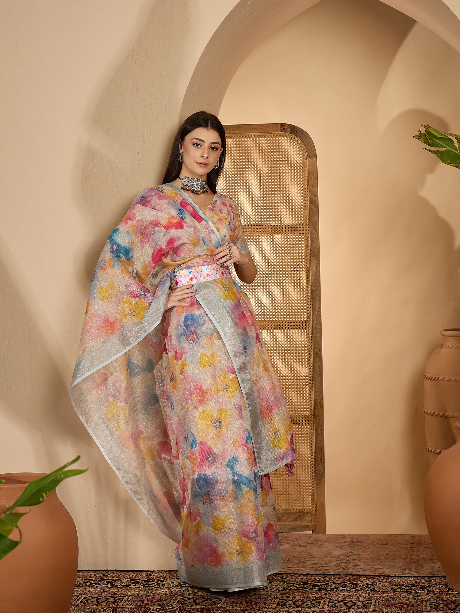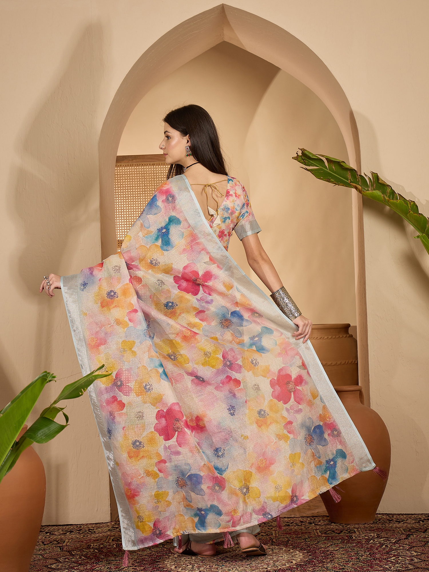 Saree Work-Digital Print ,Blouse Work- Linen Zari Gold