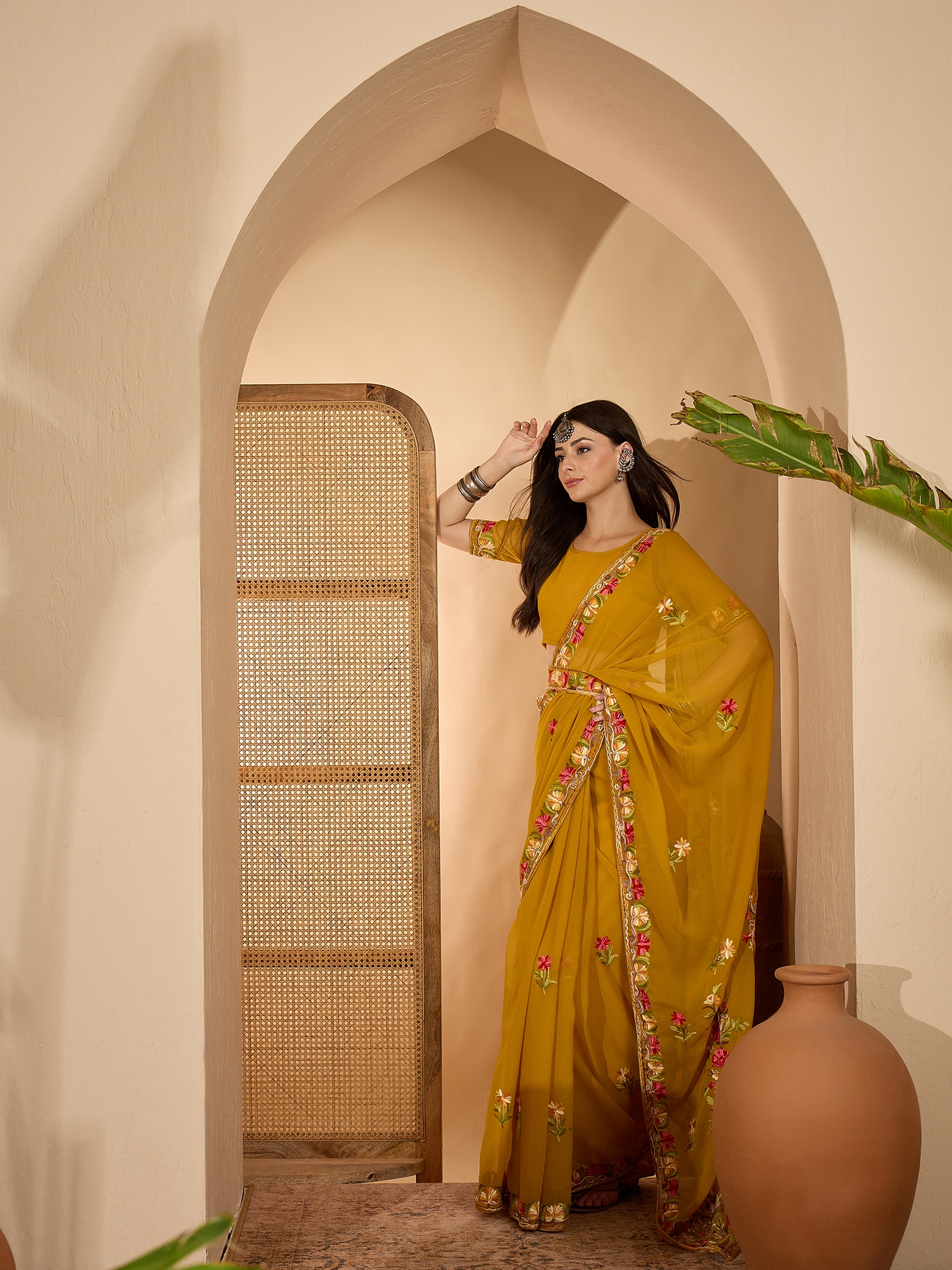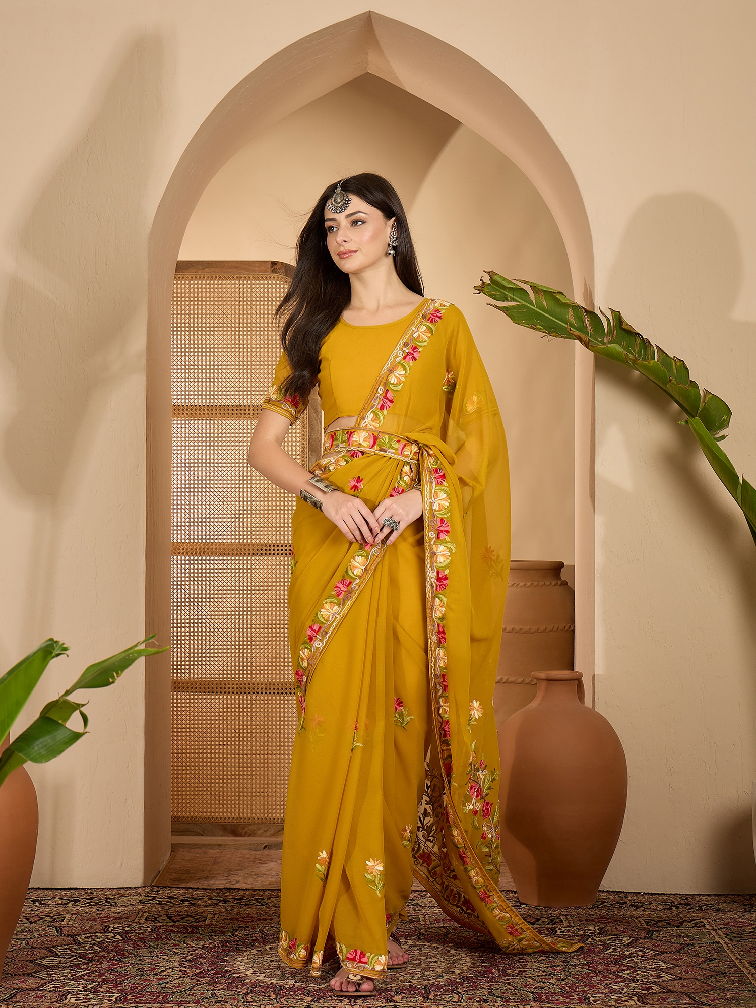 AASTHA FASHION Fashion Dream Womens Mustard Georgette Saree | Soft & Elegant Traditional Wear
