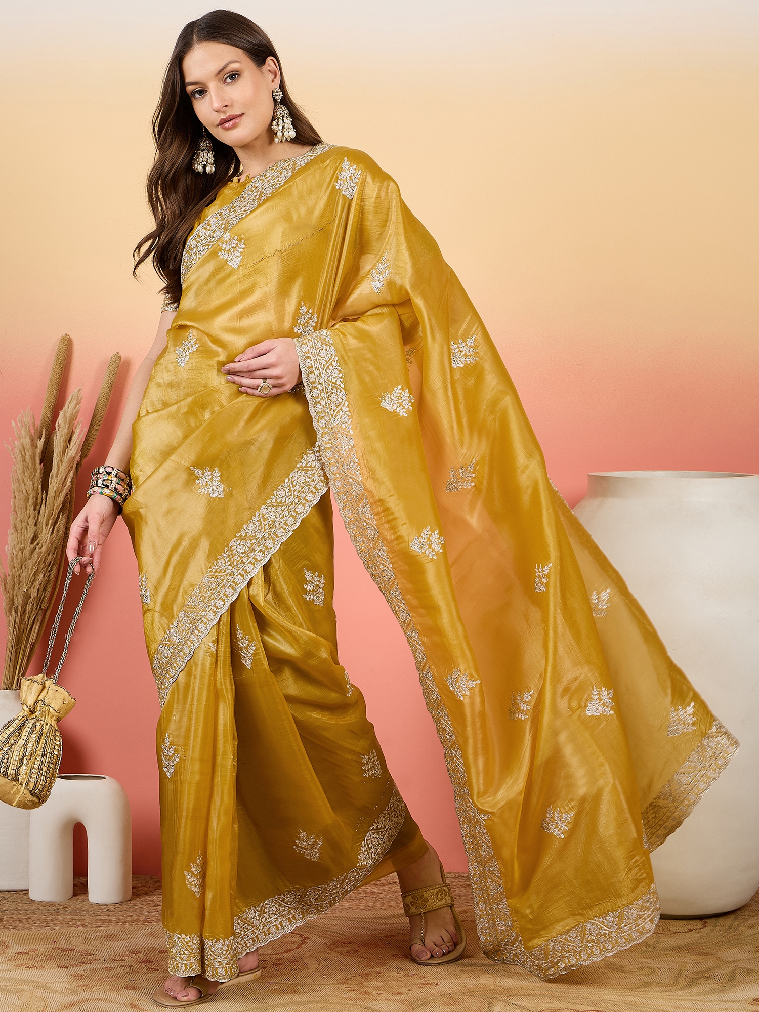 Saree Fabric-Gold Crush ,Blouse Fabric-Gold Crush