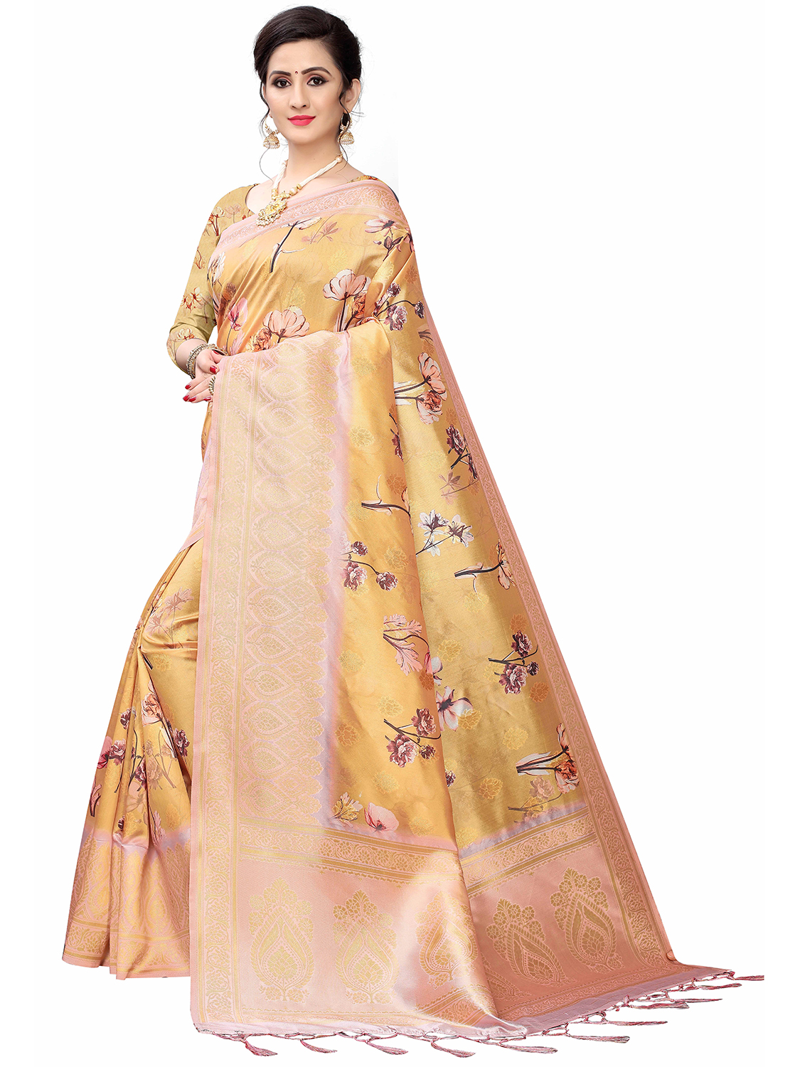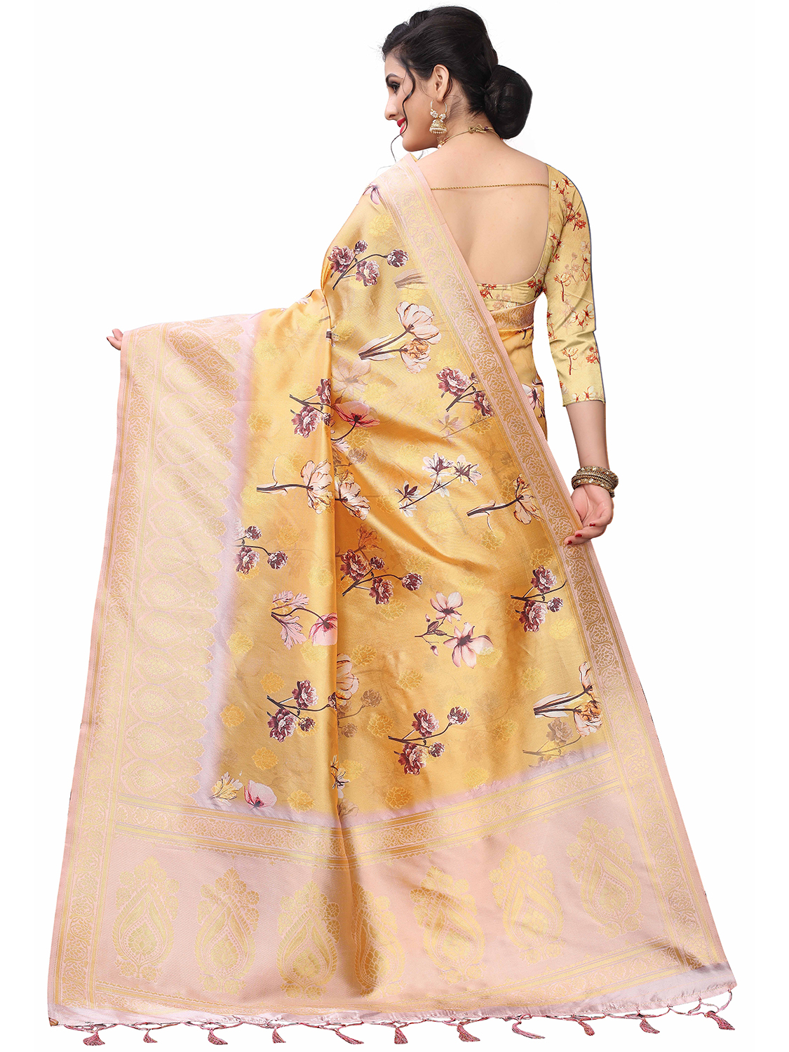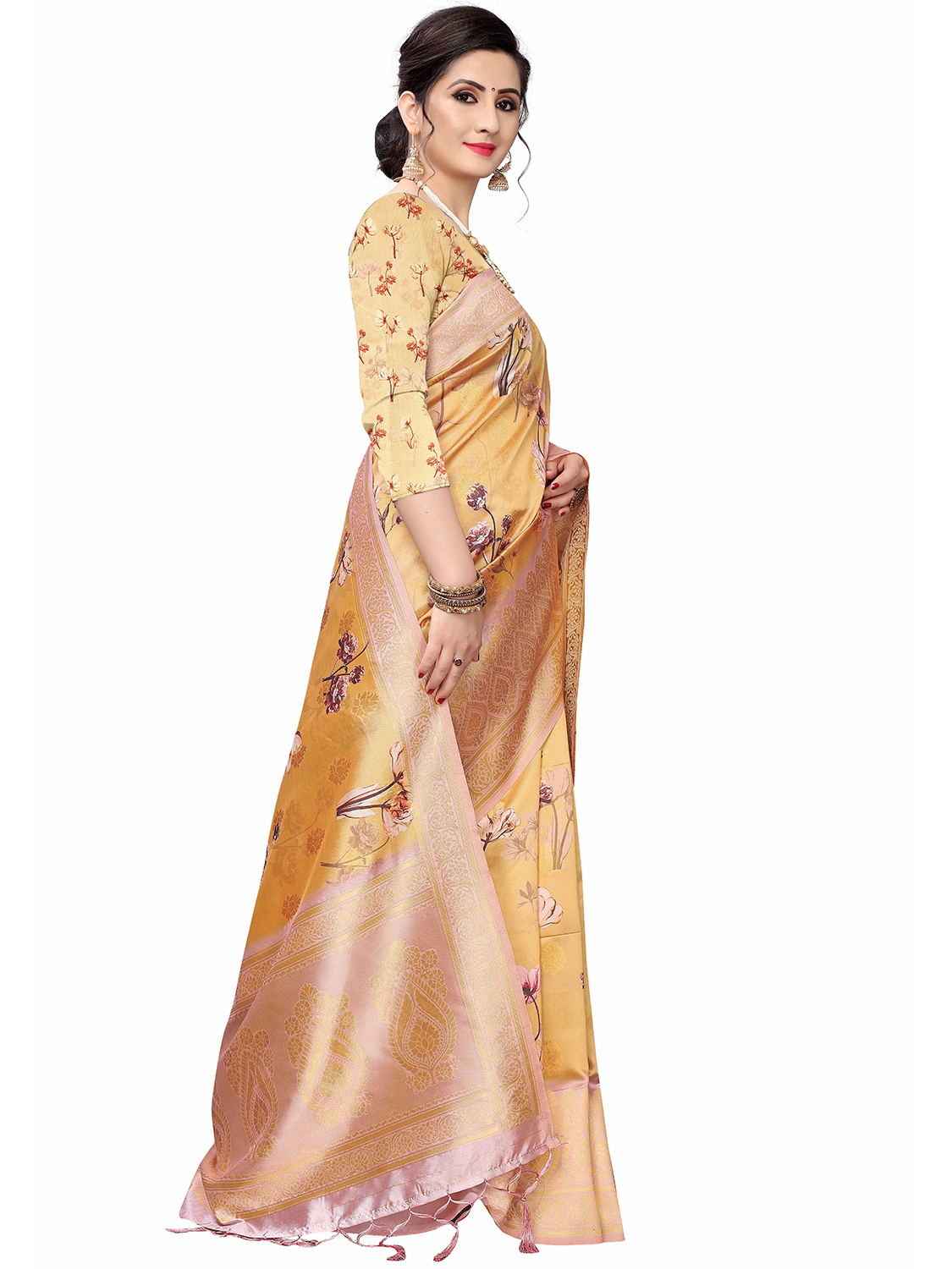 AASTHA FASHION Fashion Dream Womens Mustard Golden Cotton Silk Blend Saree | Soft & Elegant Traditional Wear