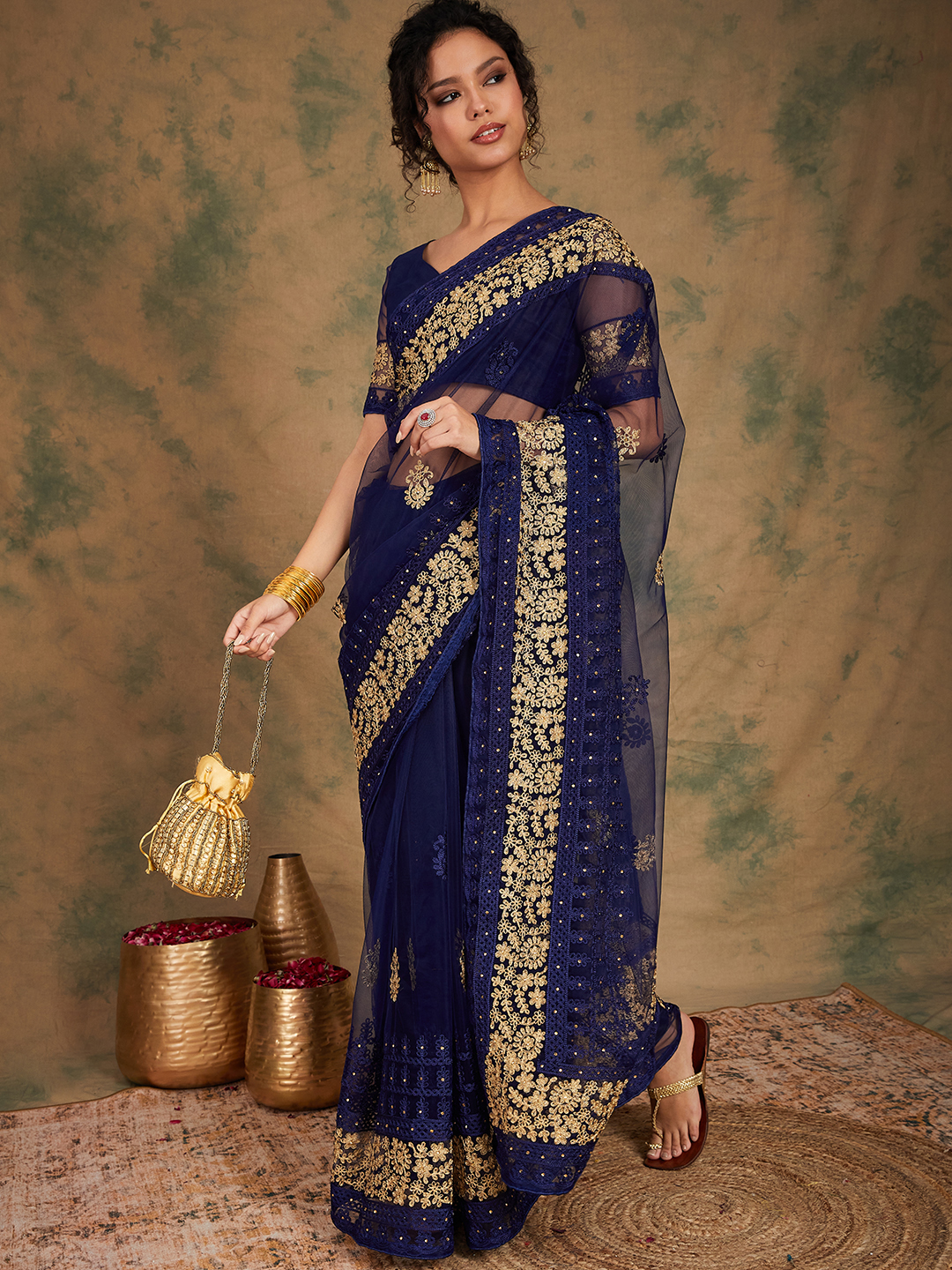 Saree Fabric-Net ,Blouse Fabric-Net