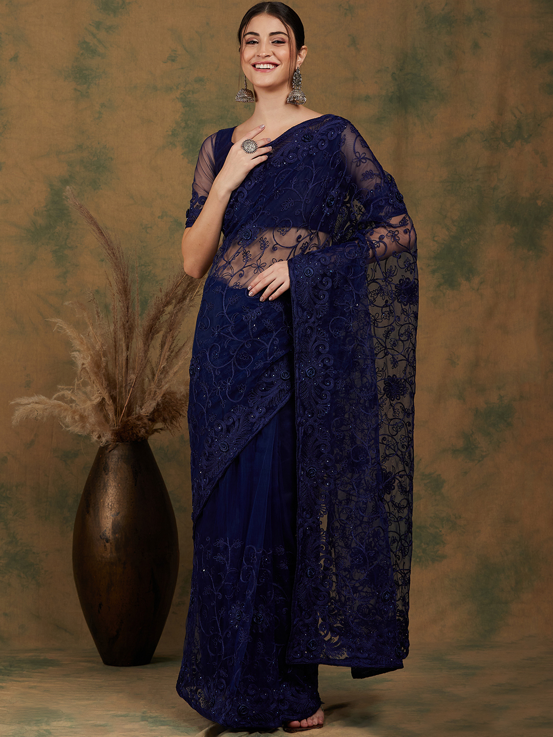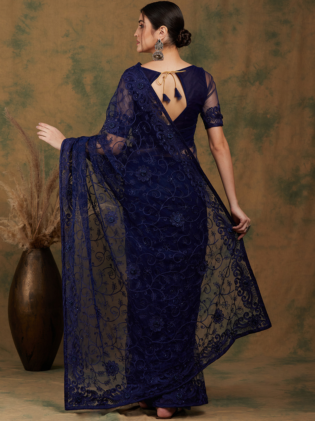 AASTHA FASHION Fashion Dream Womens Navy Blue NET Saree | Soft & Elegant Traditional Wear
