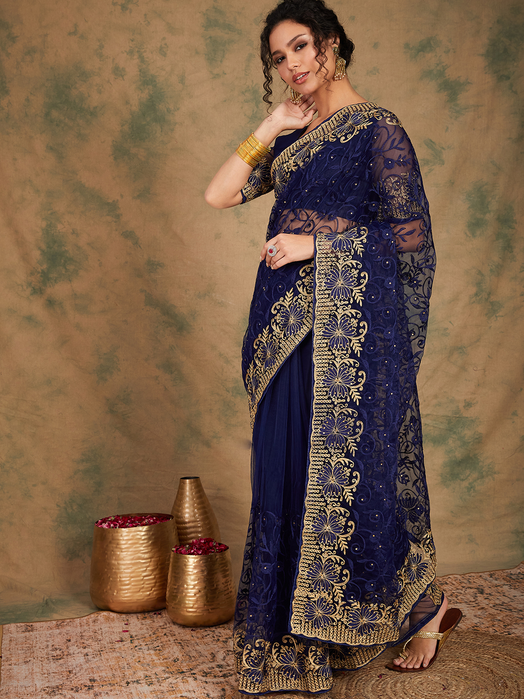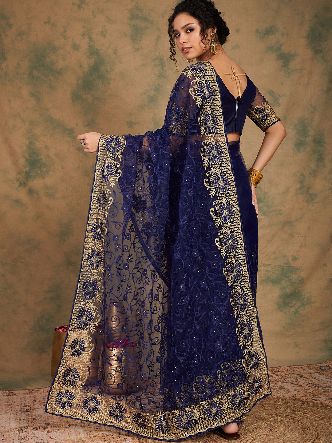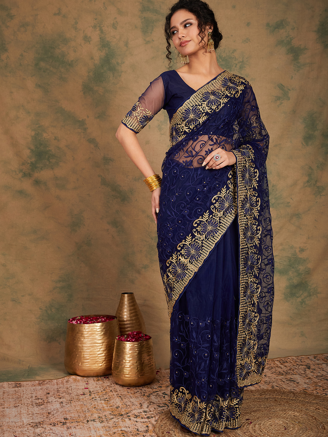 AASTHA FASHION Fashion Dream Womens Navy Blue Net Saree | Soft & Elegant Traditional Wear