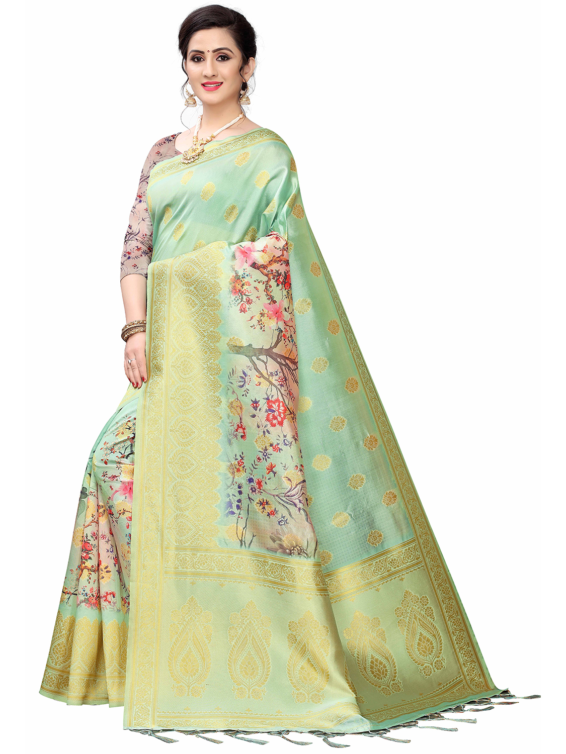 Saree Fabric-Cotton Silk Blend ,Blouse Fabric-Cotton Silk Blend