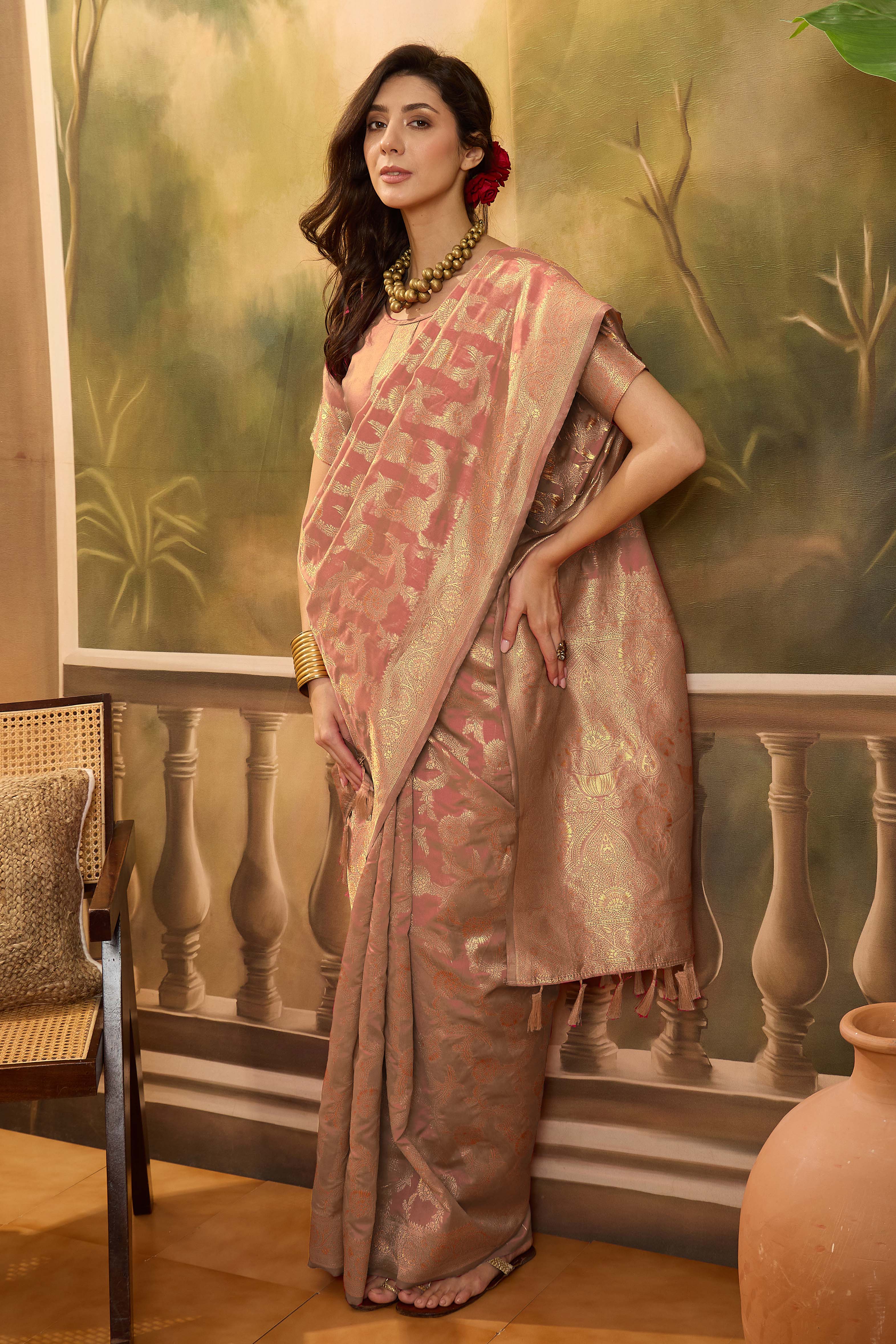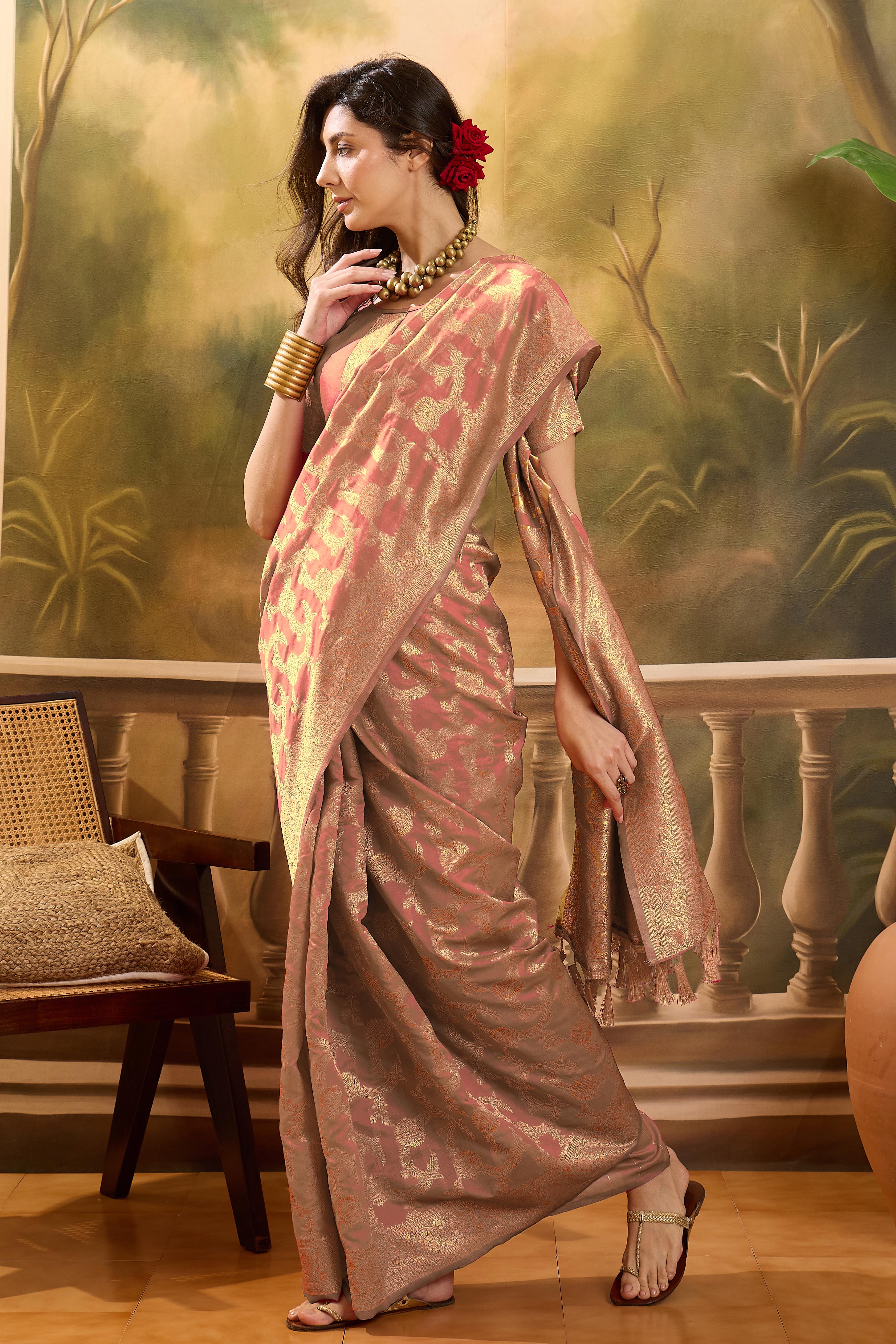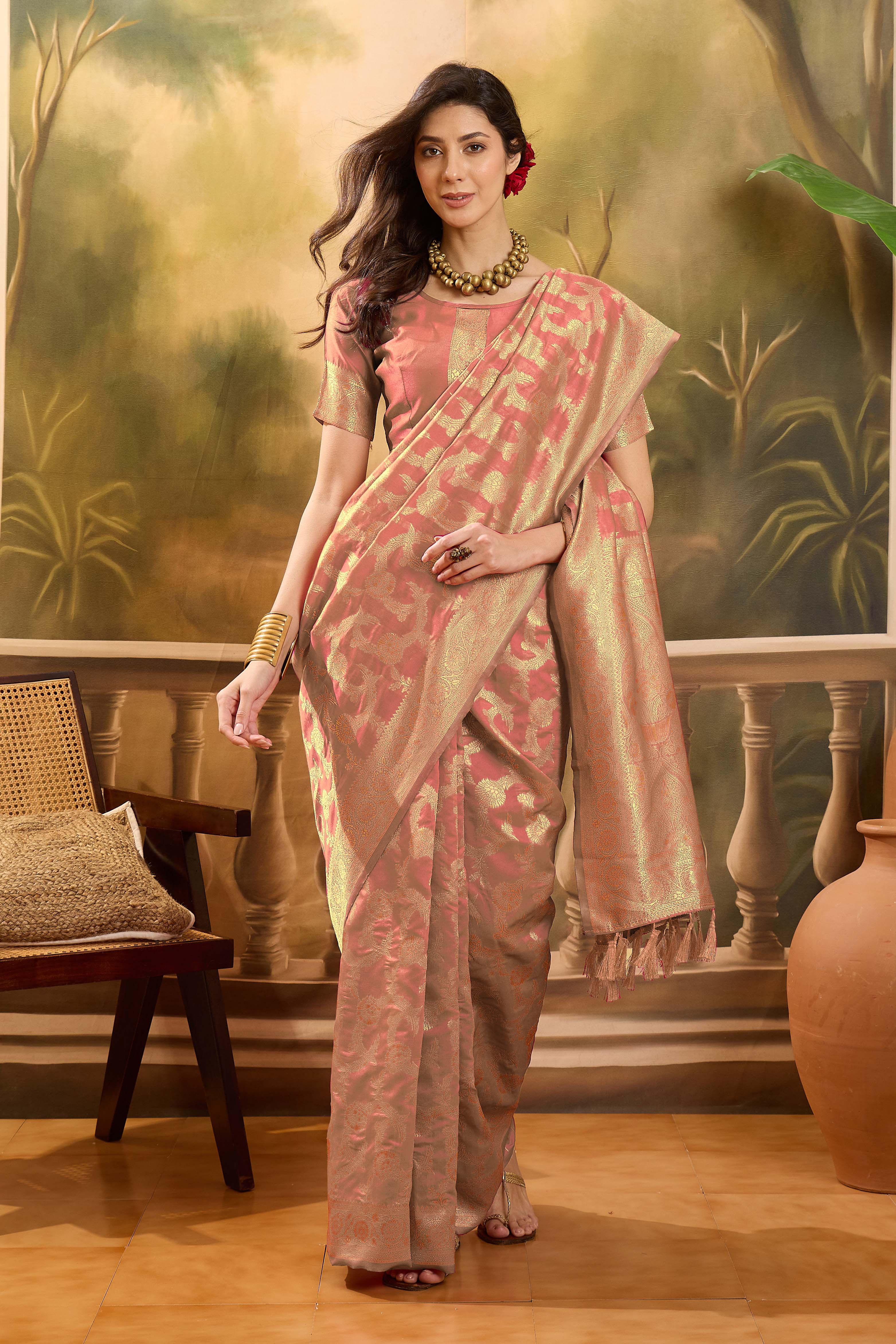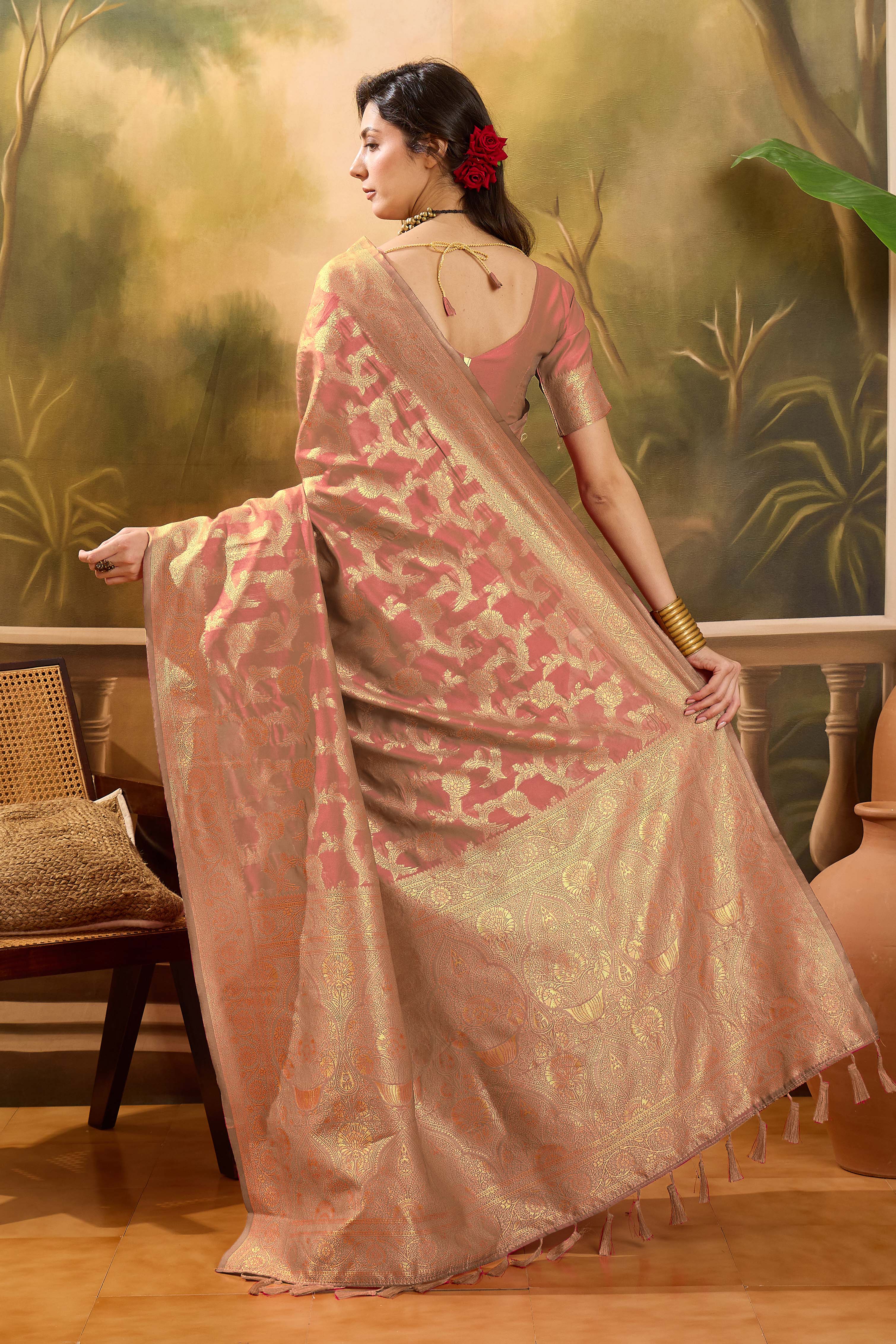 AASTHA FASHION Fashion Dream Womens Peach Banarasi Jacquard Saree | Soft & Elegant Traditional Wear