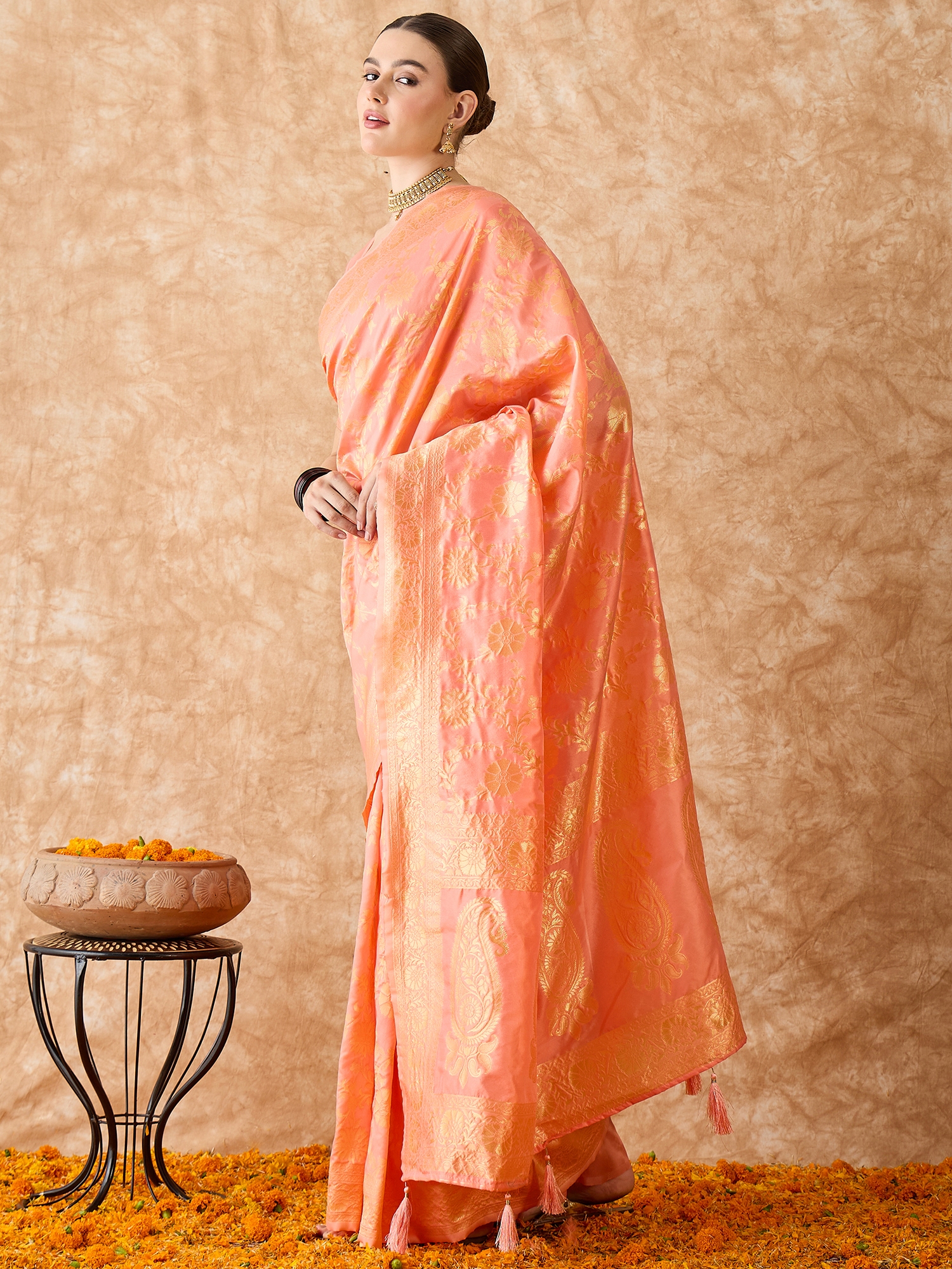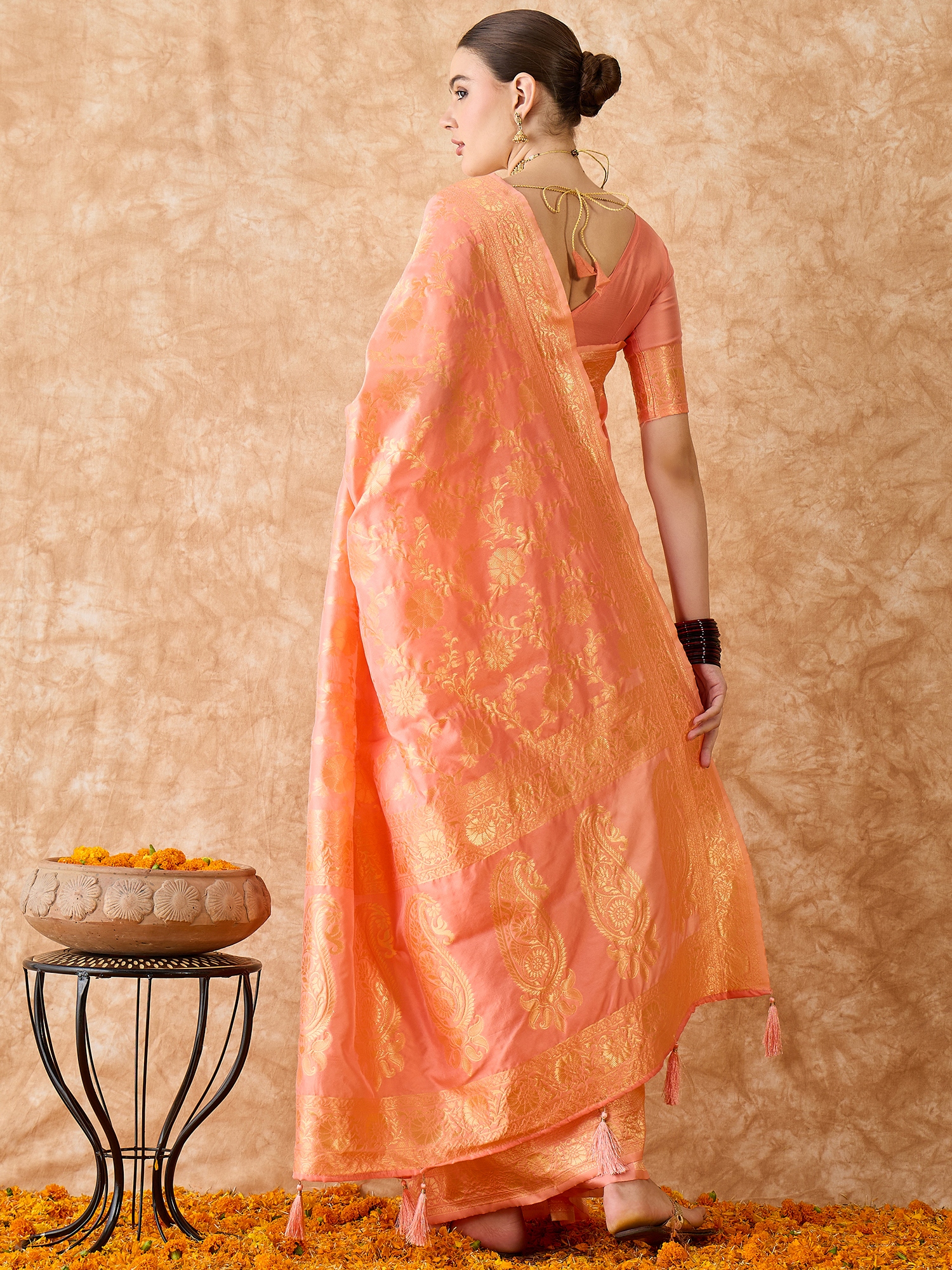 AASTHA FASHION Fashion Dream Womens Peach Banarasi Silk Saree | Soft & Elegant Traditional Wear