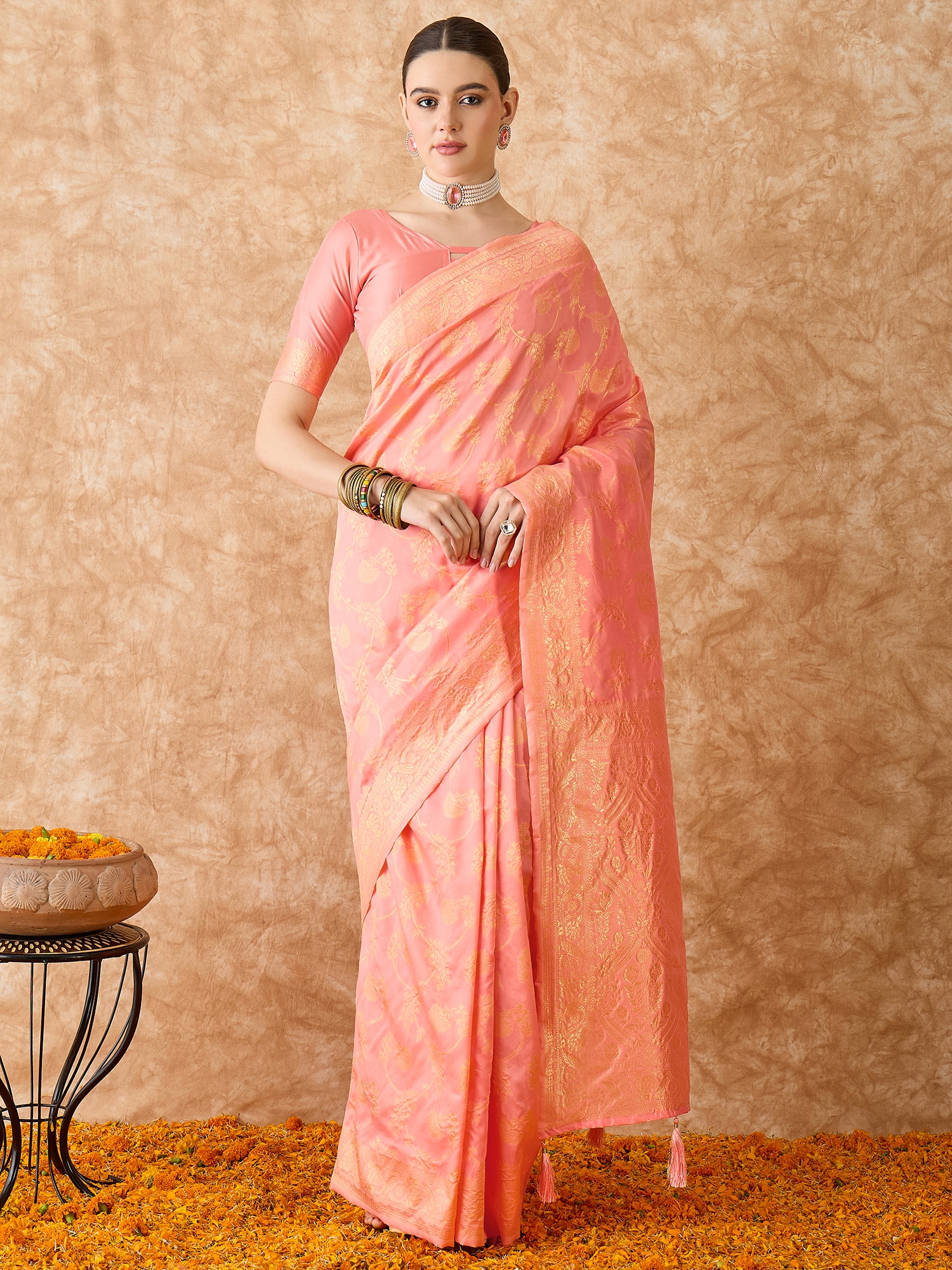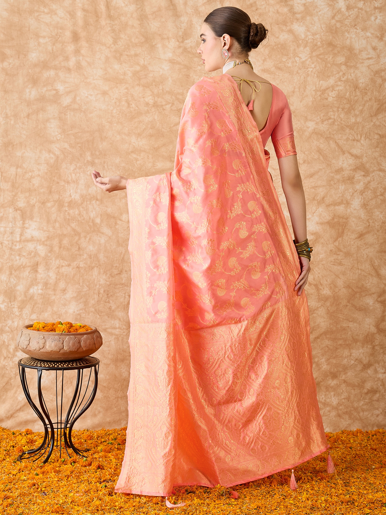 AASTHA FASHION Fashion Dream Womens Peach Banarasi Silk Saree | Soft & Elegant Traditional Wear
