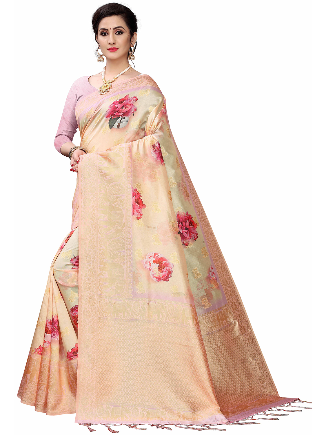 Saree Work-Digital Printed ,Blouse Work- Cotton Silk Blend