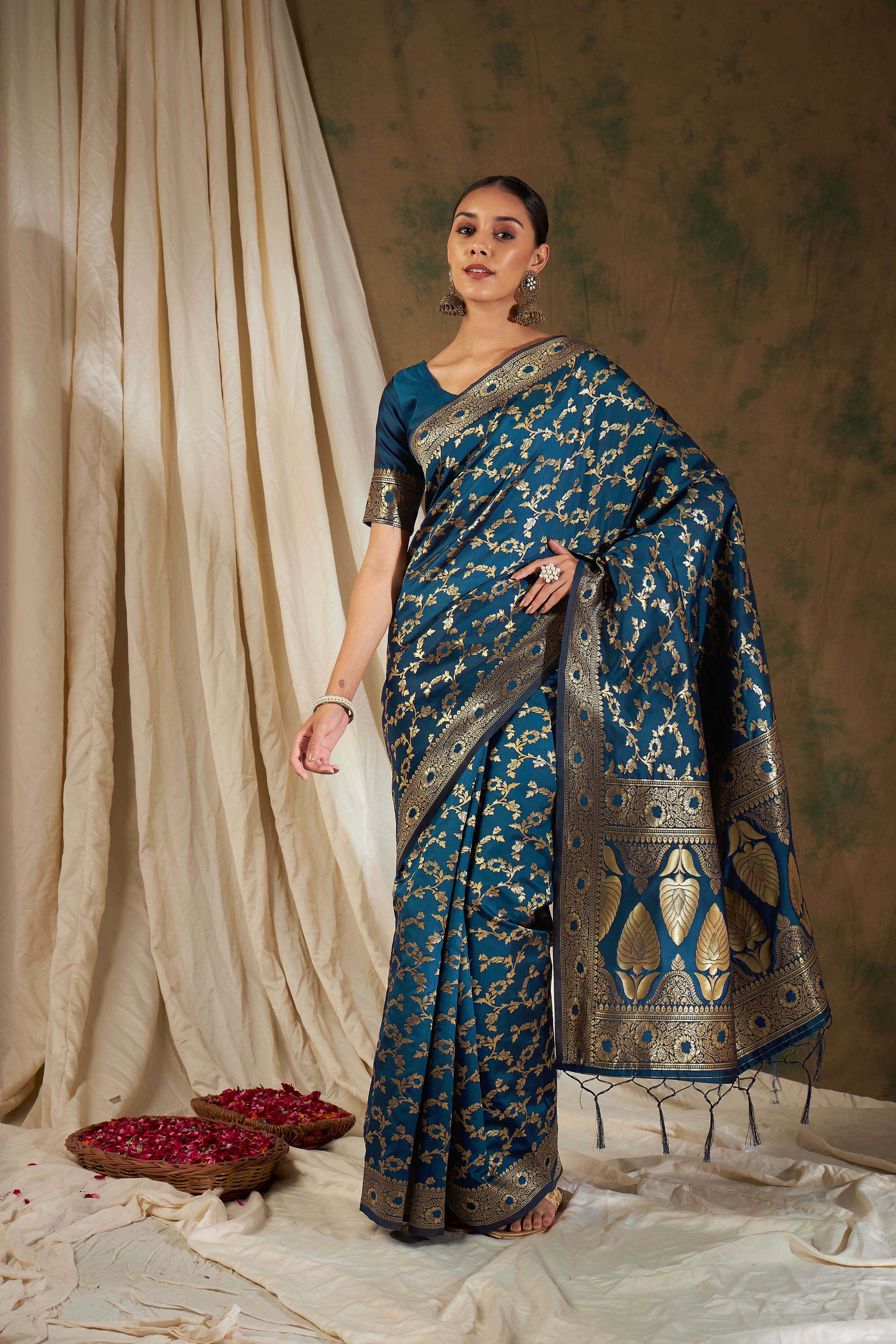 AASTHA FASHION Fashion Dream Womens Petrol Blue Banarasi Silk Saree | Soft & Elegant Traditional Wear