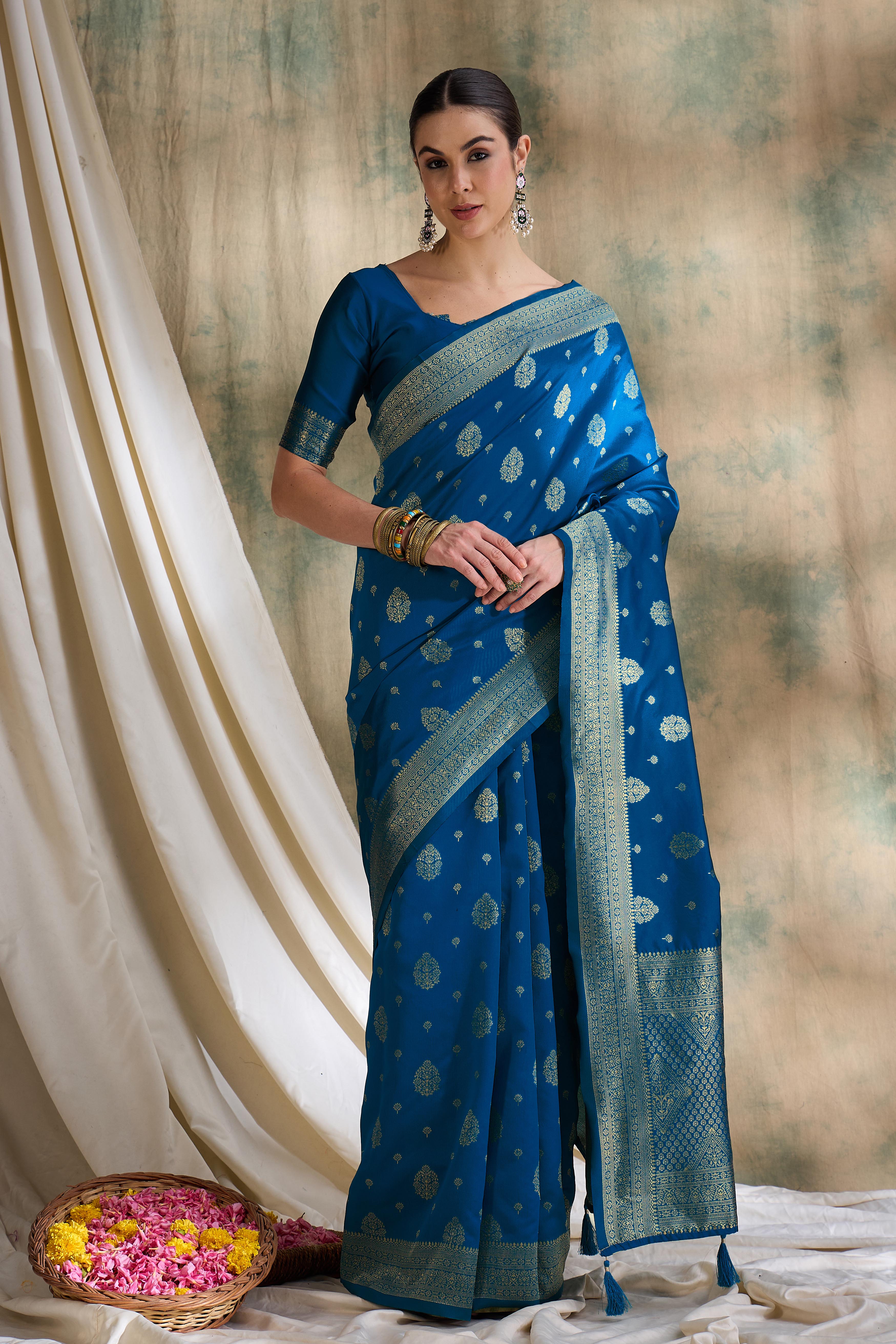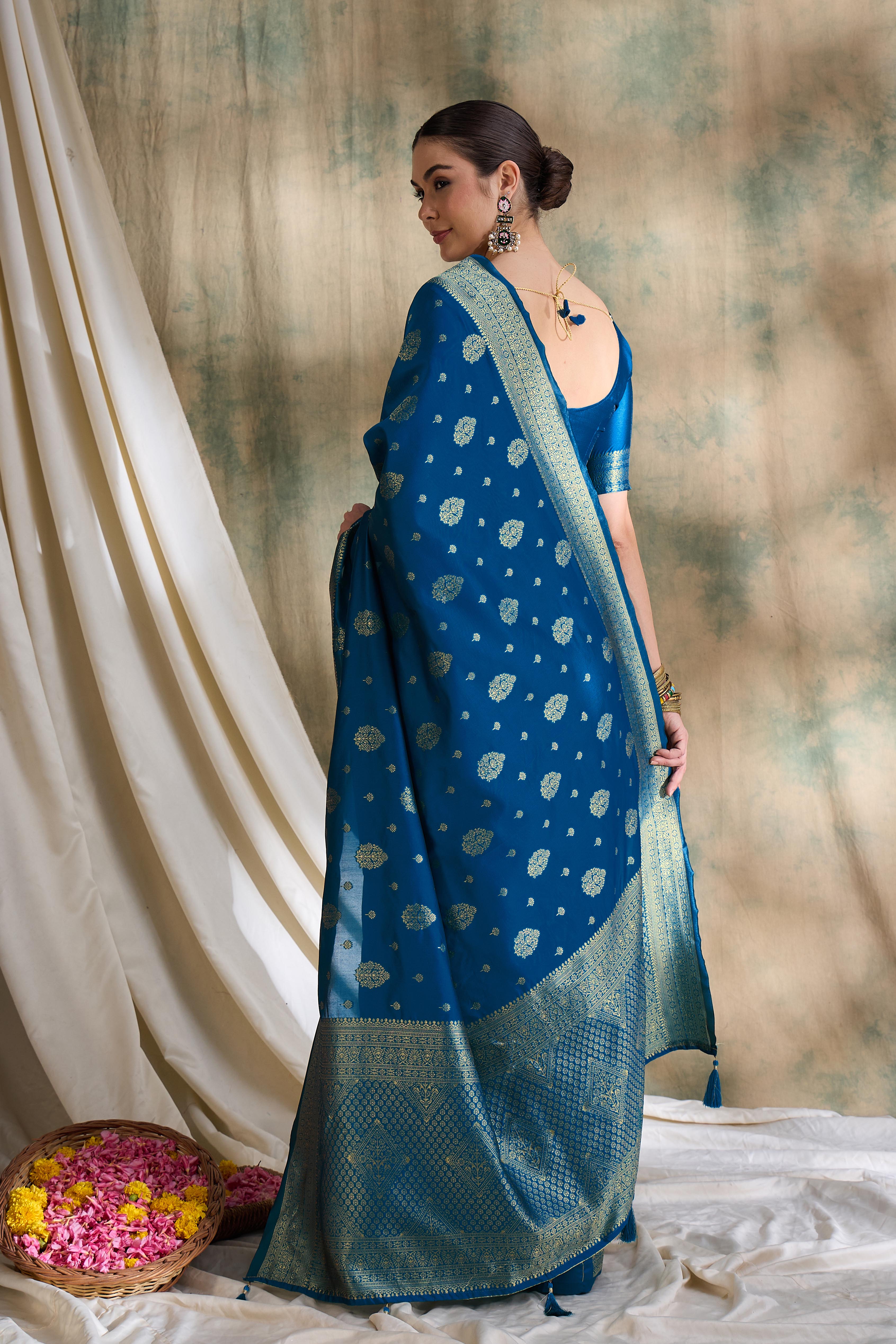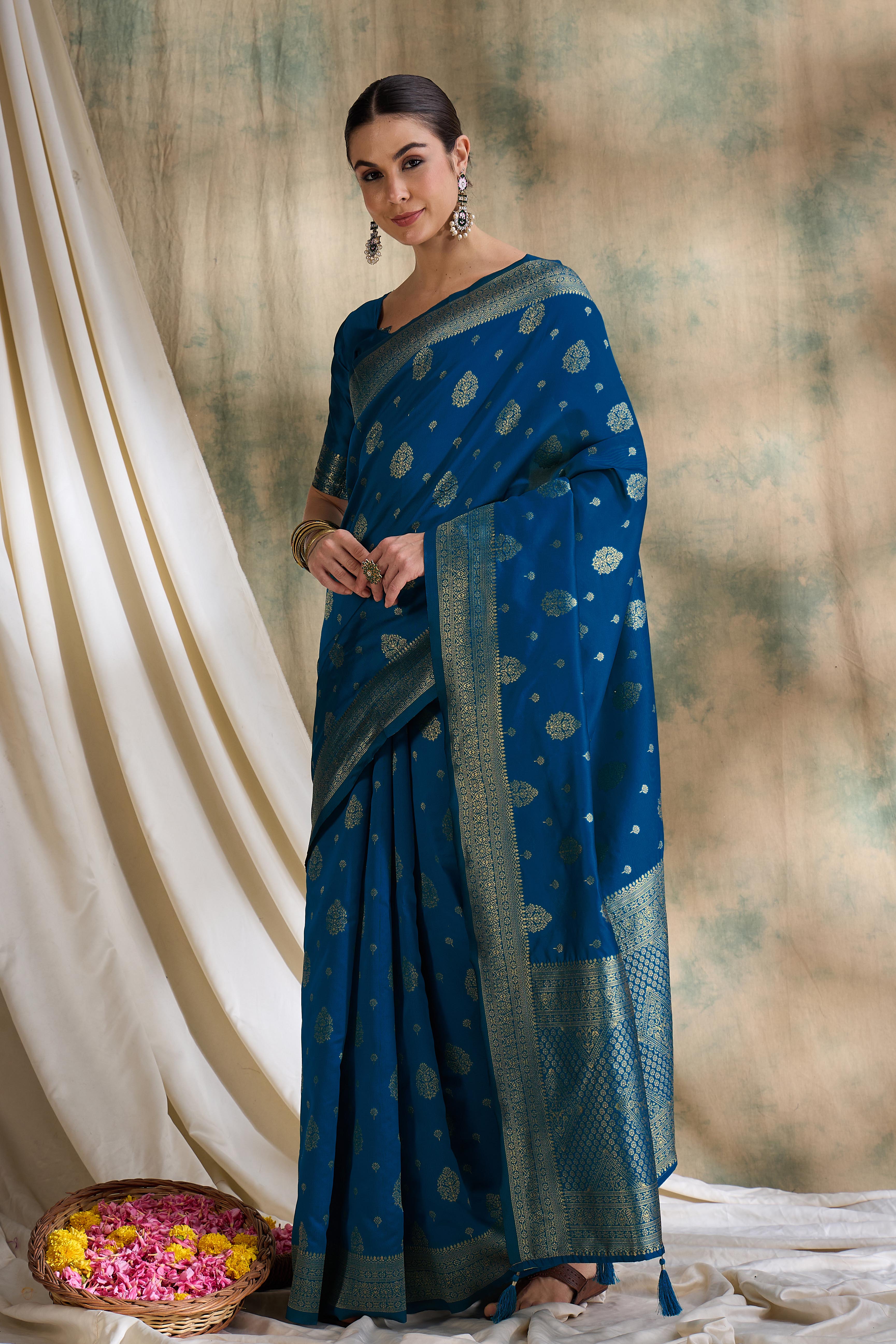 AASTHA FASHION Fashion Dream Womens Petrol Blue Banarasi Silk Saree | Soft & Elegant Traditional Wear