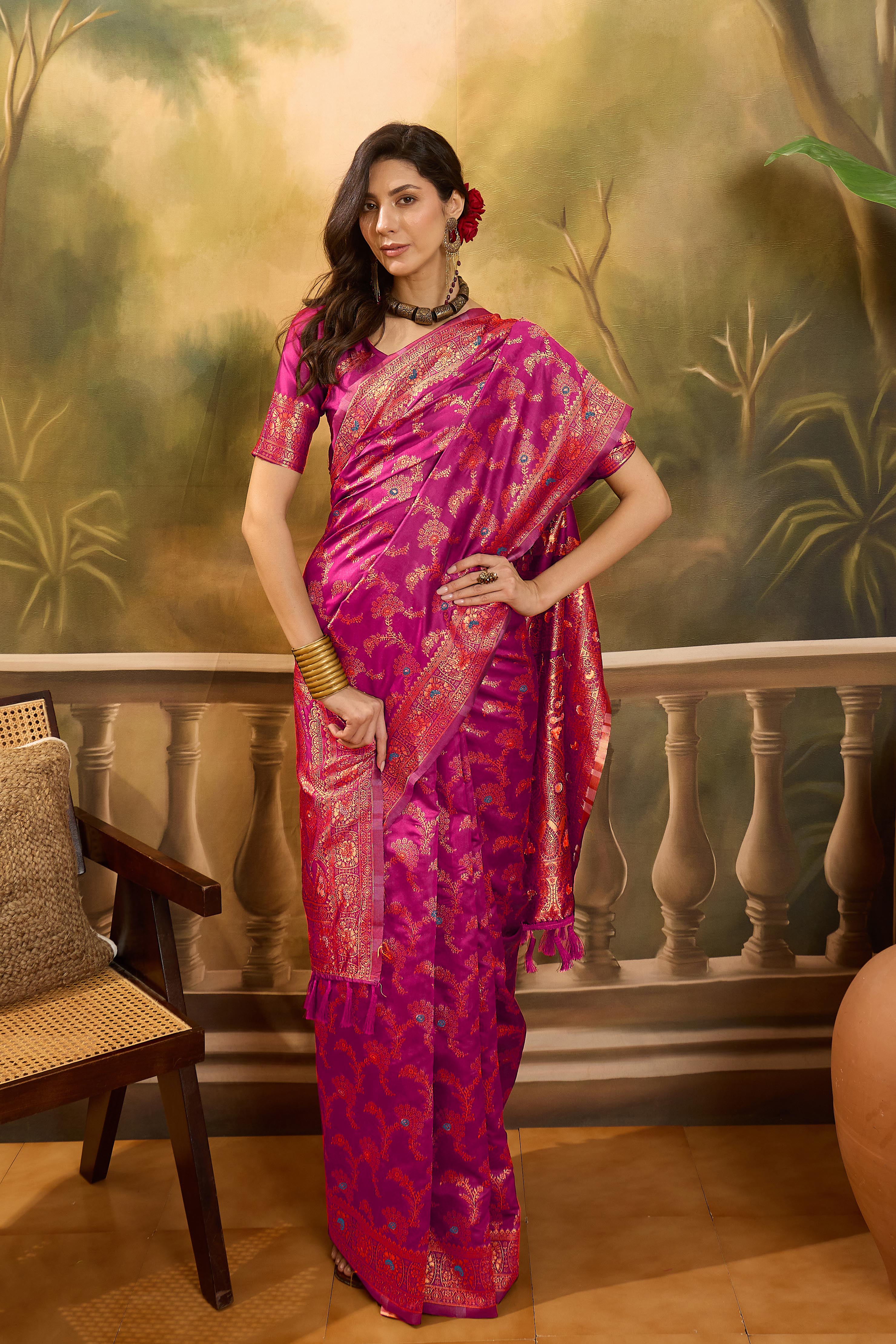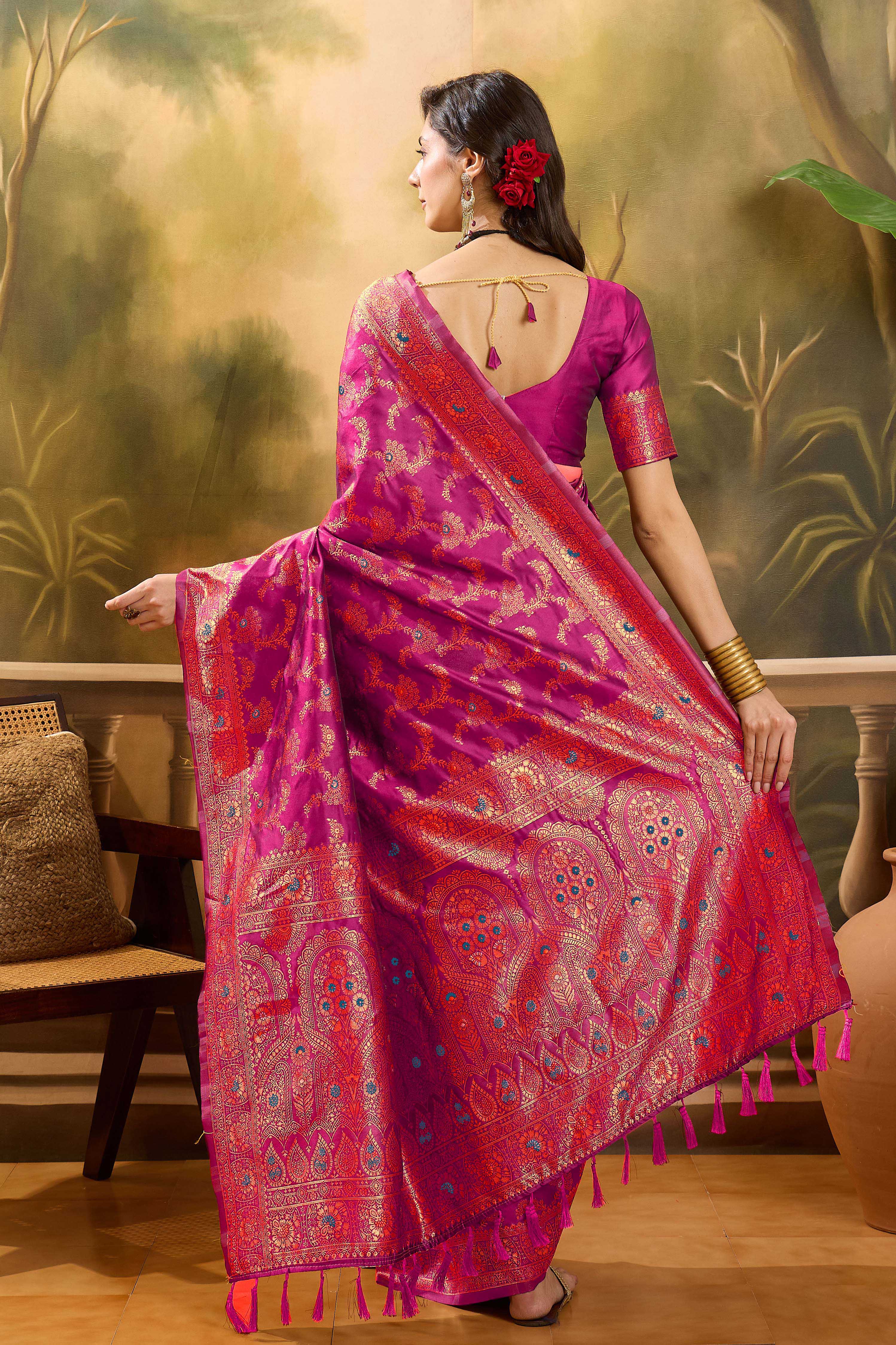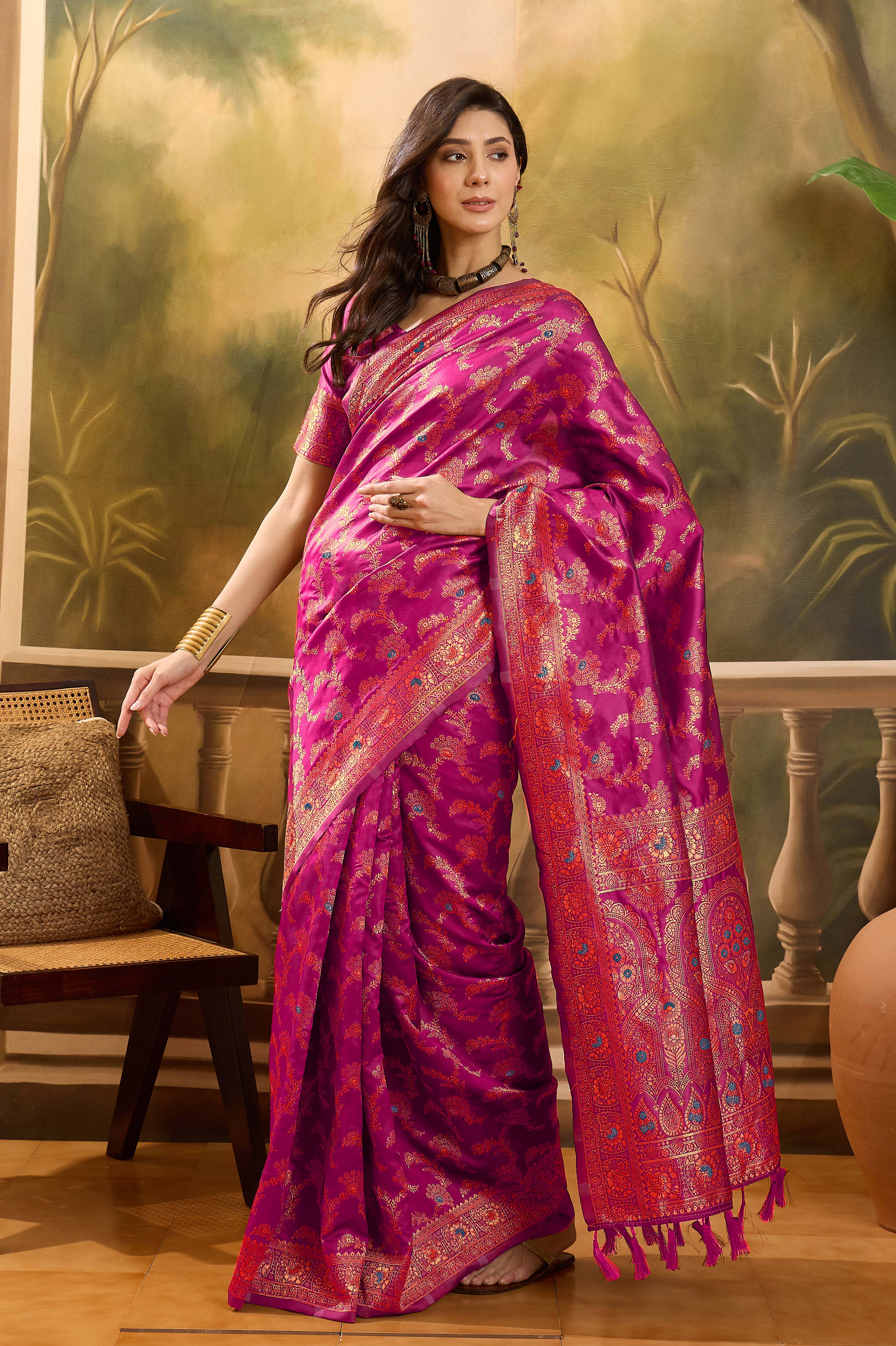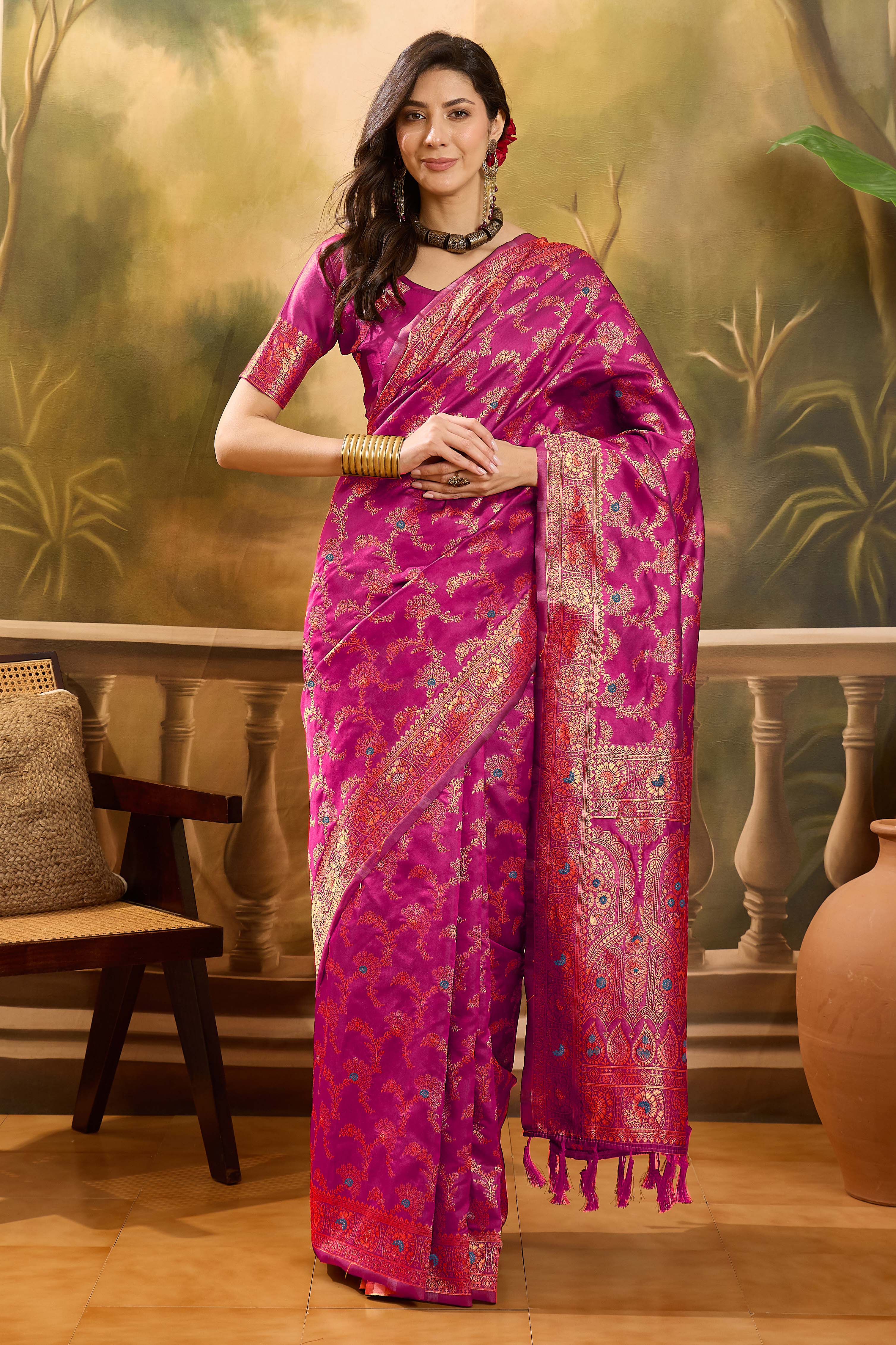 Saree Fabric-Banarasi Jacquard ,Blouse Fabric-Banarasi Jacquard