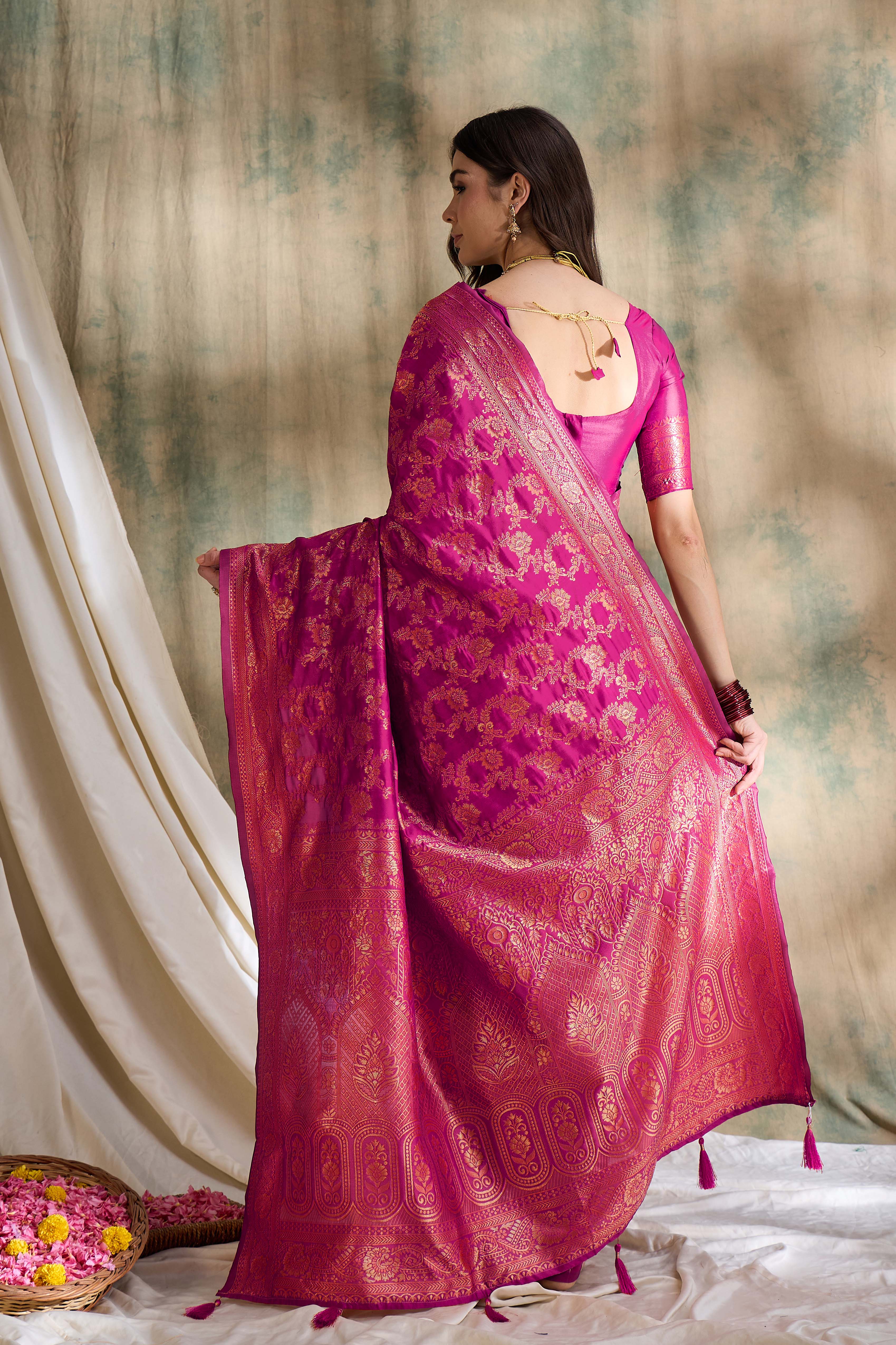 AASTHA FASHION Fashion Dream Womens Pink Banarasi Silk Saree | Soft & Elegant Traditional Wear