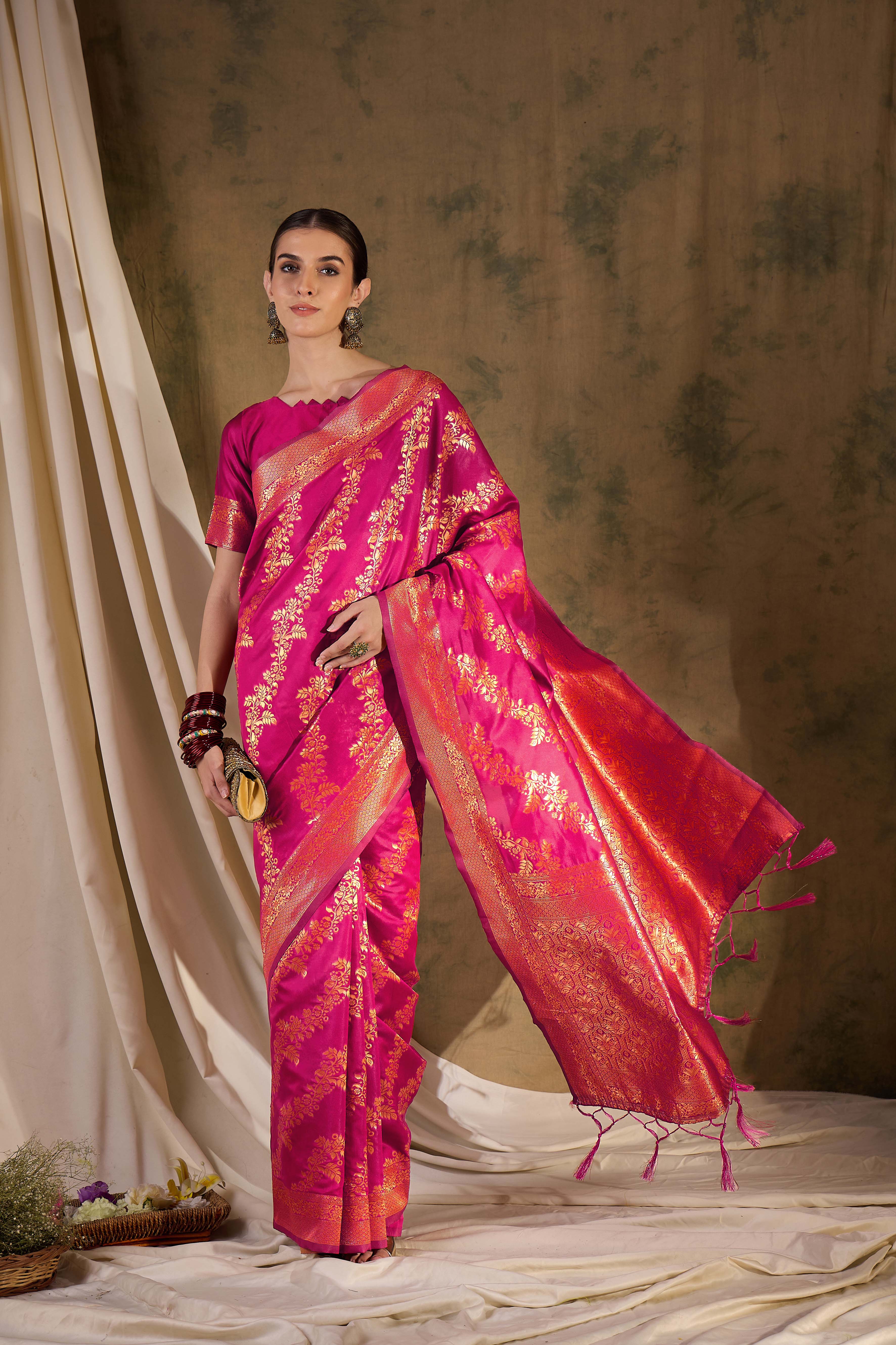 AASTHA FASHION Fashion Dream Womens Pink Banarasi Silk Saree | Soft & Elegant Traditional Wear