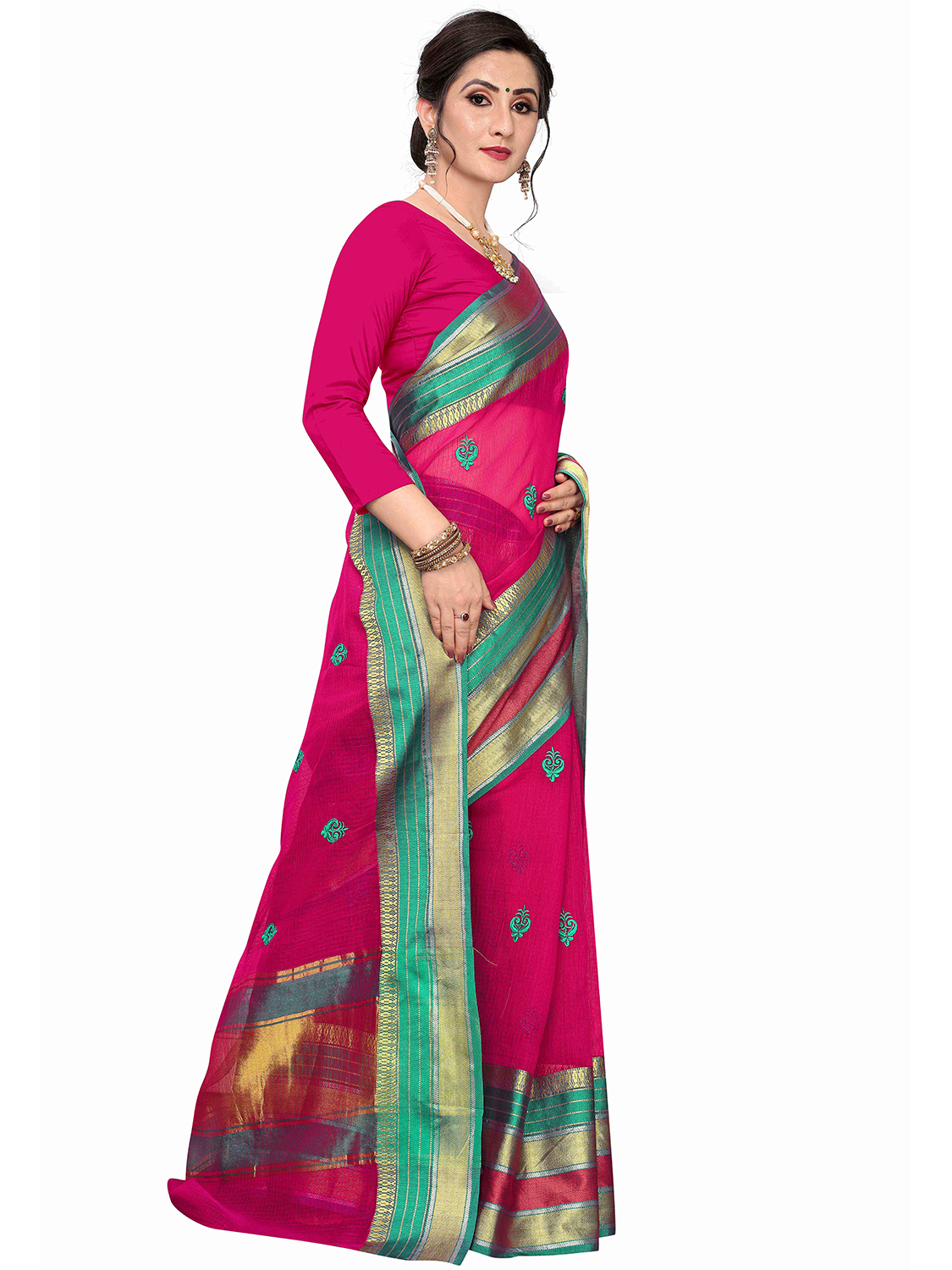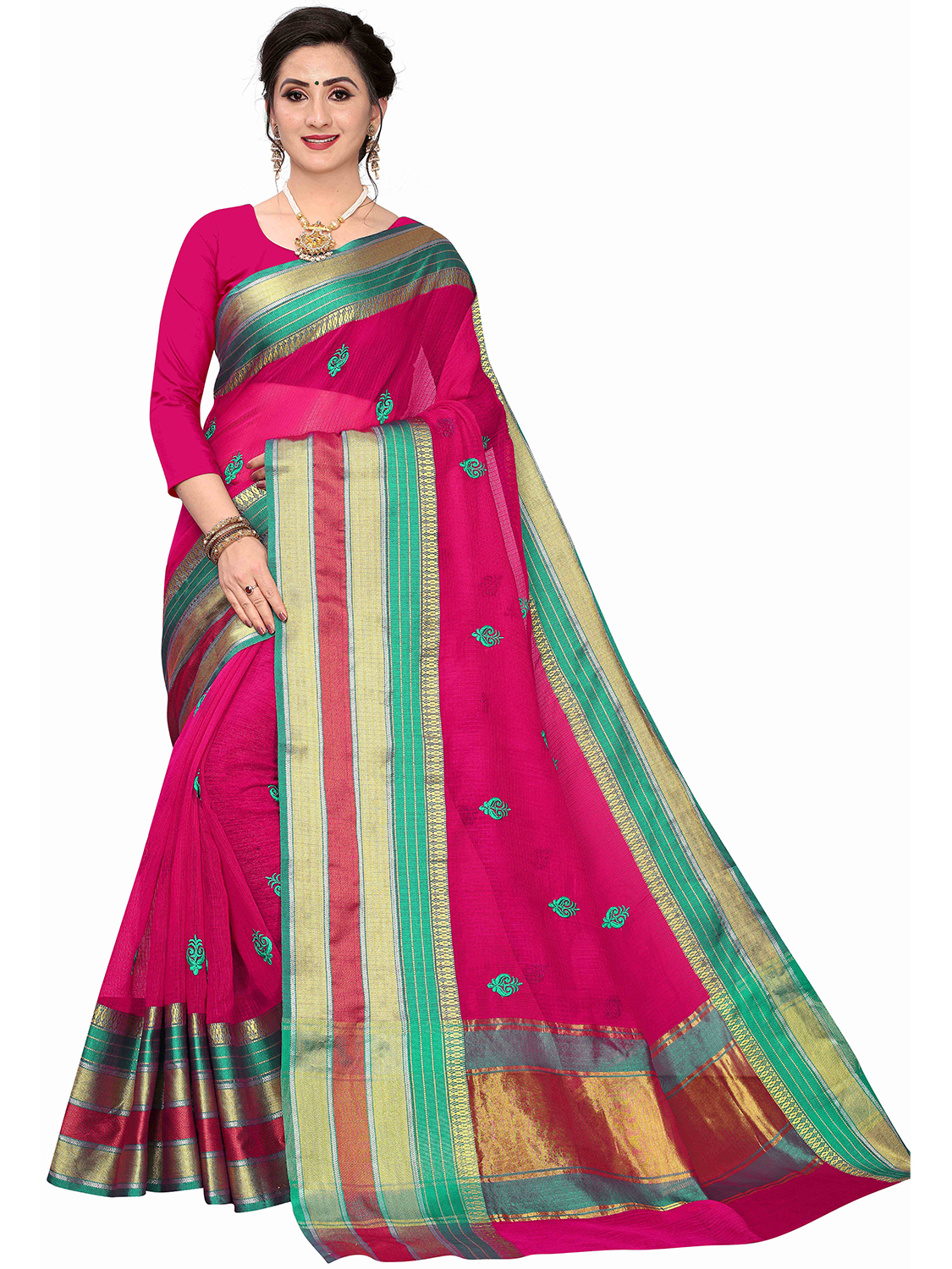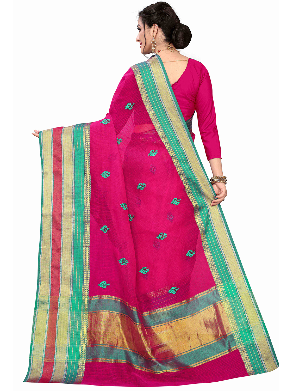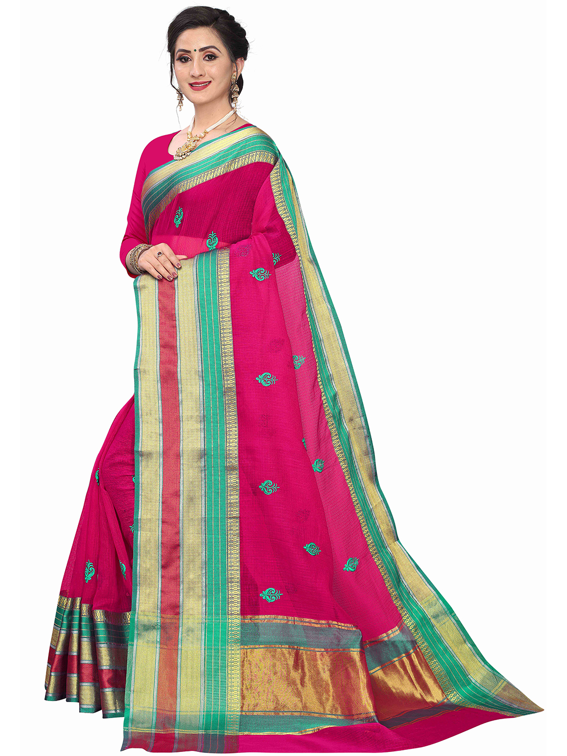 Saree Fabric-Cotton Silk ,Blouse Fabric-Silk Blend