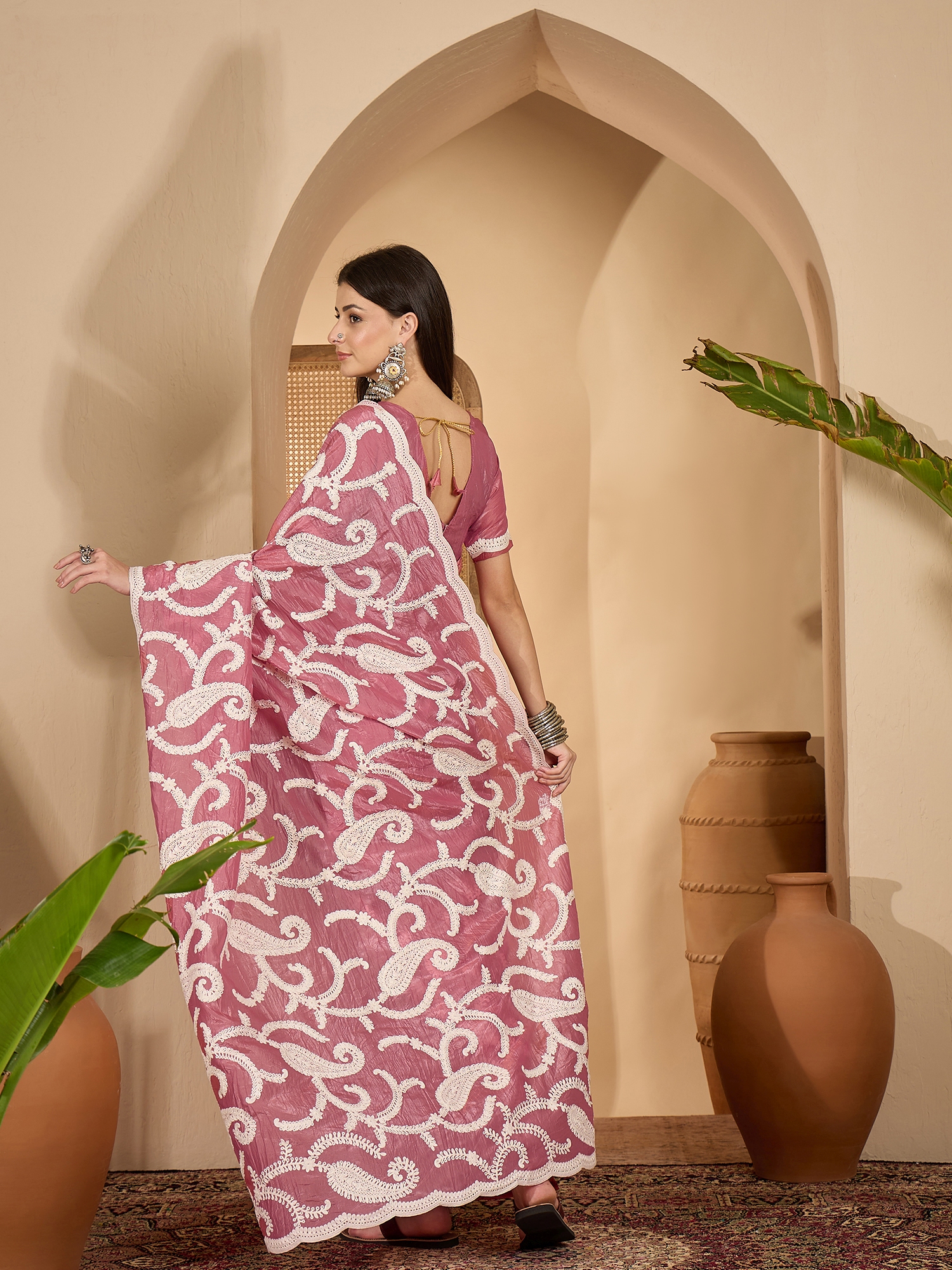 AASTHA FASHION Fashion Dream Womens Pink Gold Crush Saree | Soft & Elegant Traditional Wear
