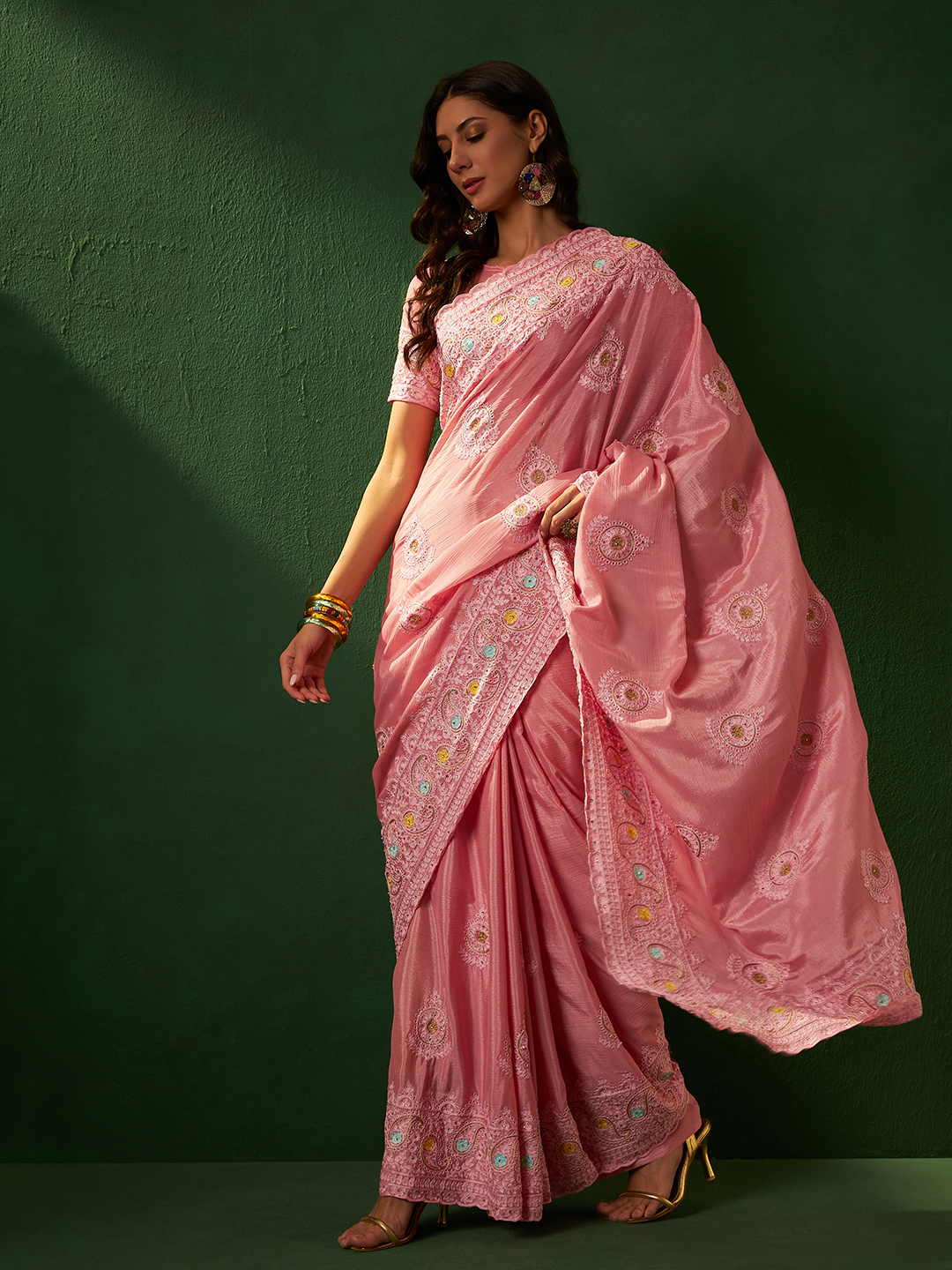 AASTHA FASHION Fashion Dream Womens Pink Lavender Chinon Saree | Soft & Elegant Traditional Wear
