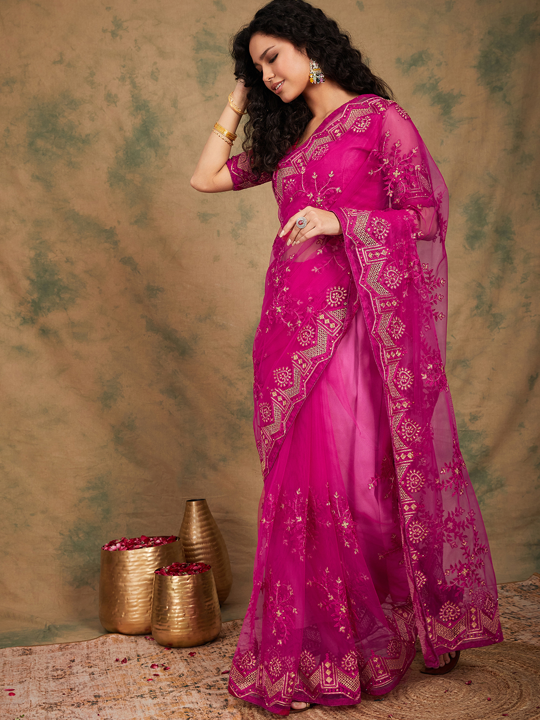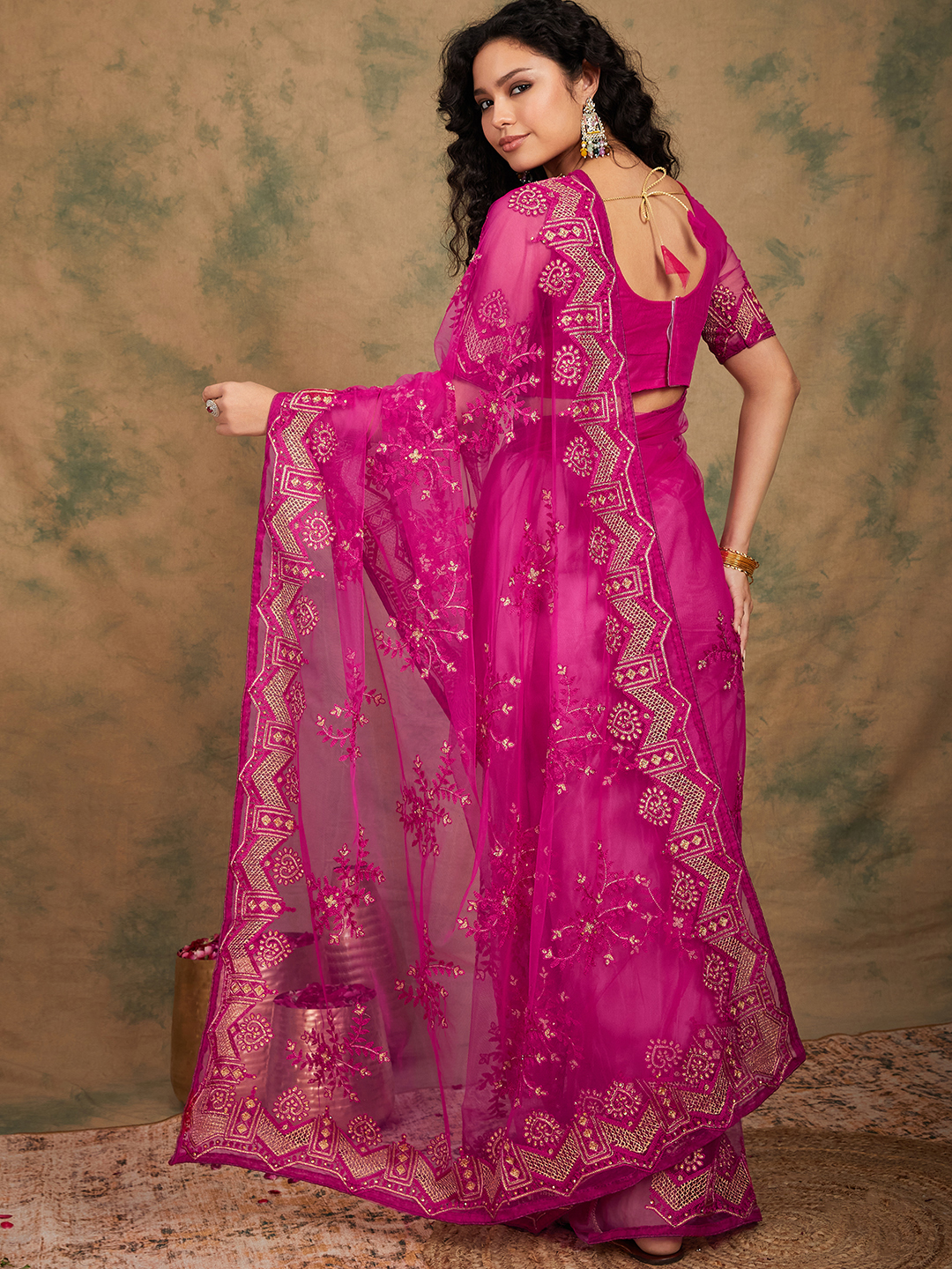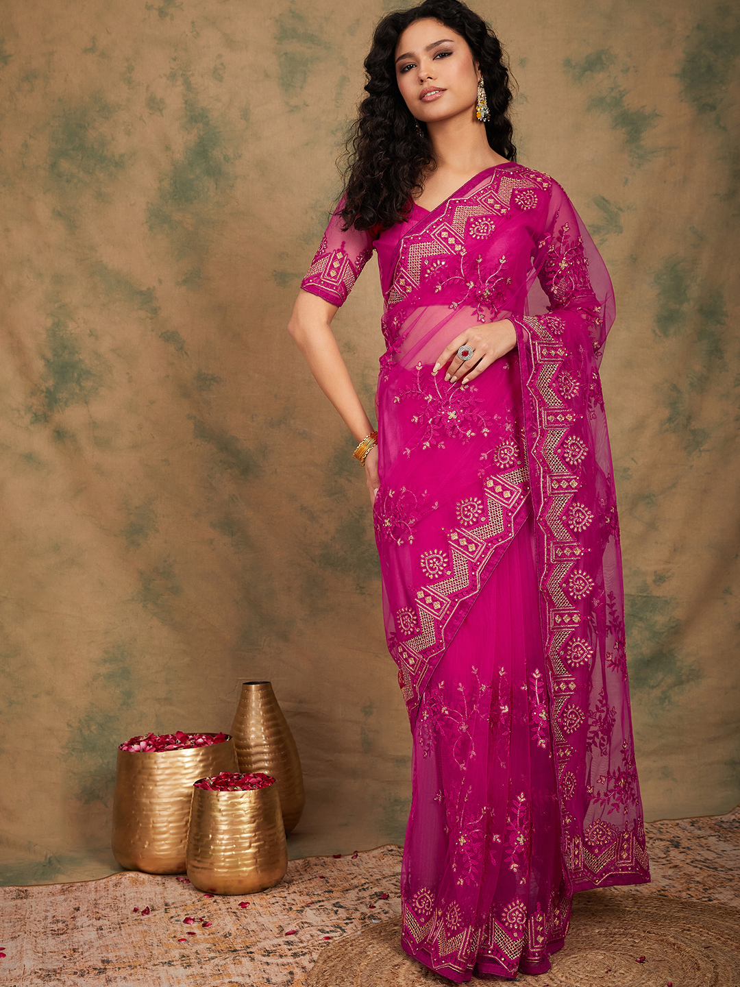 Saree Fabric-Net ,Blouse Fabric-Net